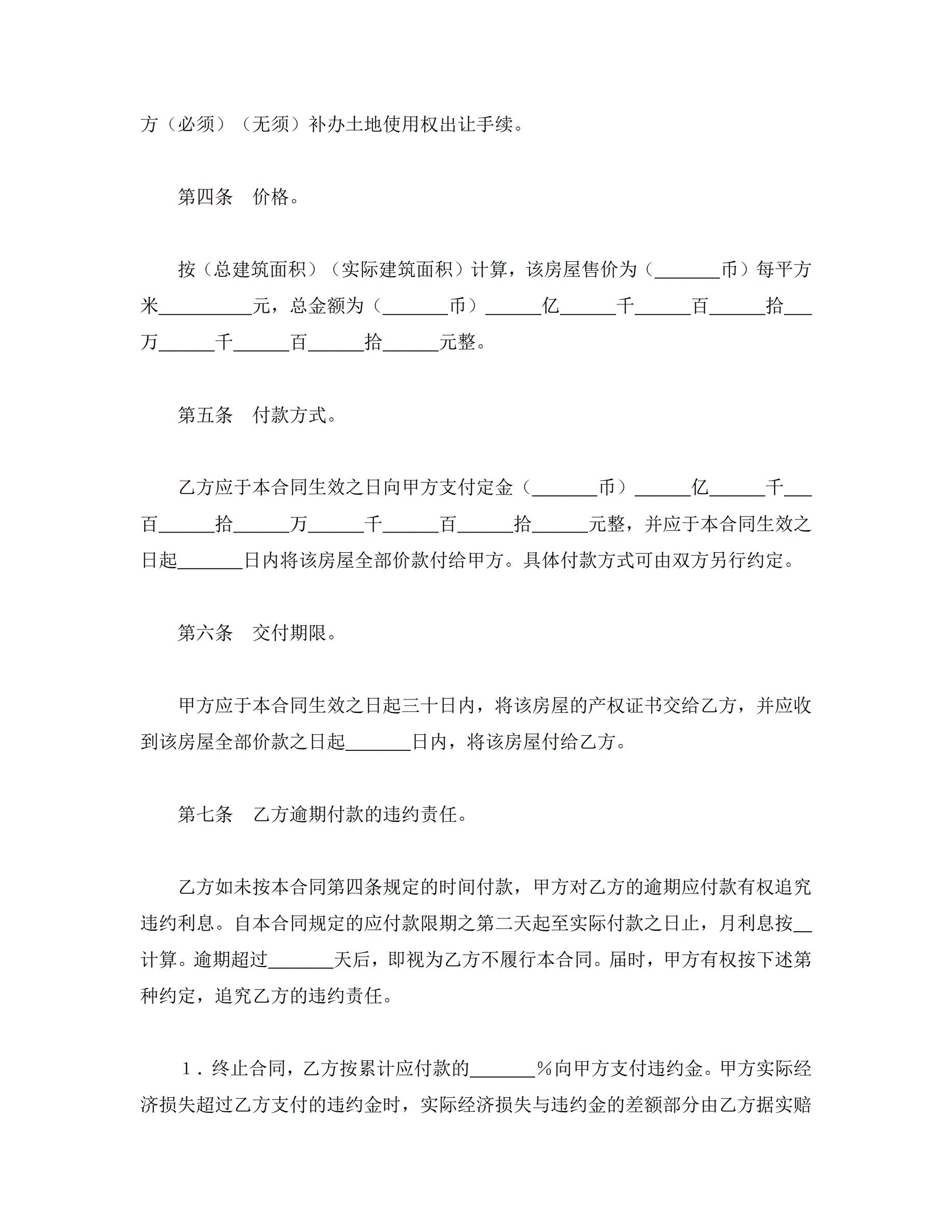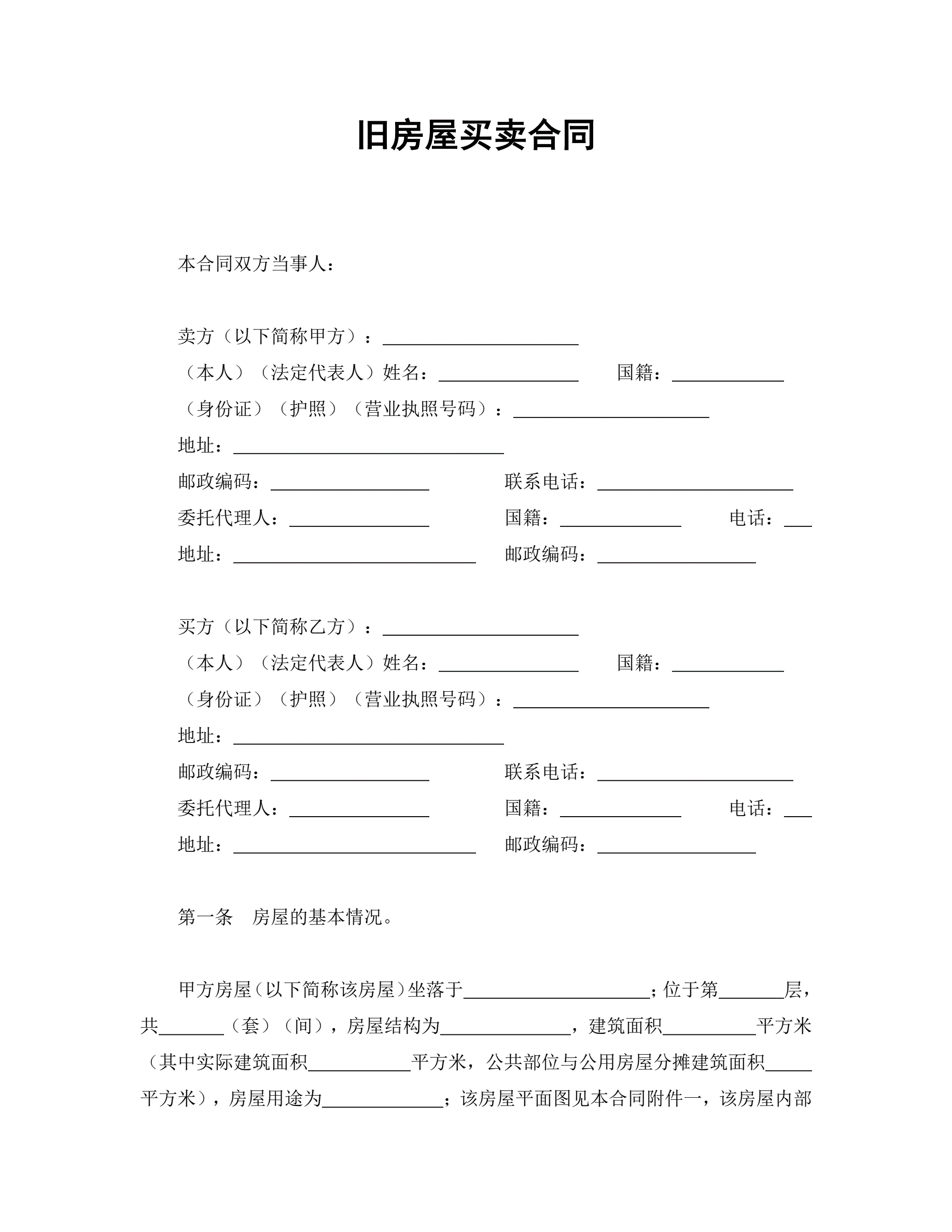 旧房屋买卖合同