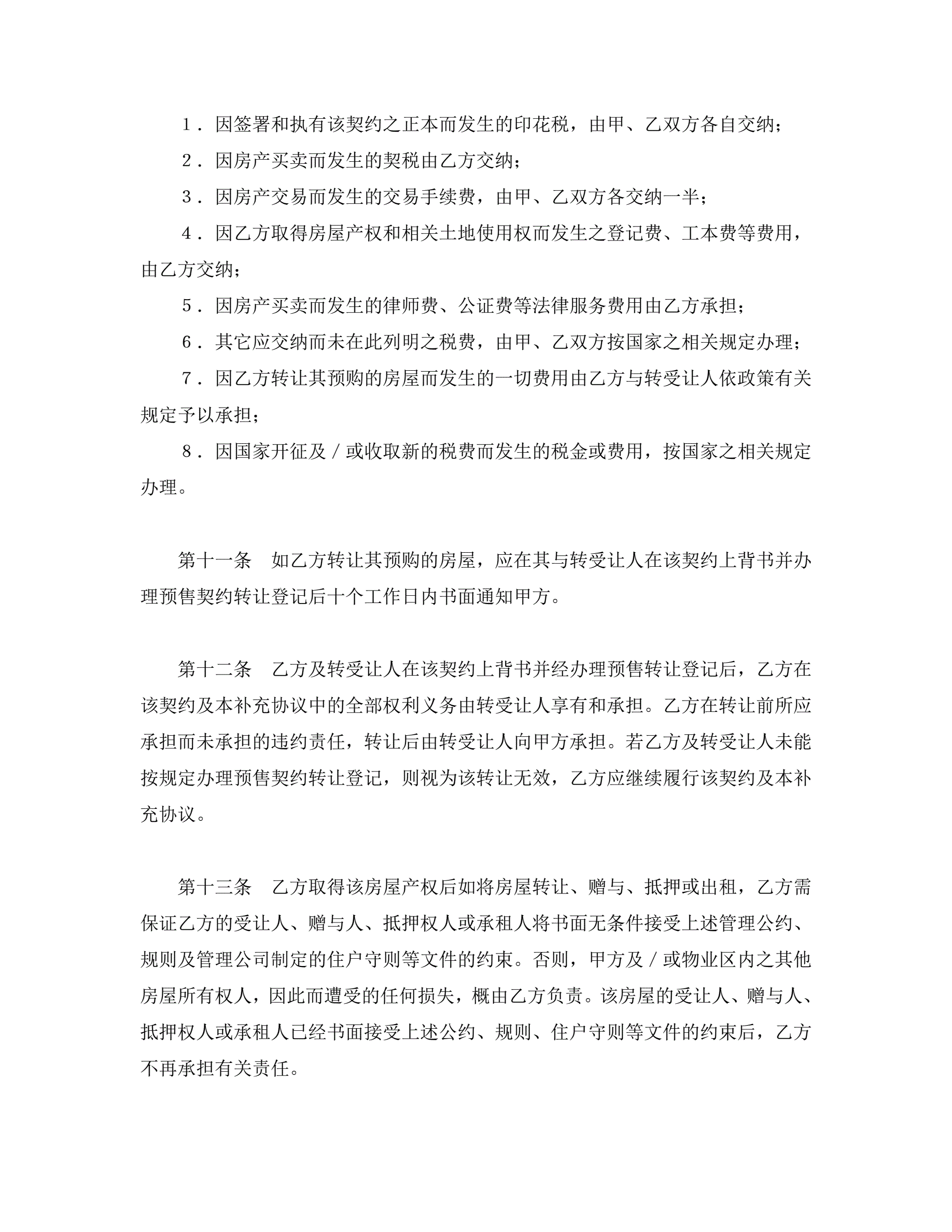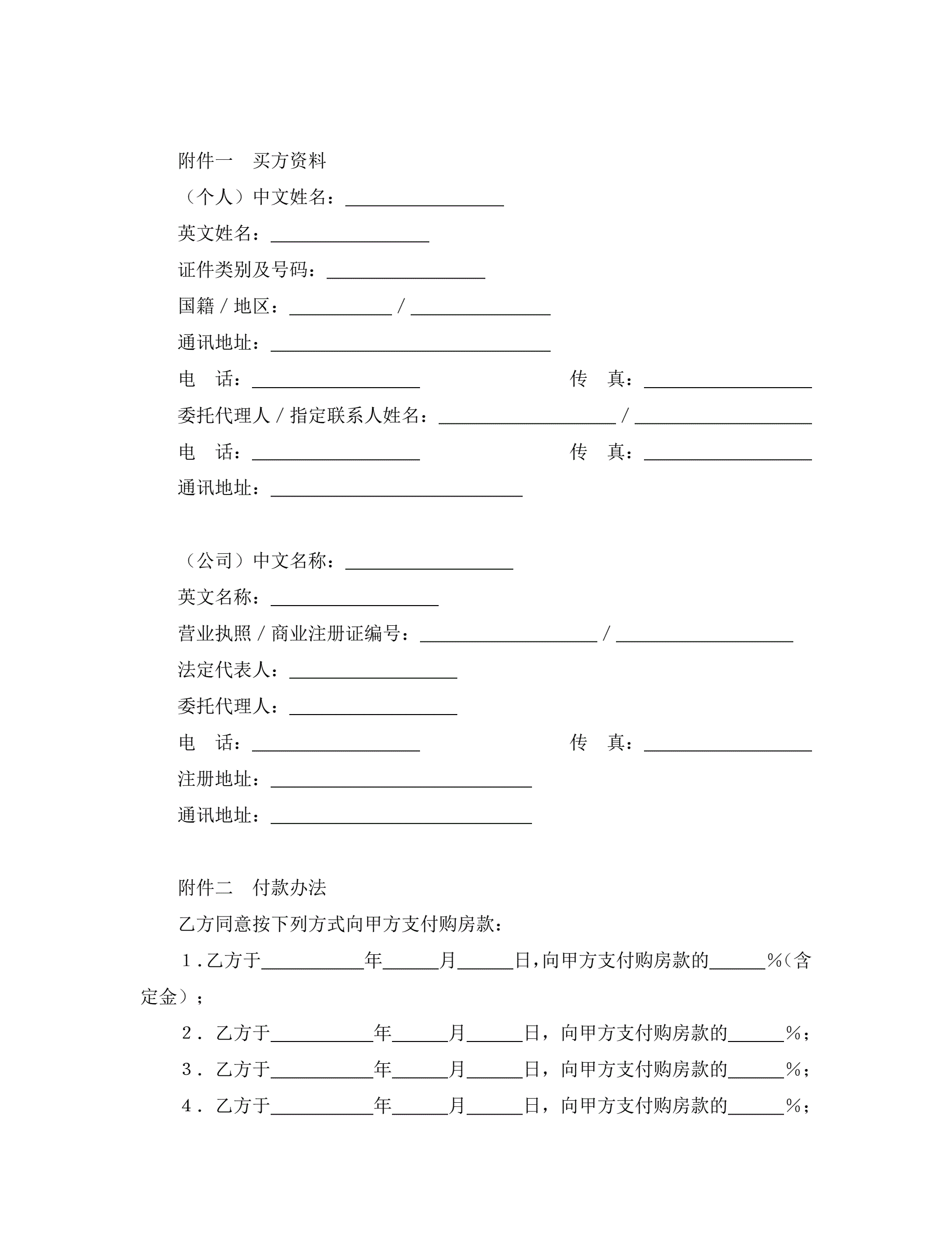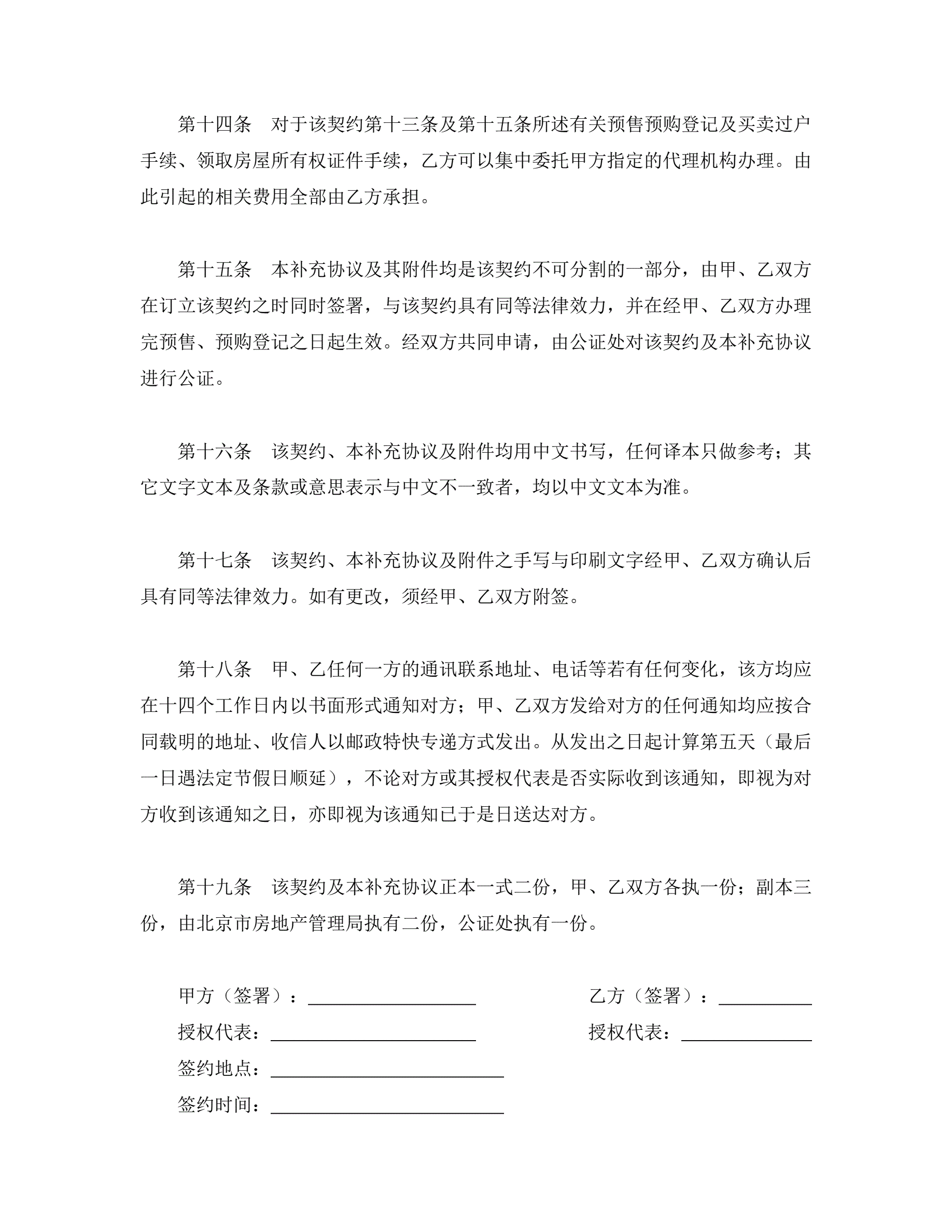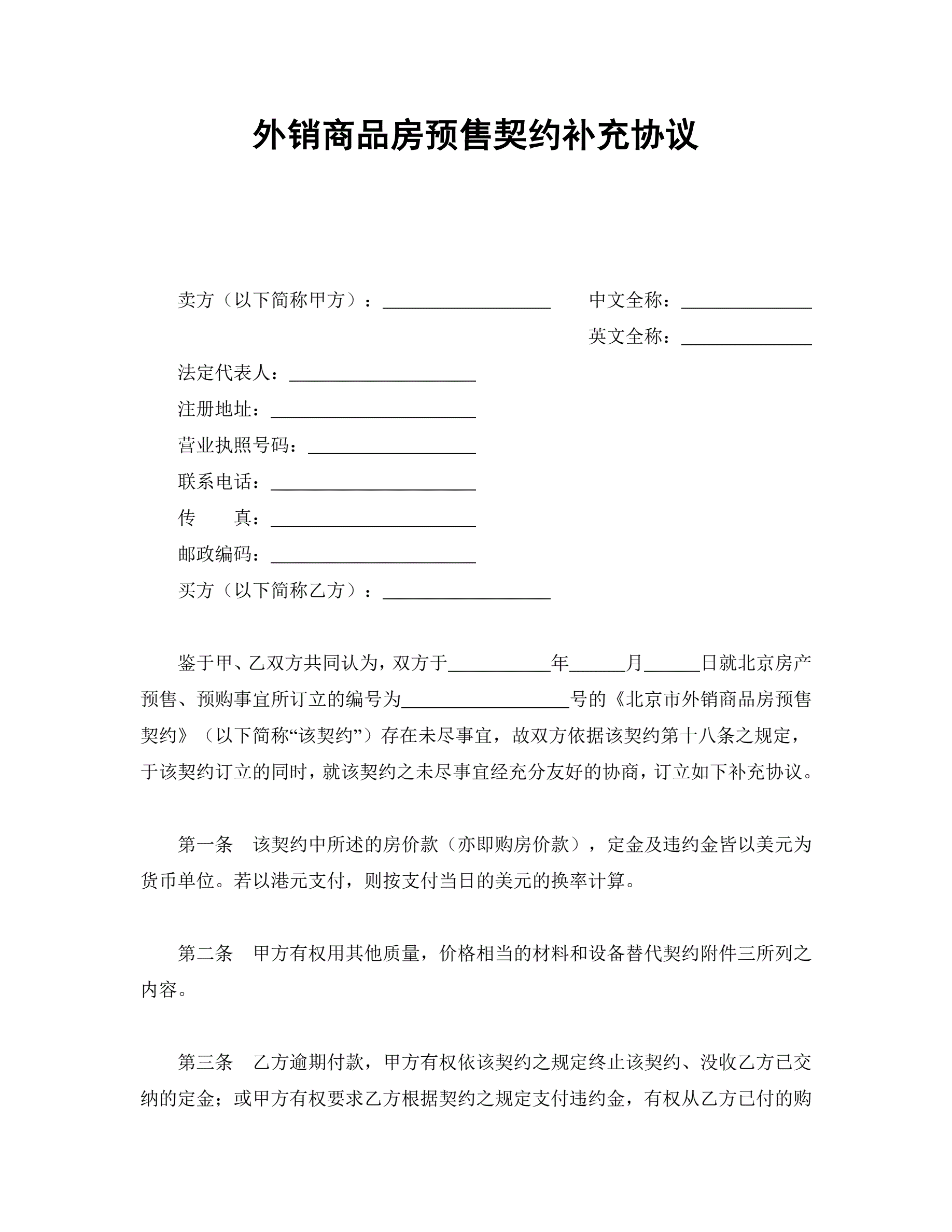 外销商品房预售契约补充协议