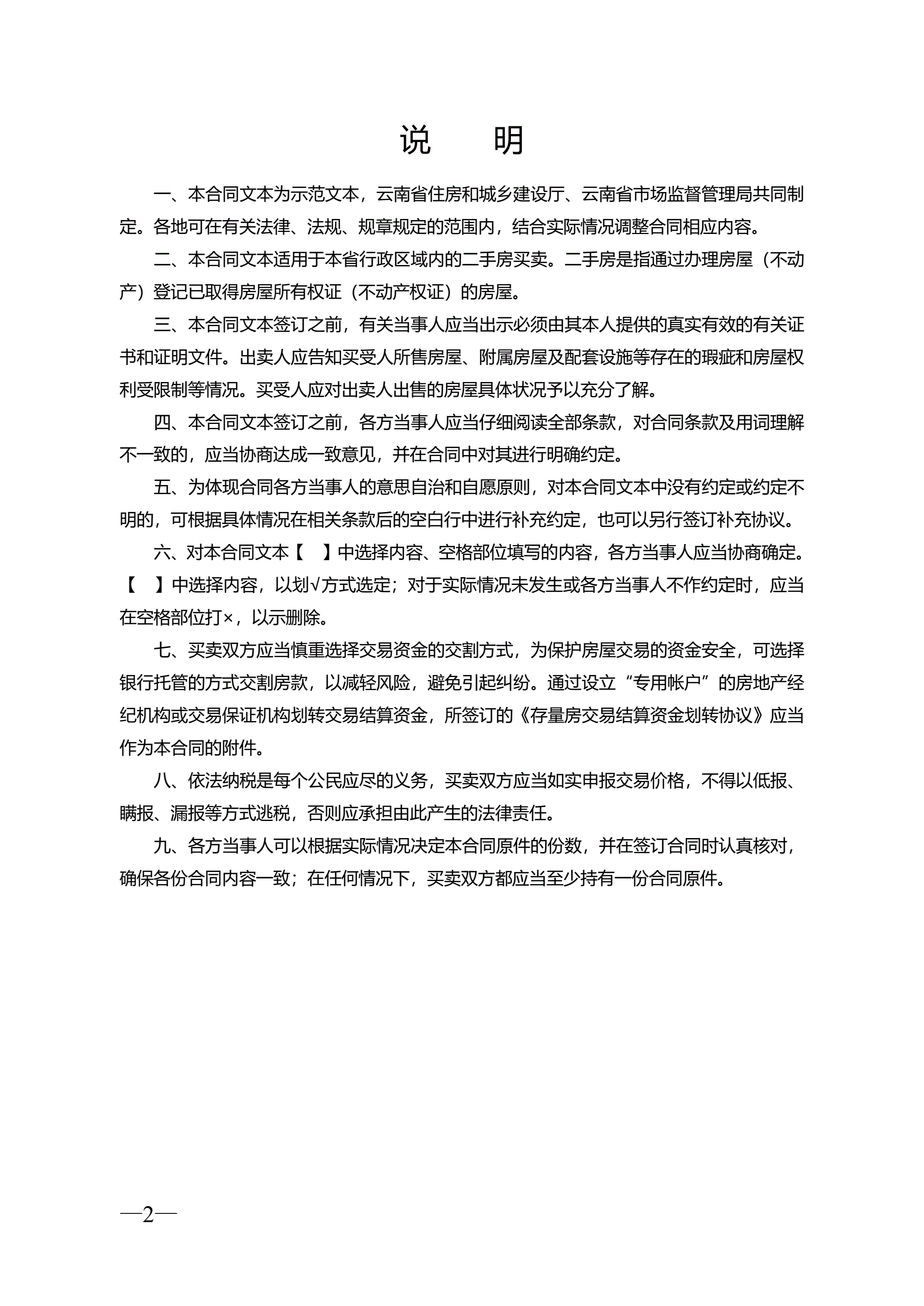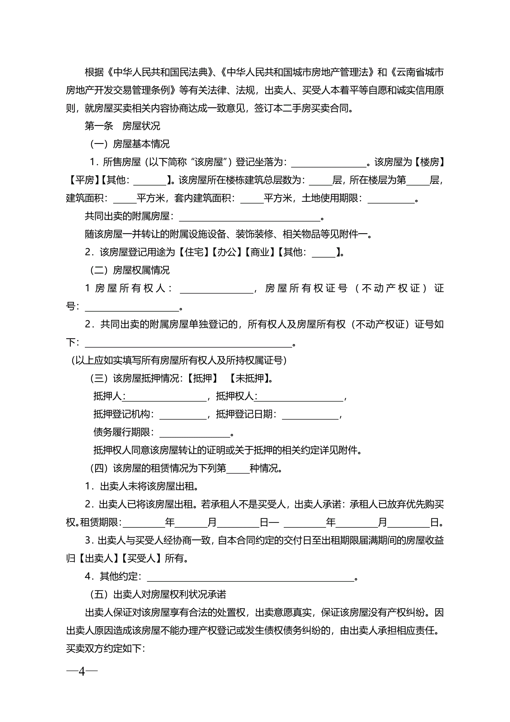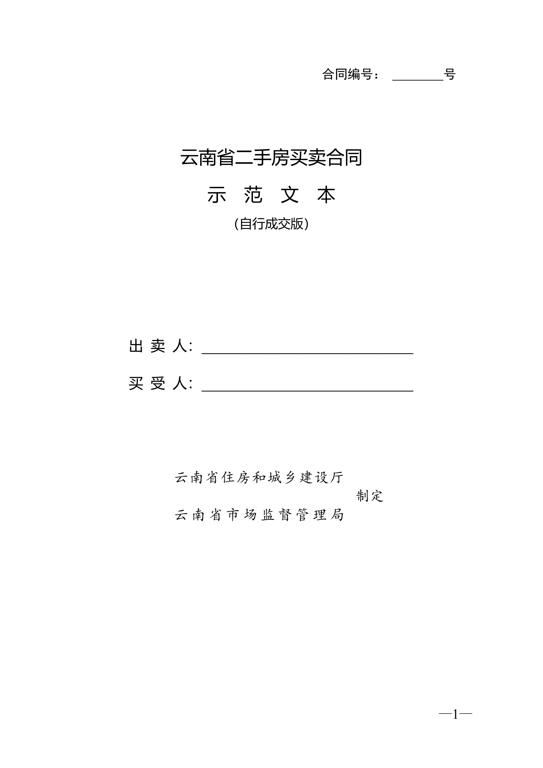 >云南省二手房买卖合同示范文本(自行成交版)
