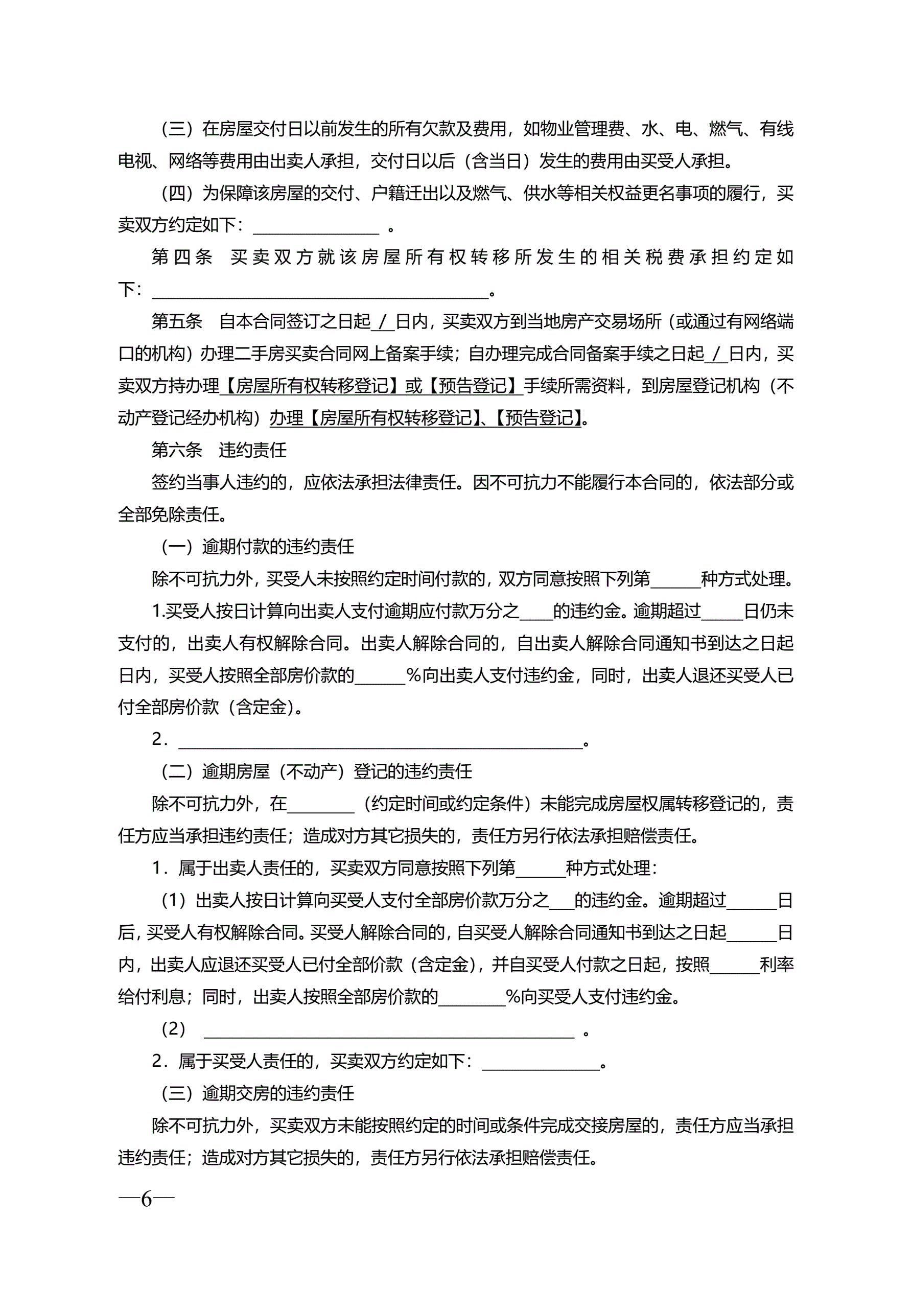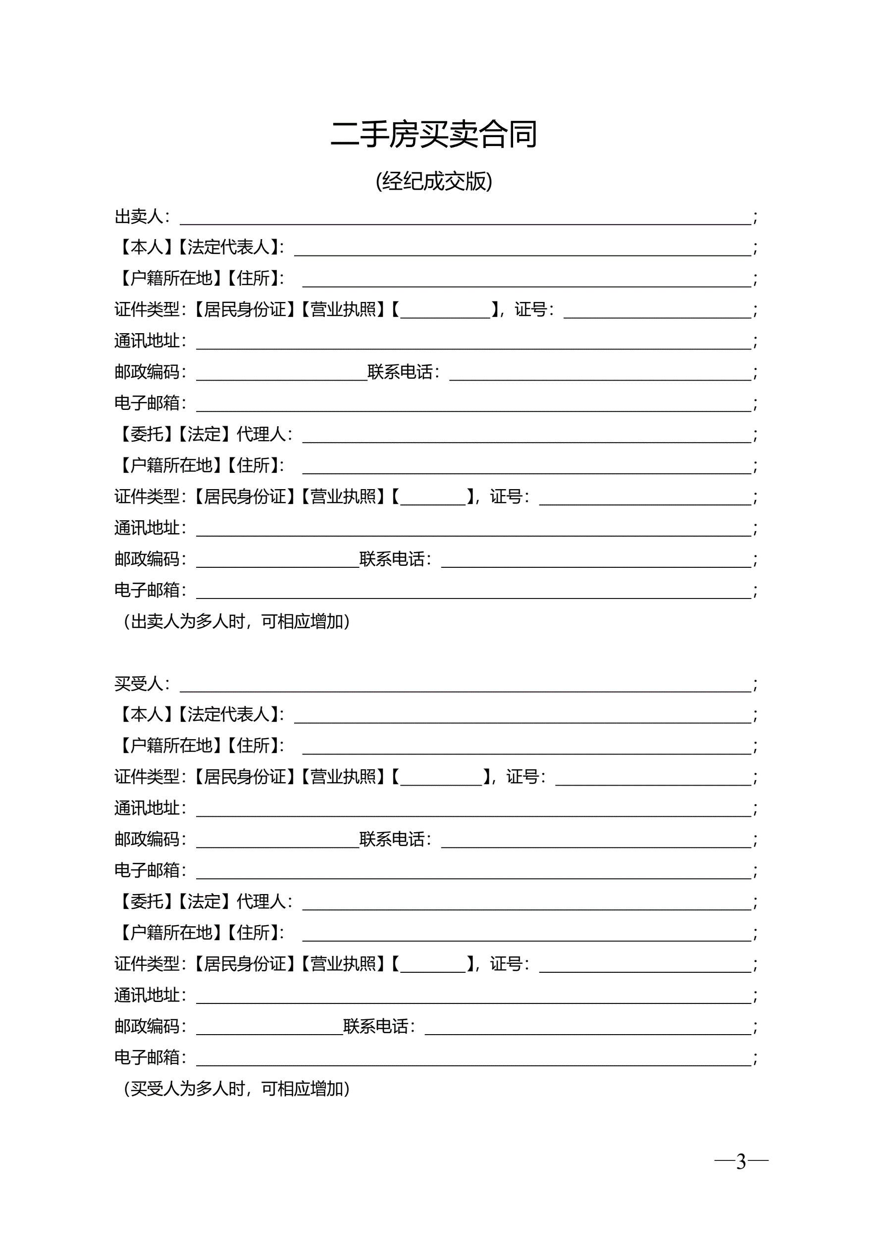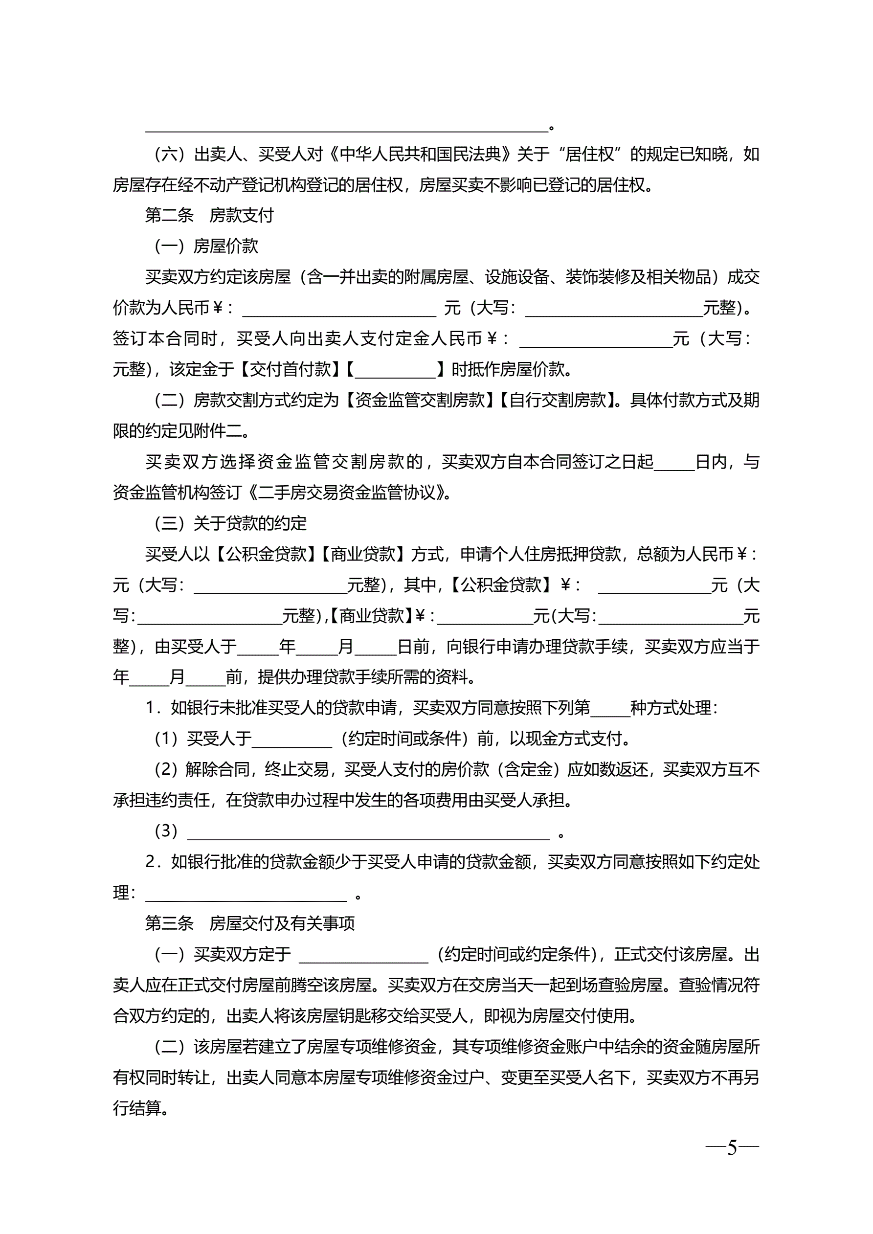 >云南省二手房买卖合同示范文本(自行成交版)