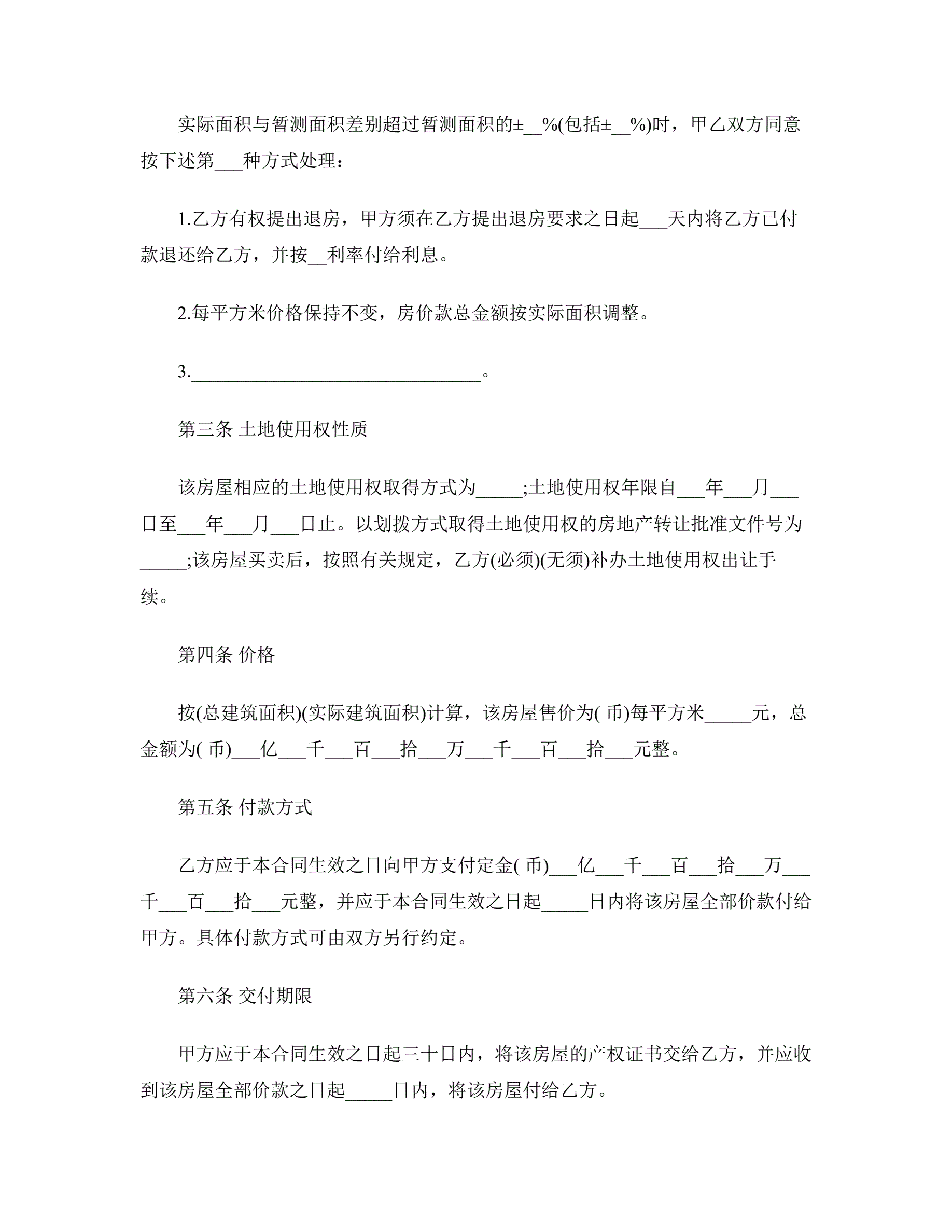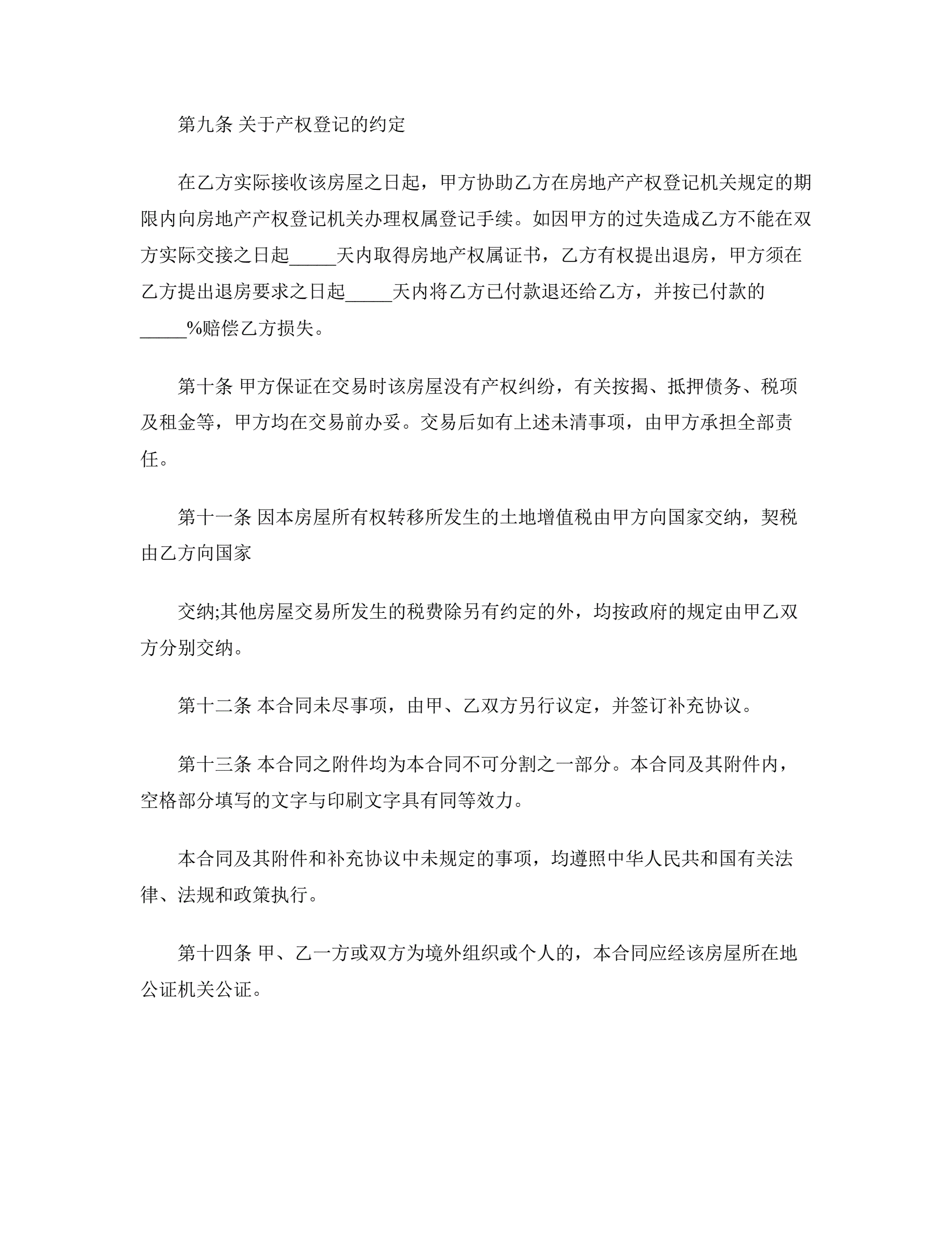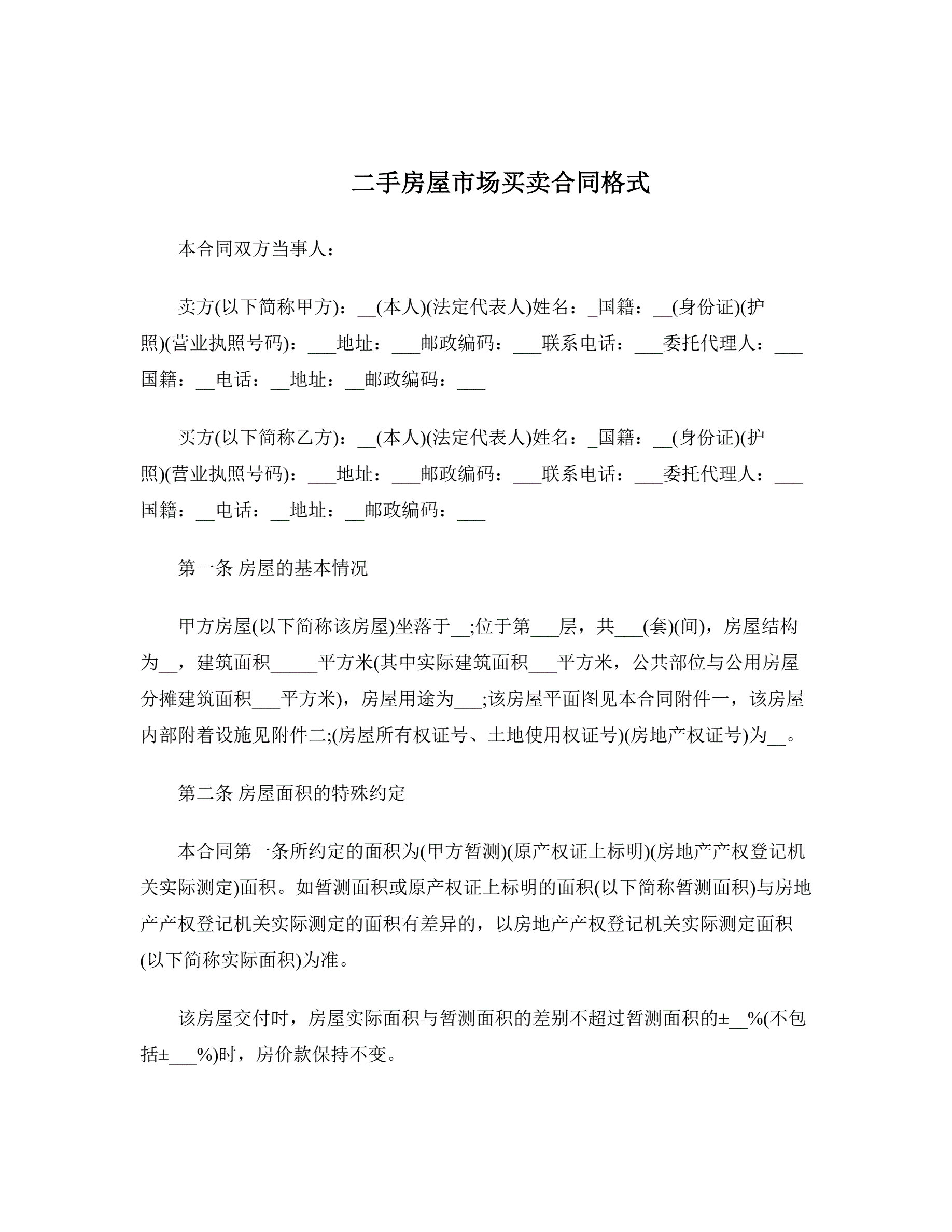 二手房屋市场买卖合同格式