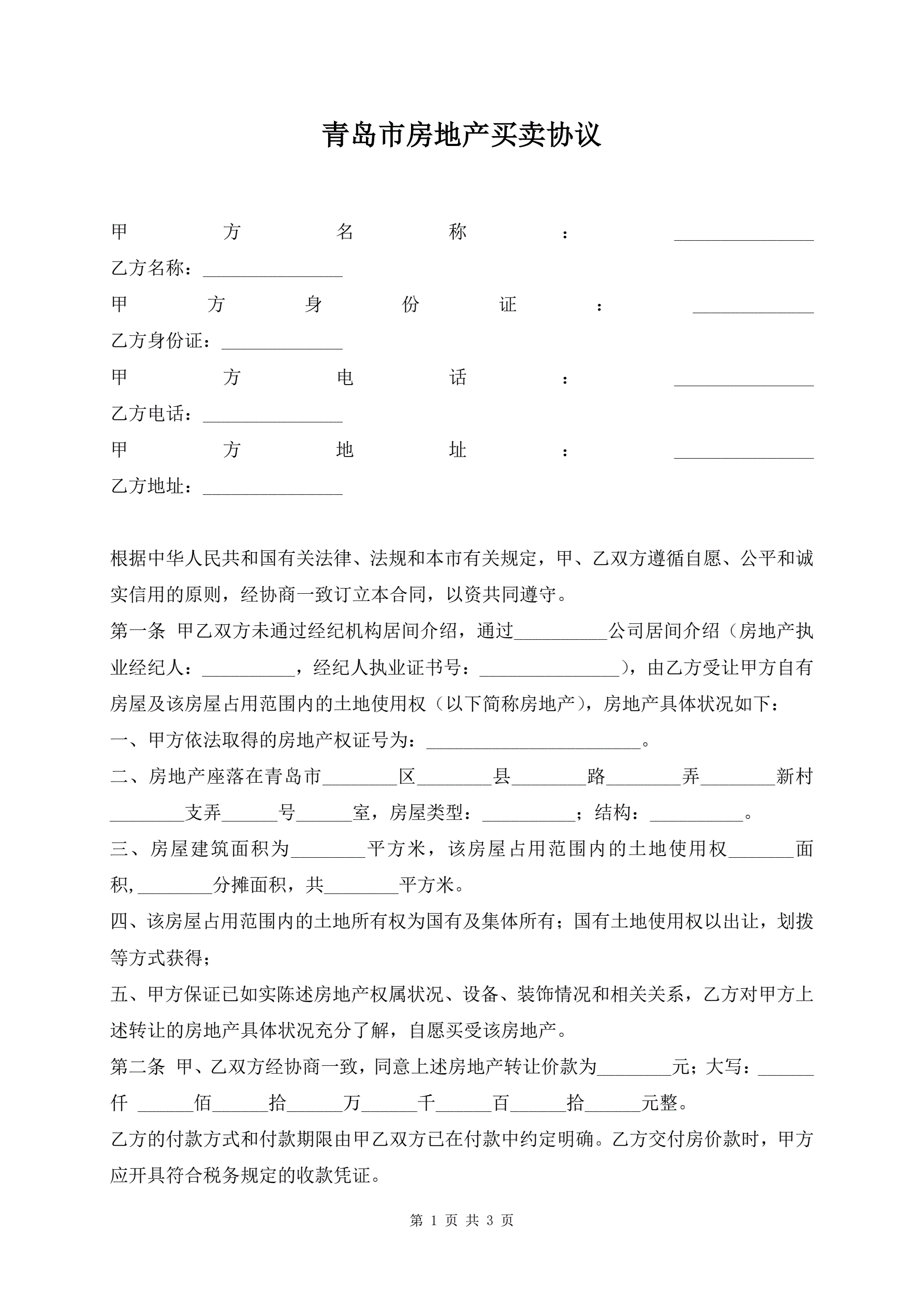 >青岛市房地产买卖协议