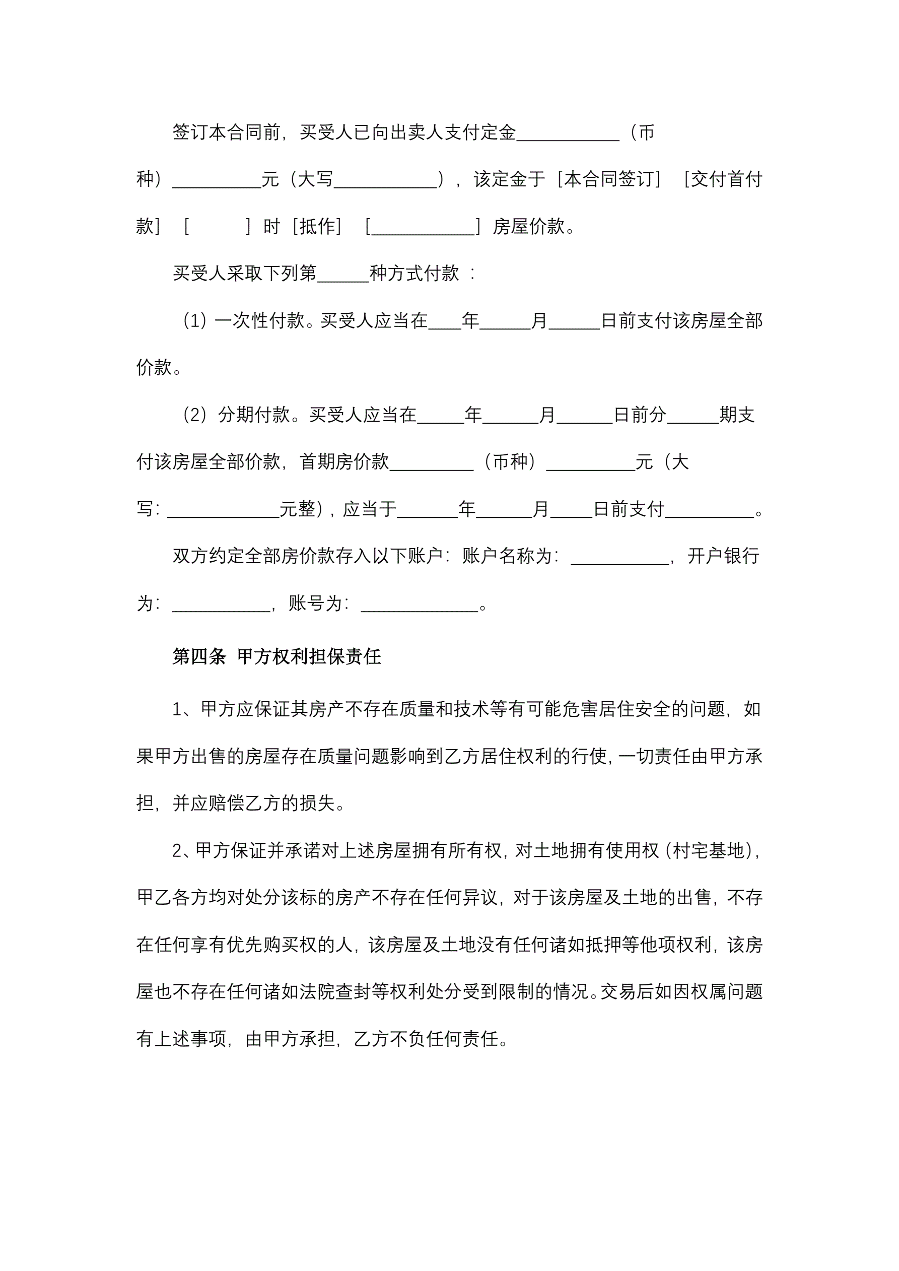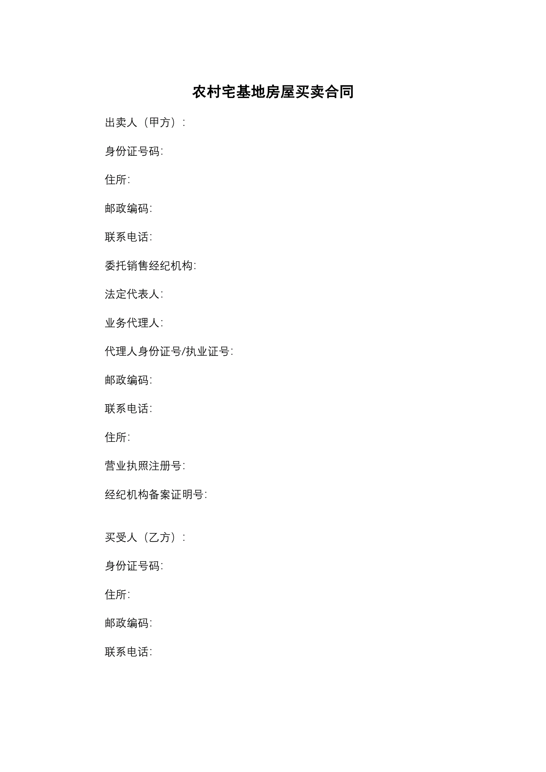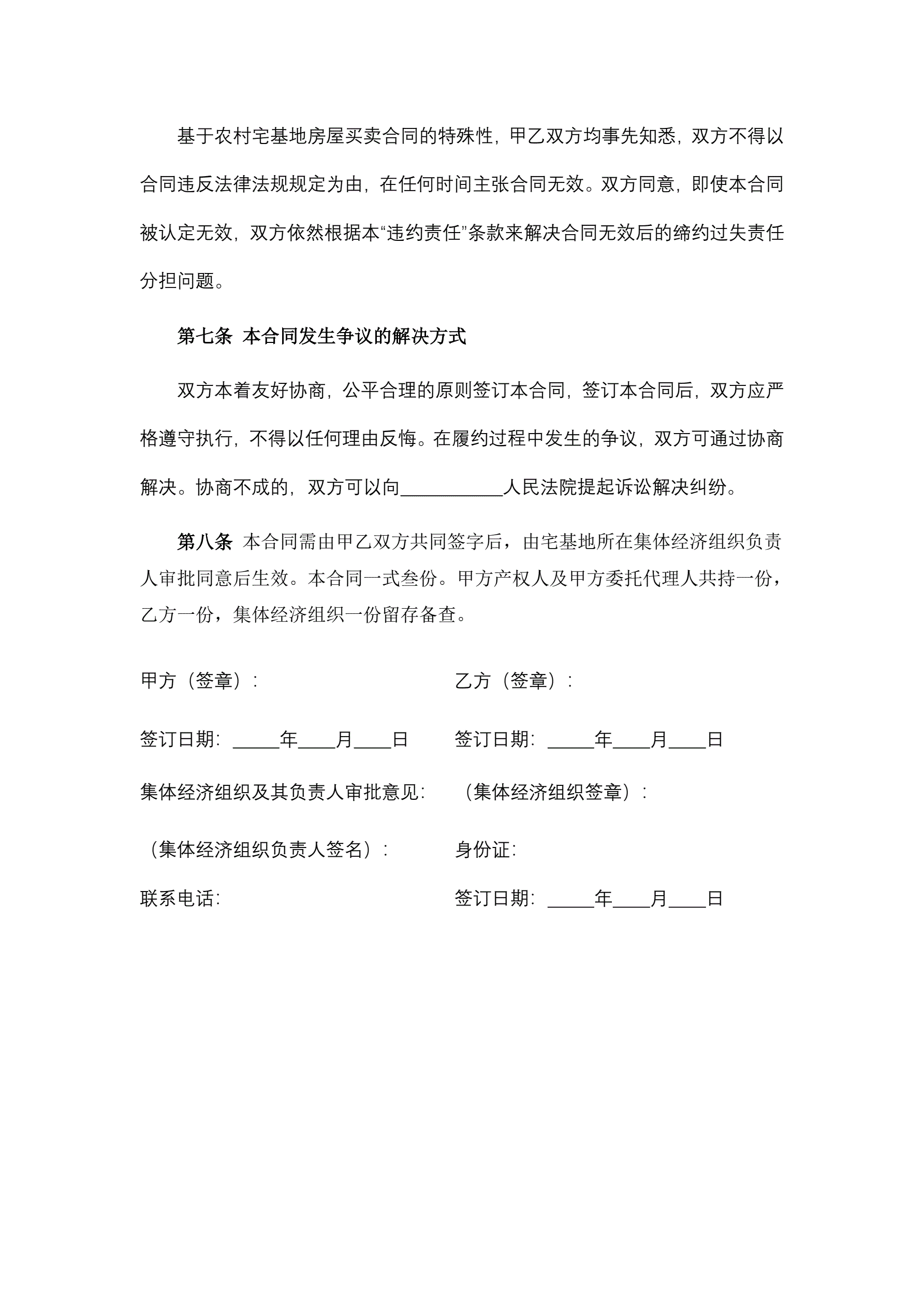 农村宅基地房屋买卖合同