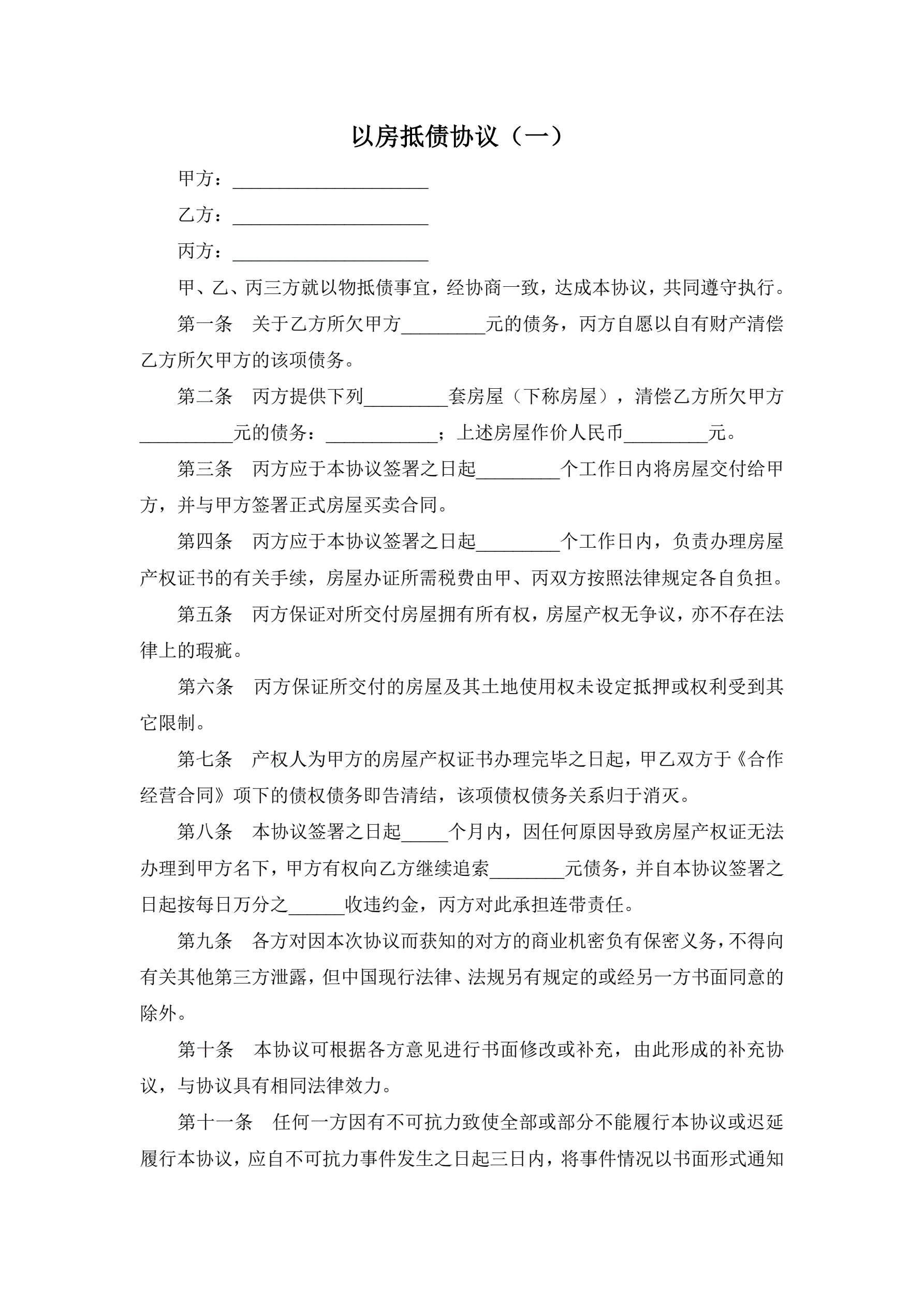 以房抵债协议