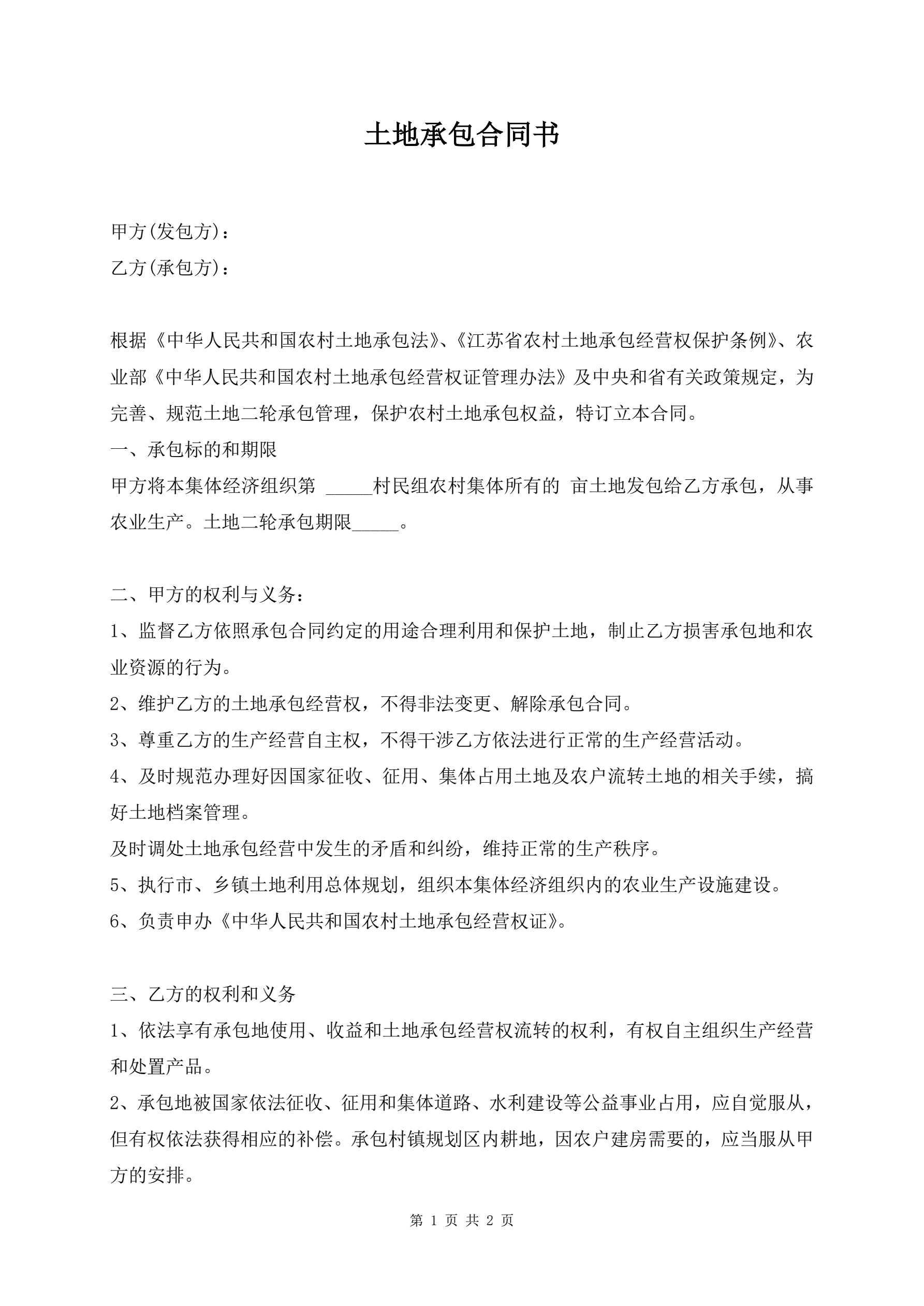 土地承包合同书