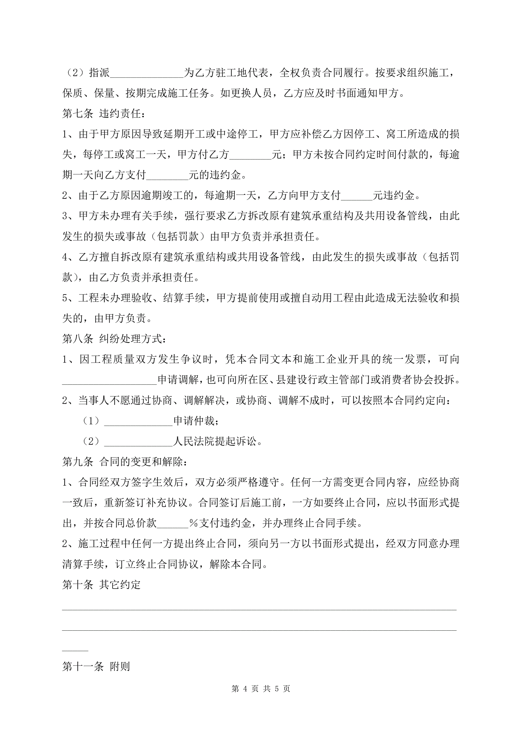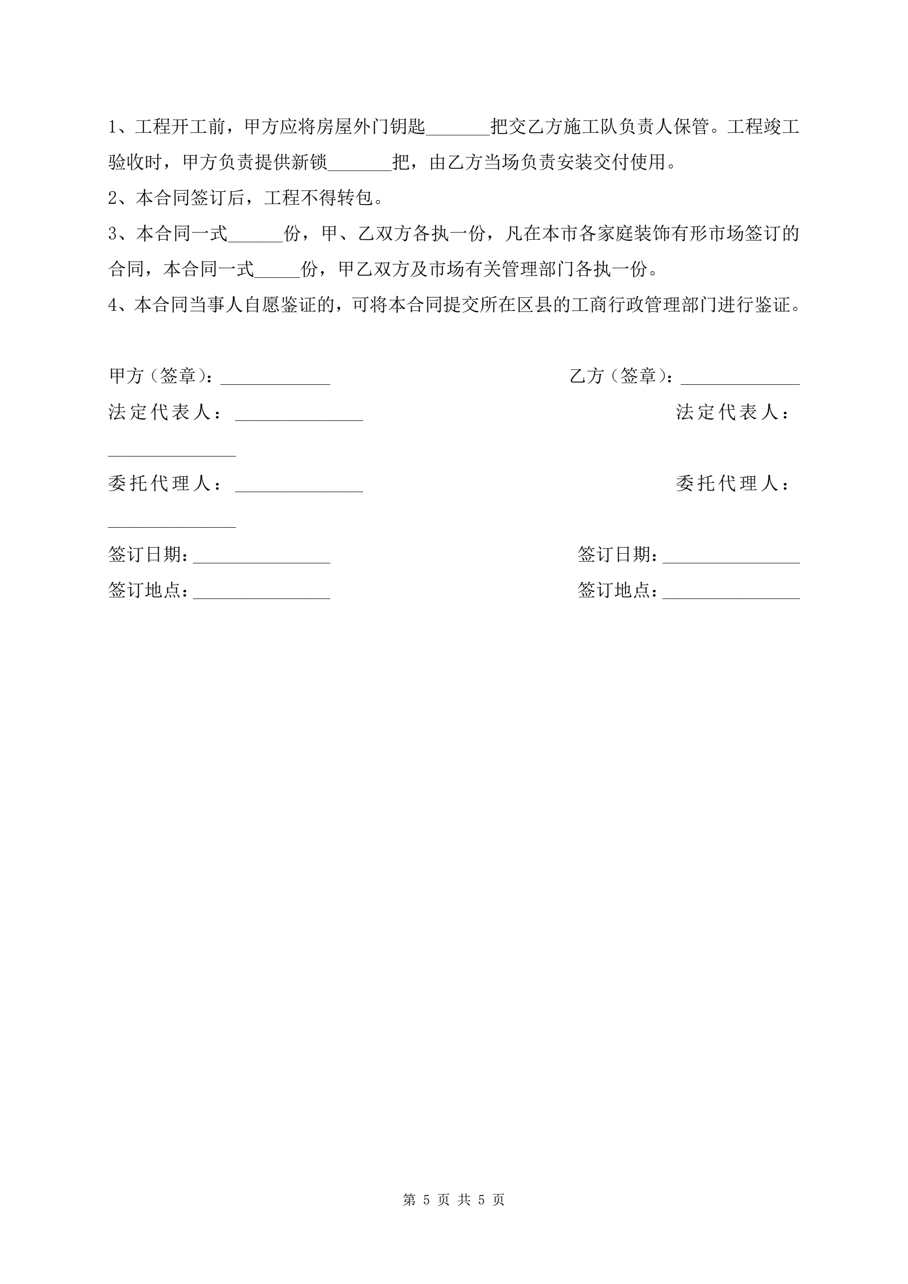 >北京市家庭居室装饰装修施工协议