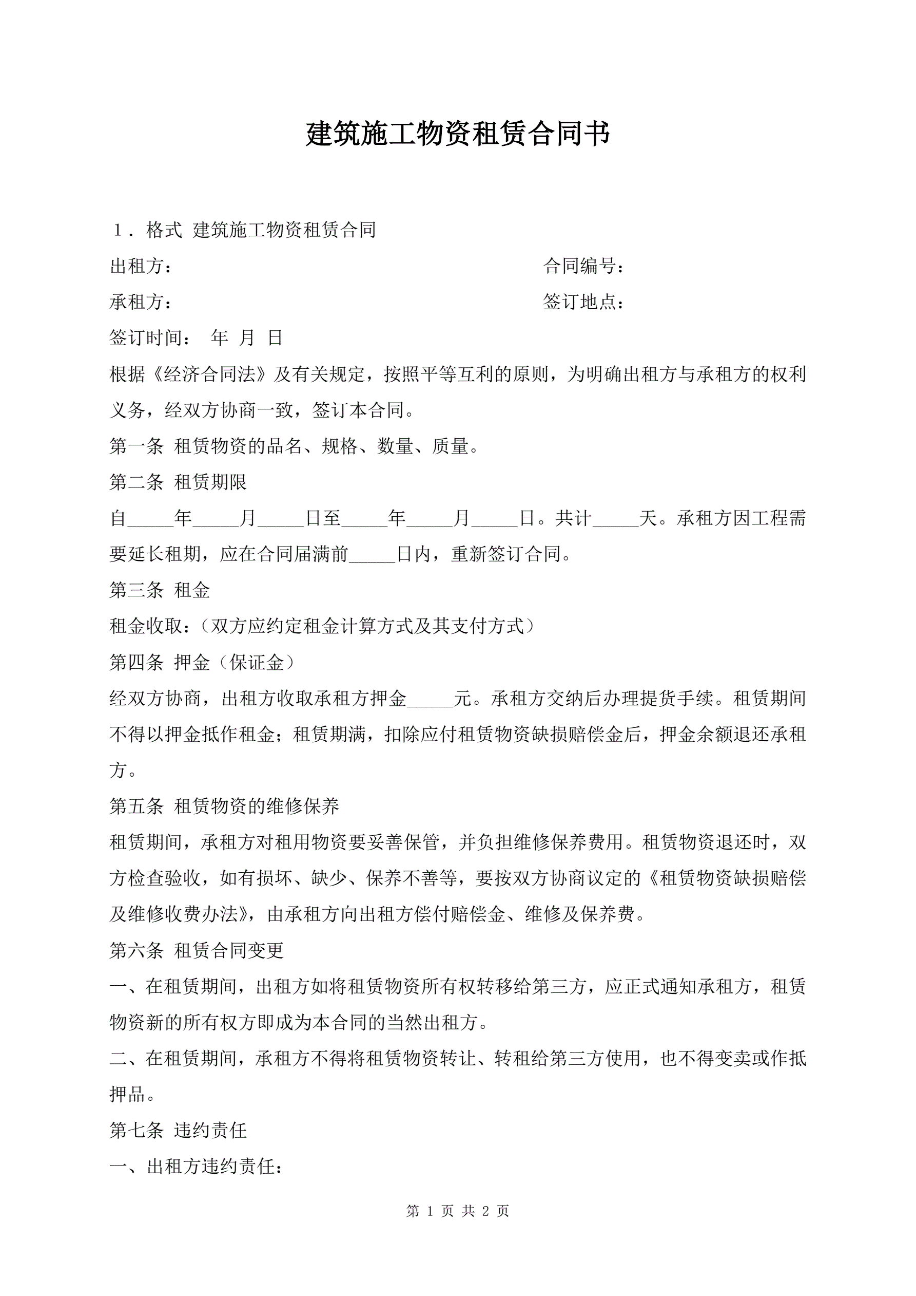 建筑施工物资租赁合同书