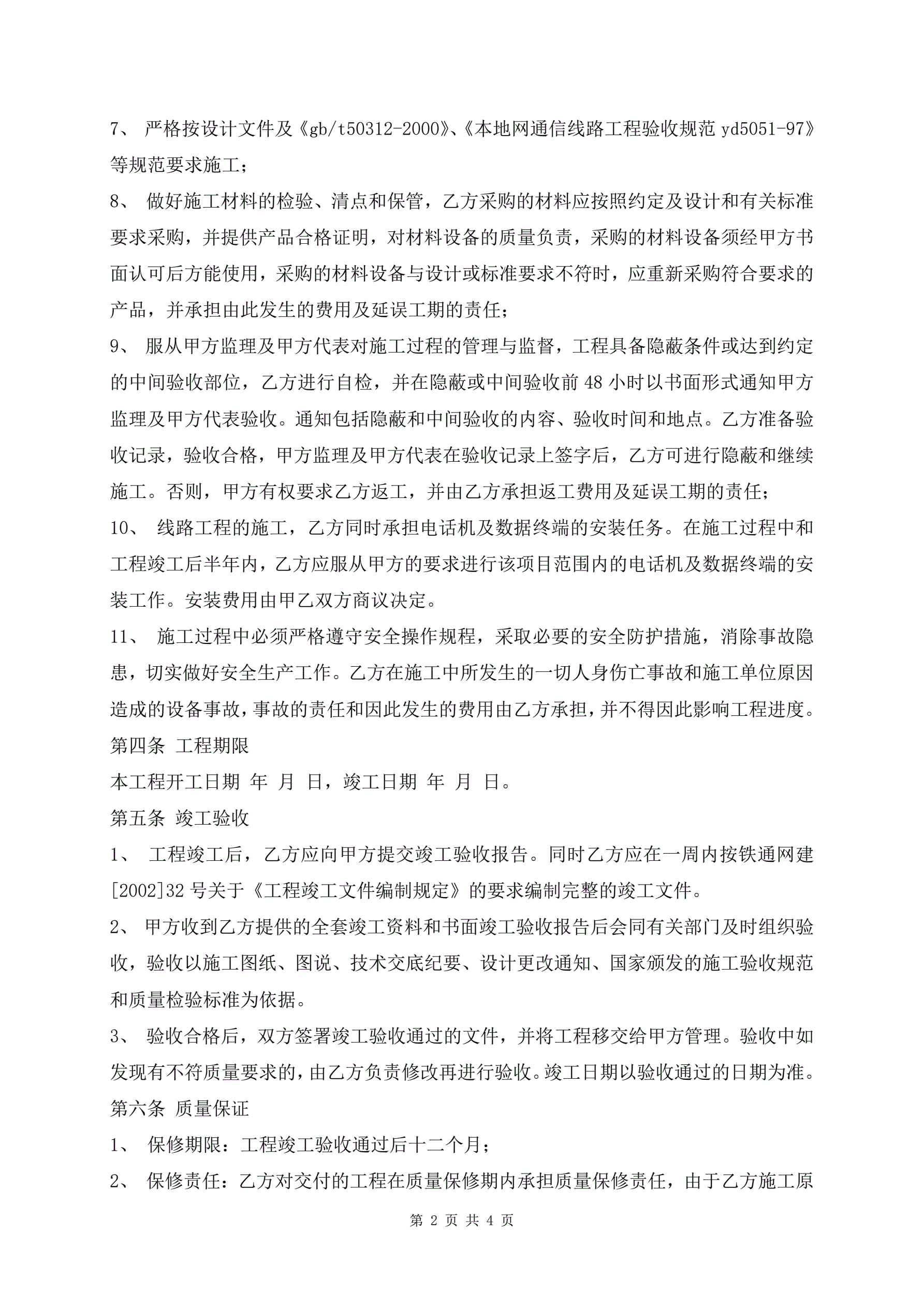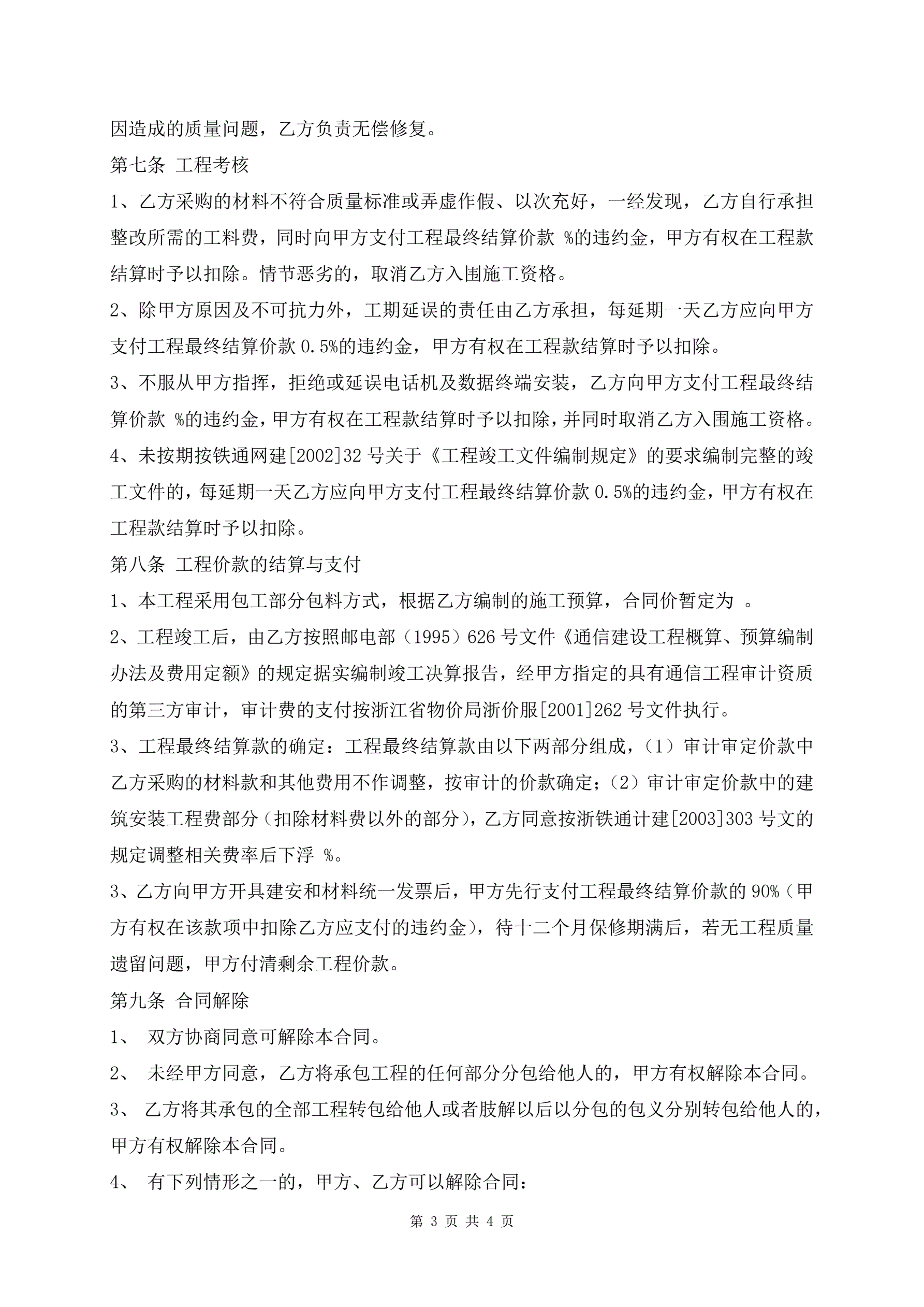 >通信工程施工合同热门版