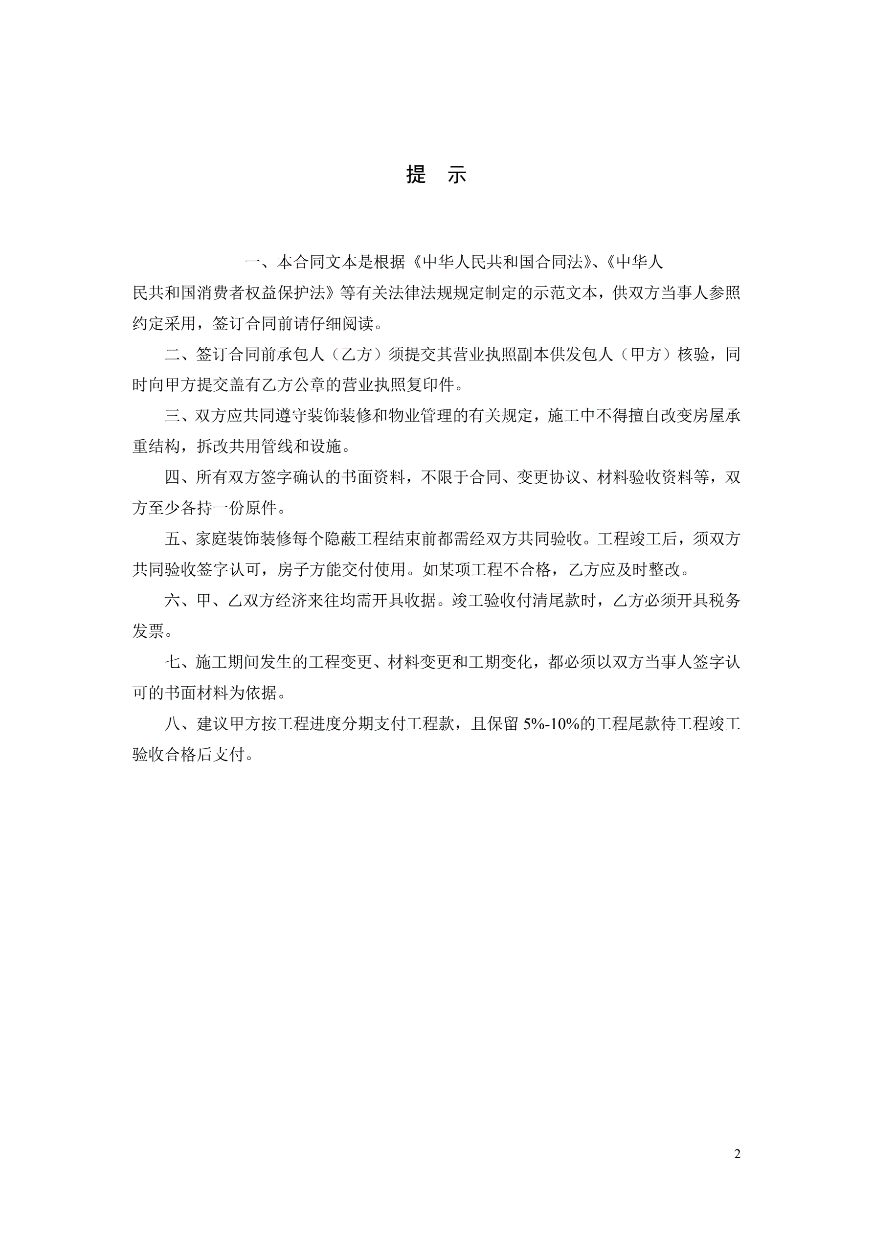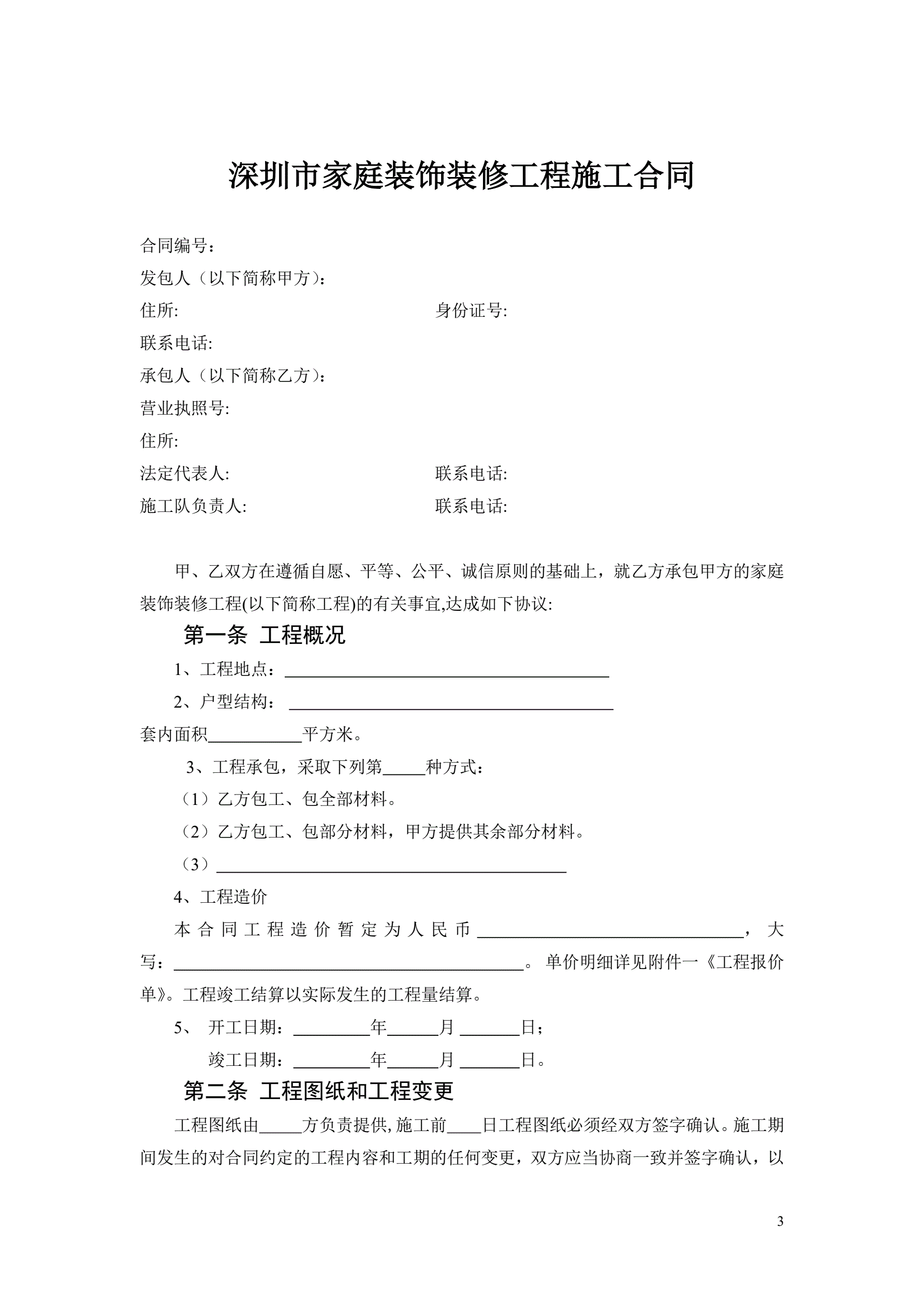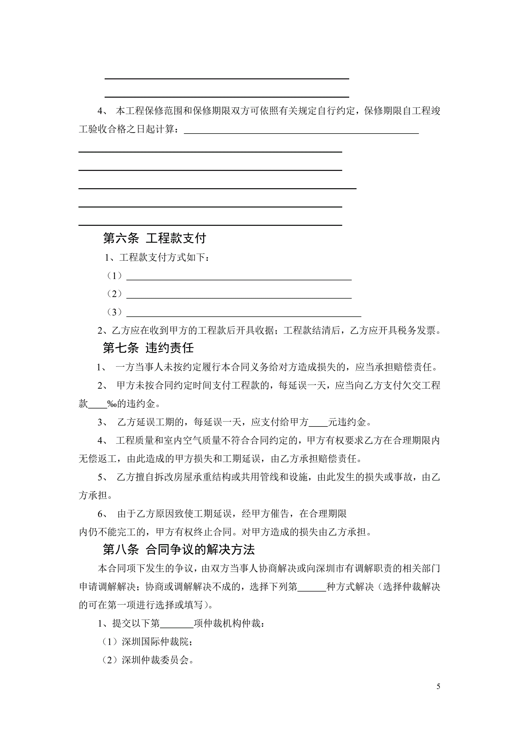 >7、深圳市家庭装饰装修工程施工合同示范文本