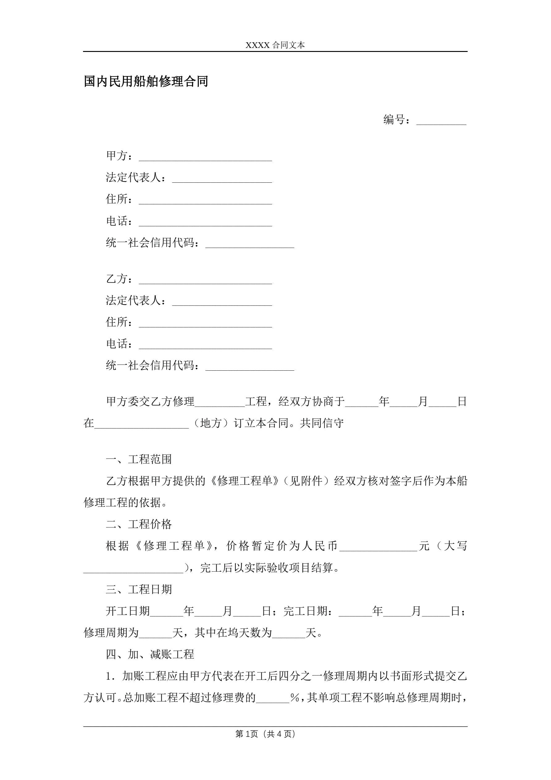>国内民用船舶修理合同