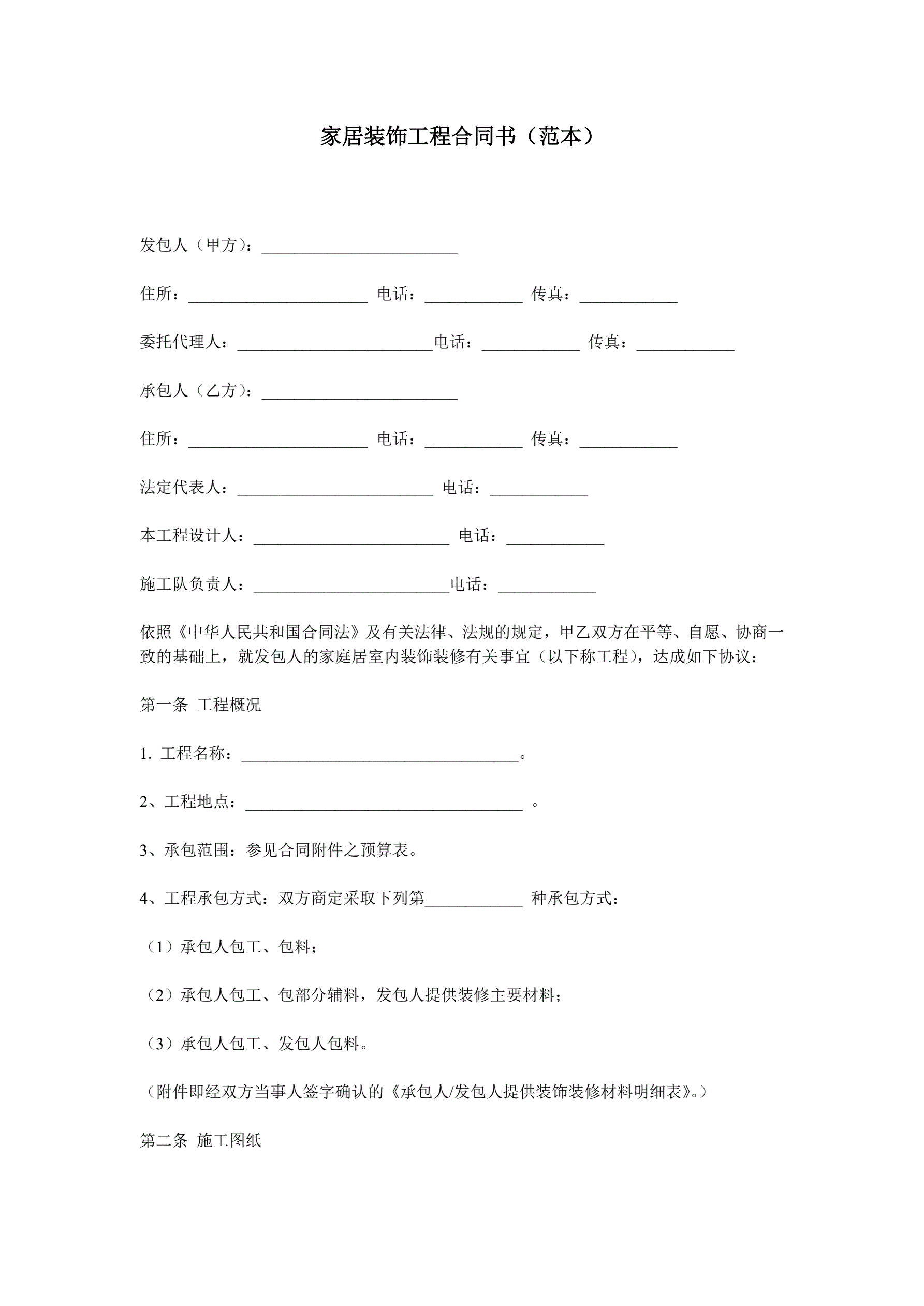 家庭装修合同