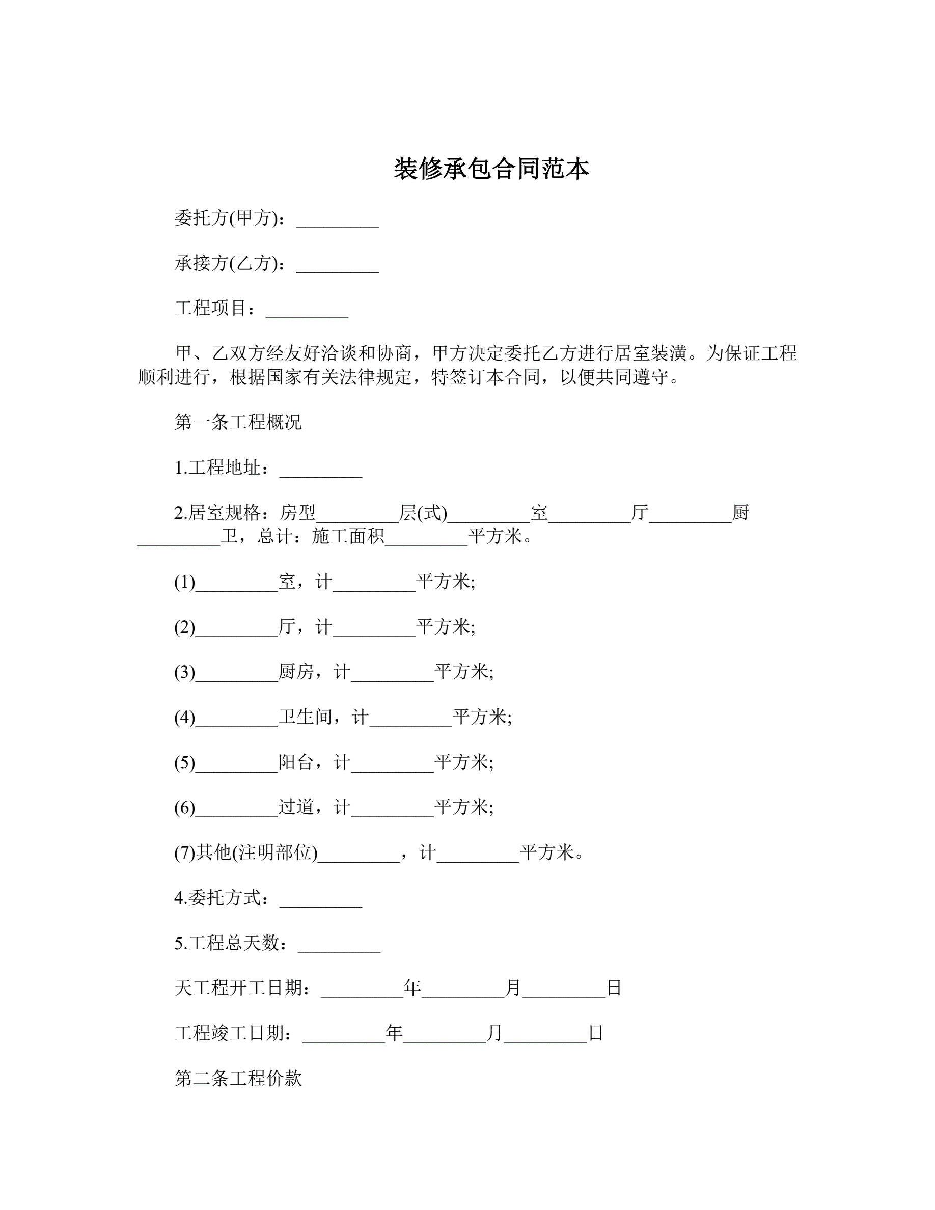 >装修承包合同范本