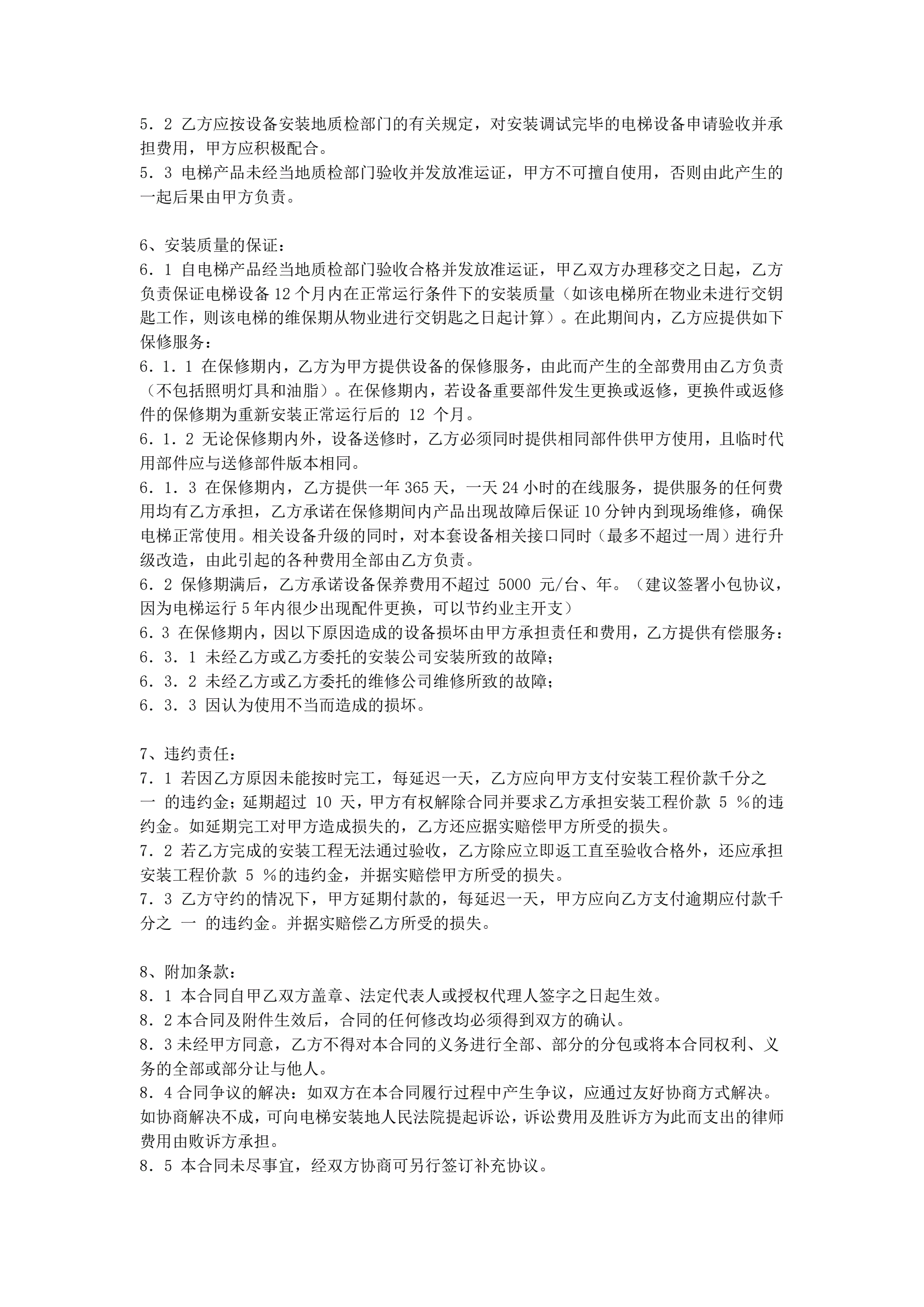 电梯设备安装合同