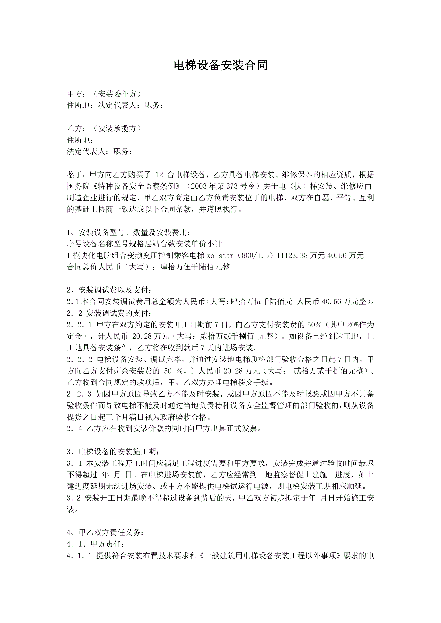 电梯设备安装合同