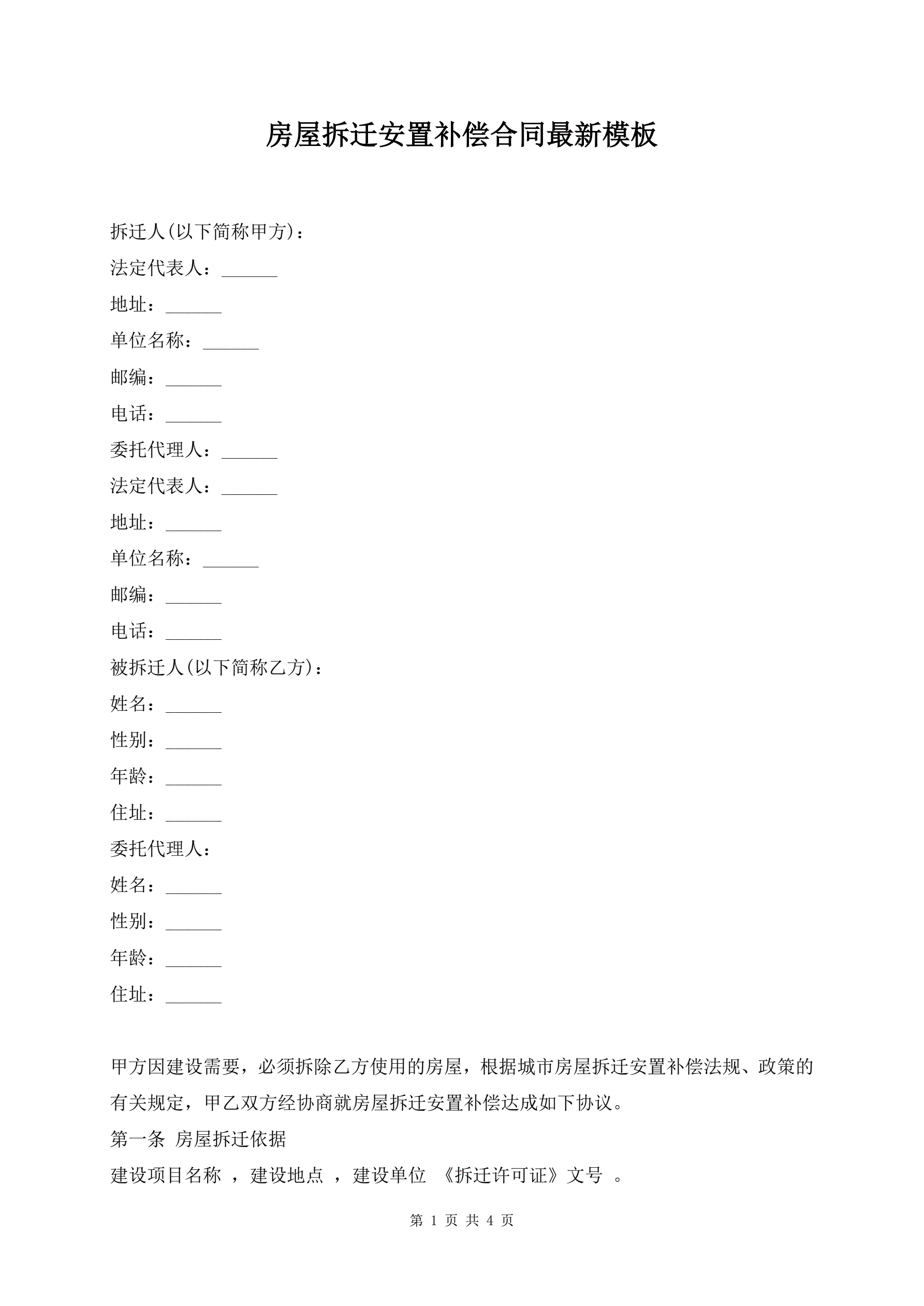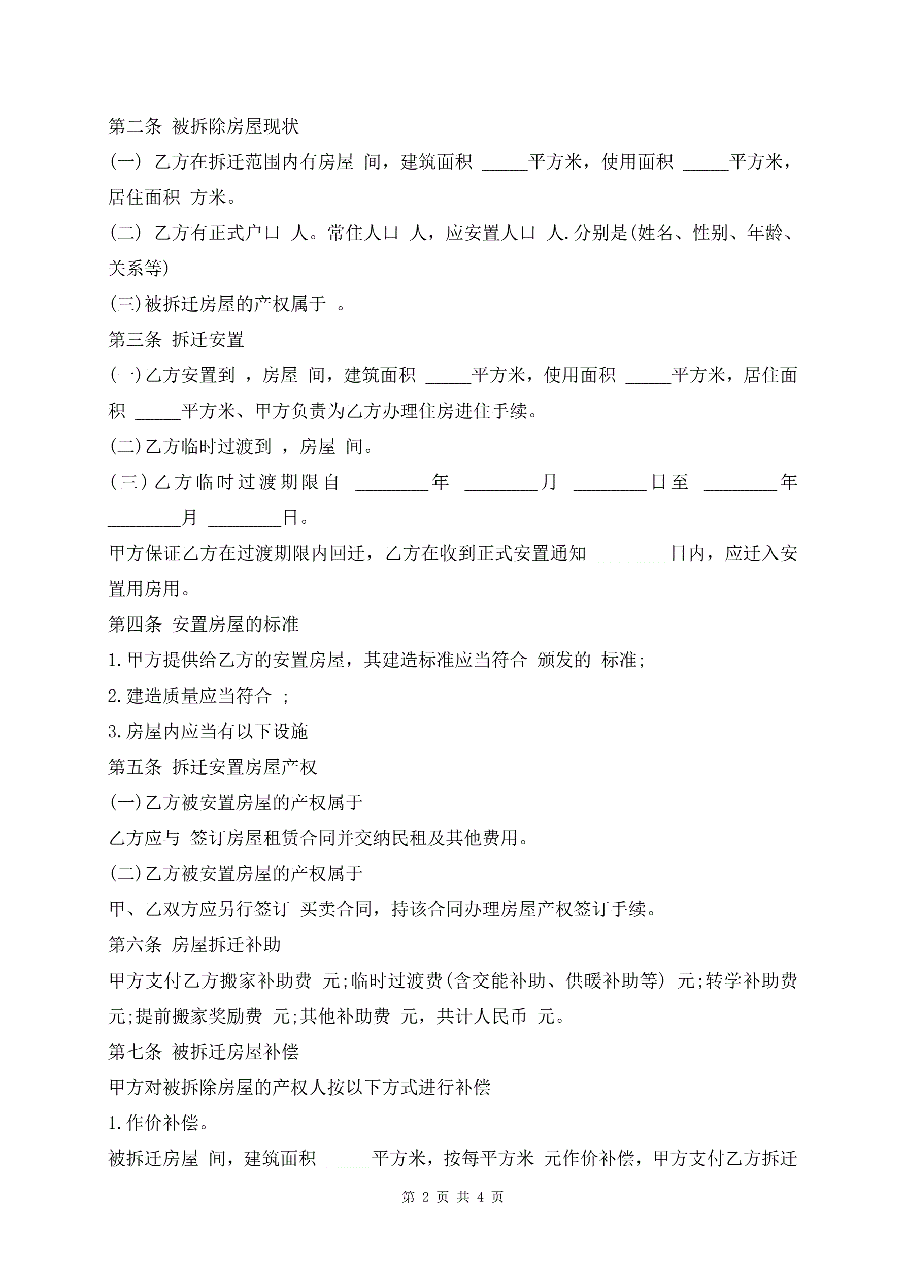 >房屋拆迁安置补偿合同最新模板