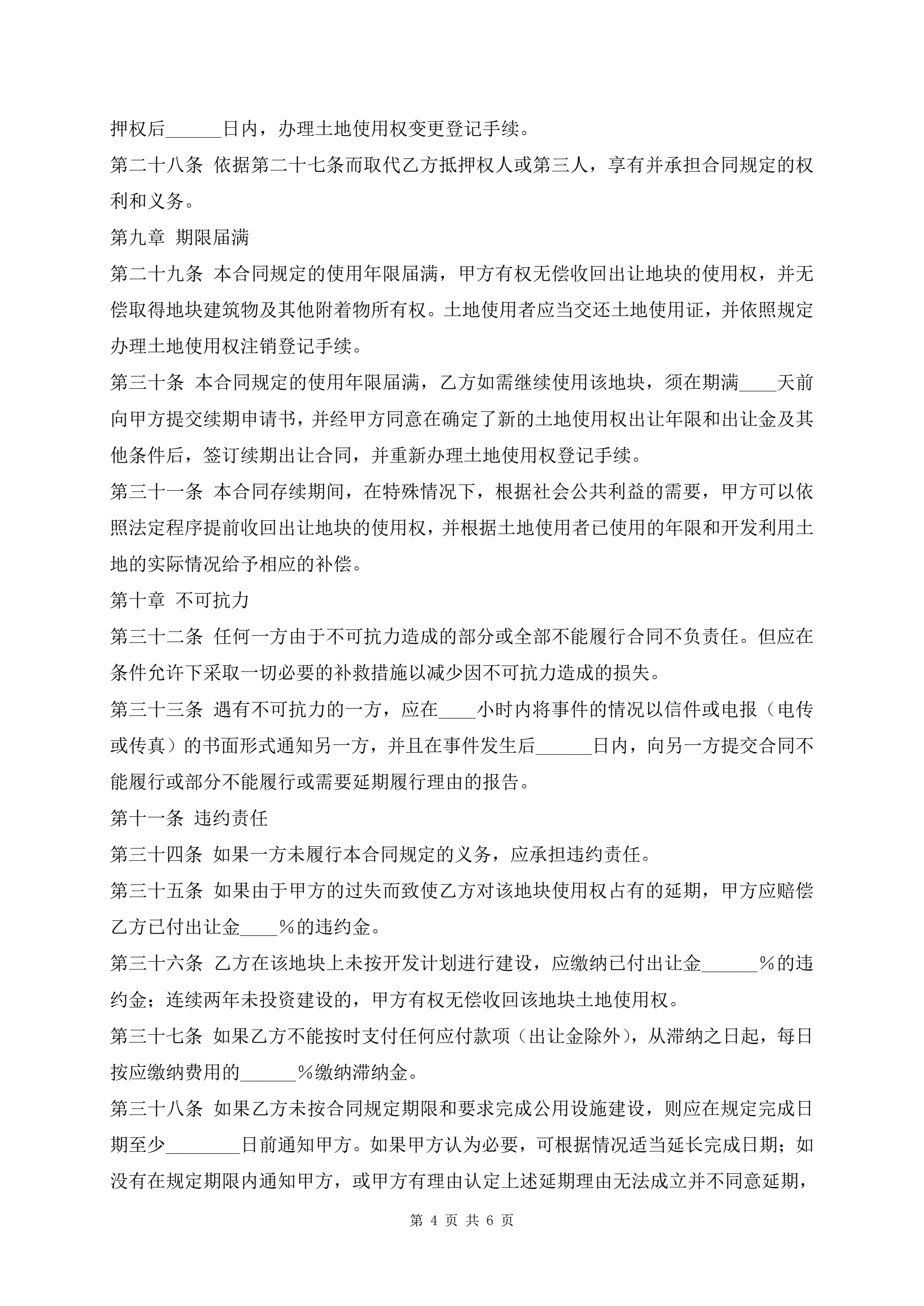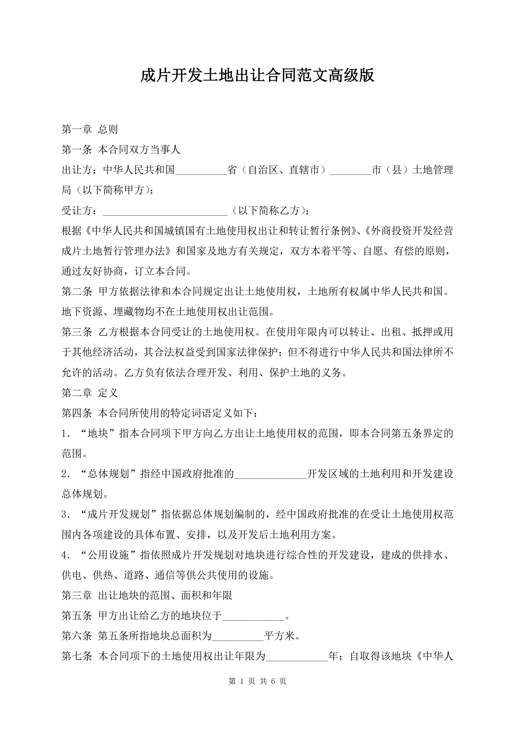 >成片开发土地出让合同范文高级版