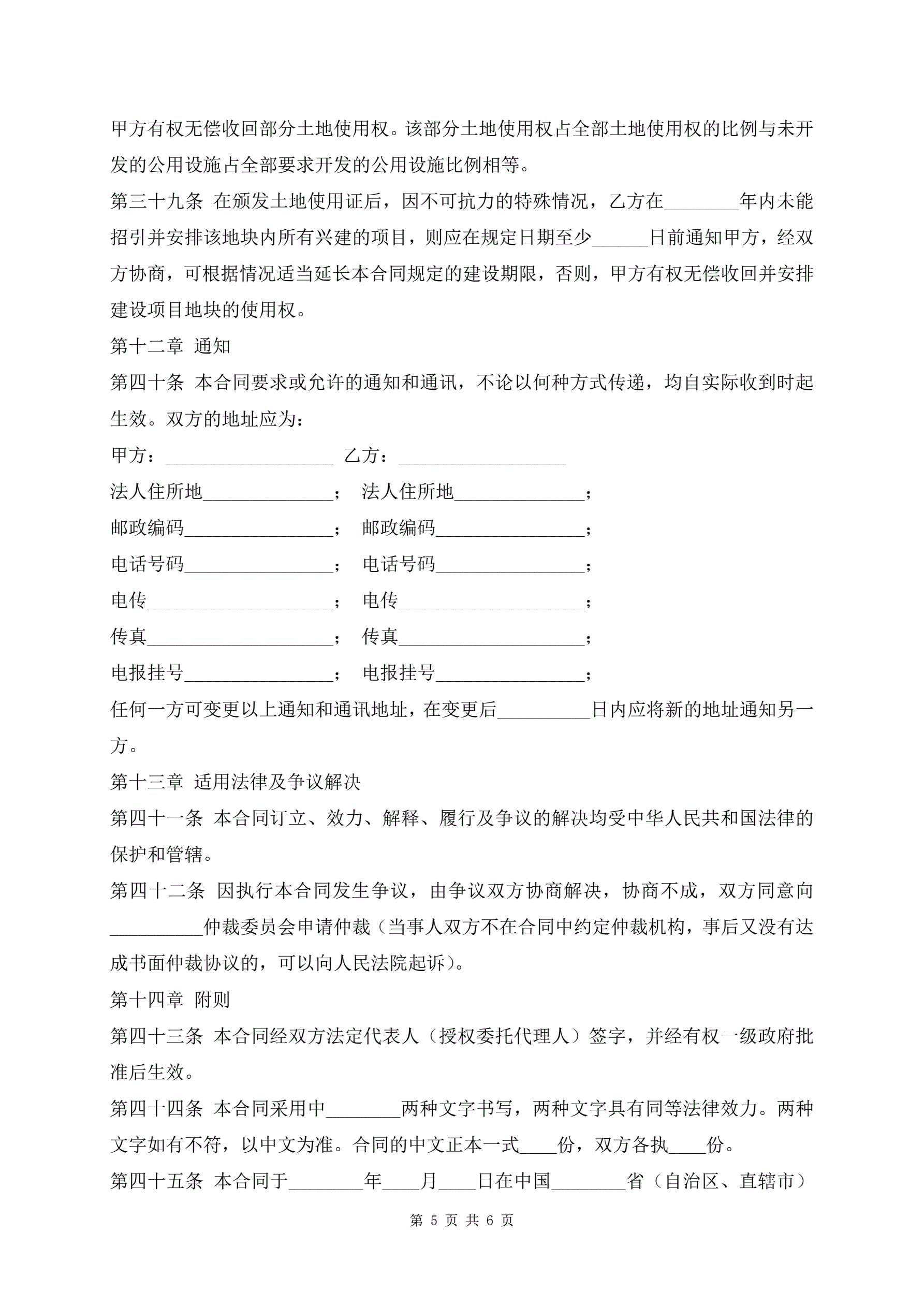 成片开发土地出让合同范文高级版