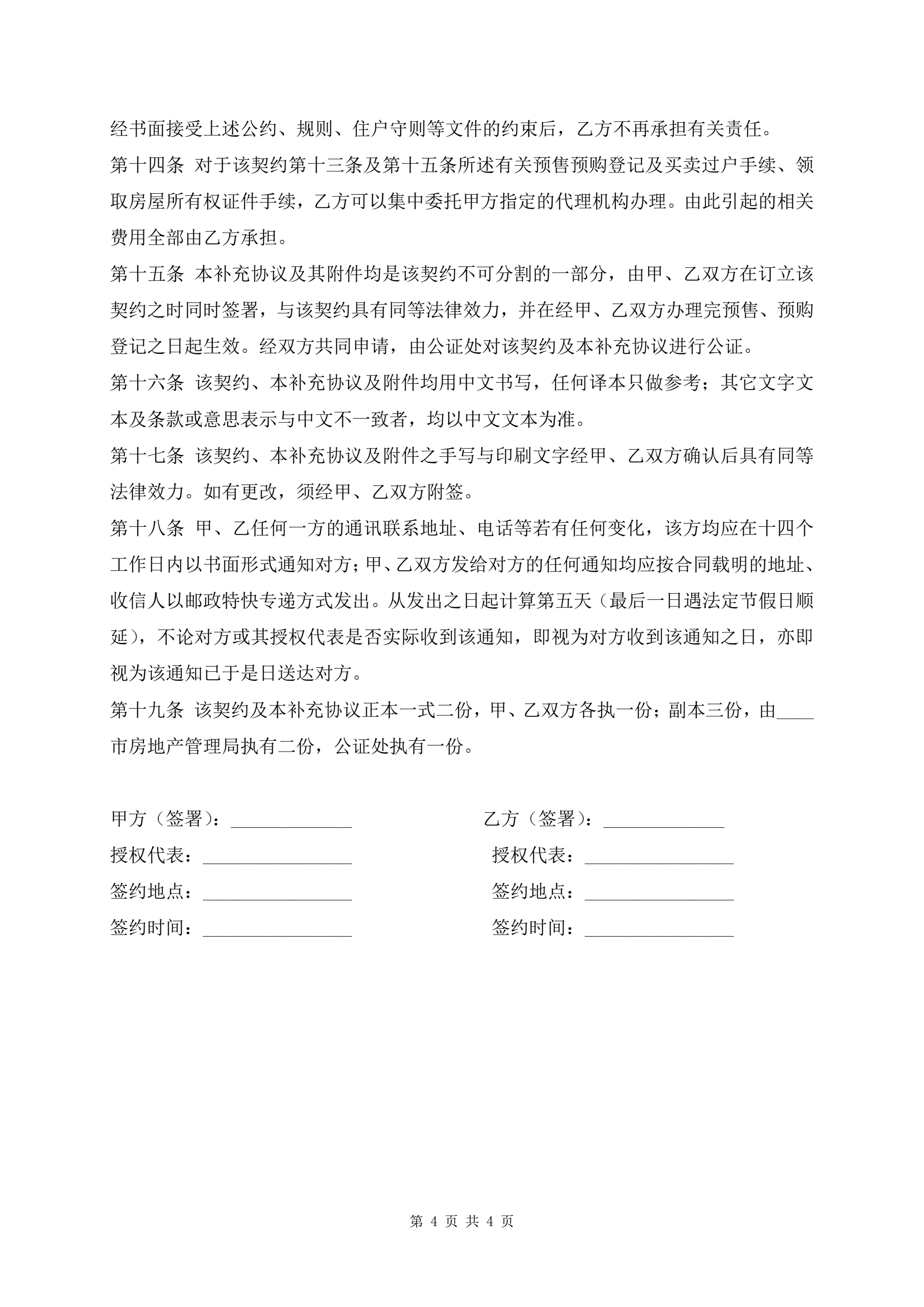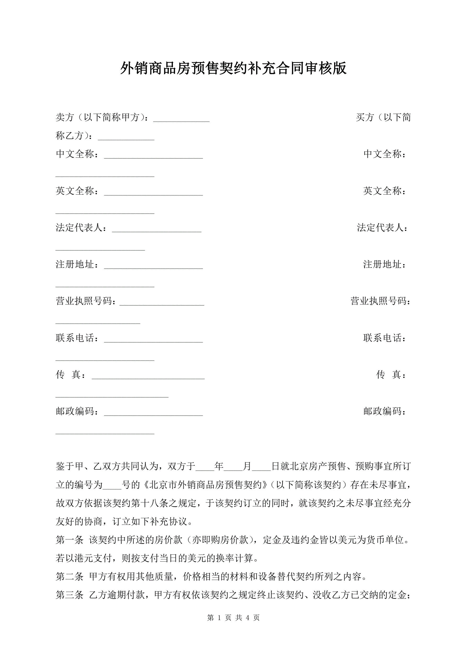 >外销商品房预售契约补充合同审核版