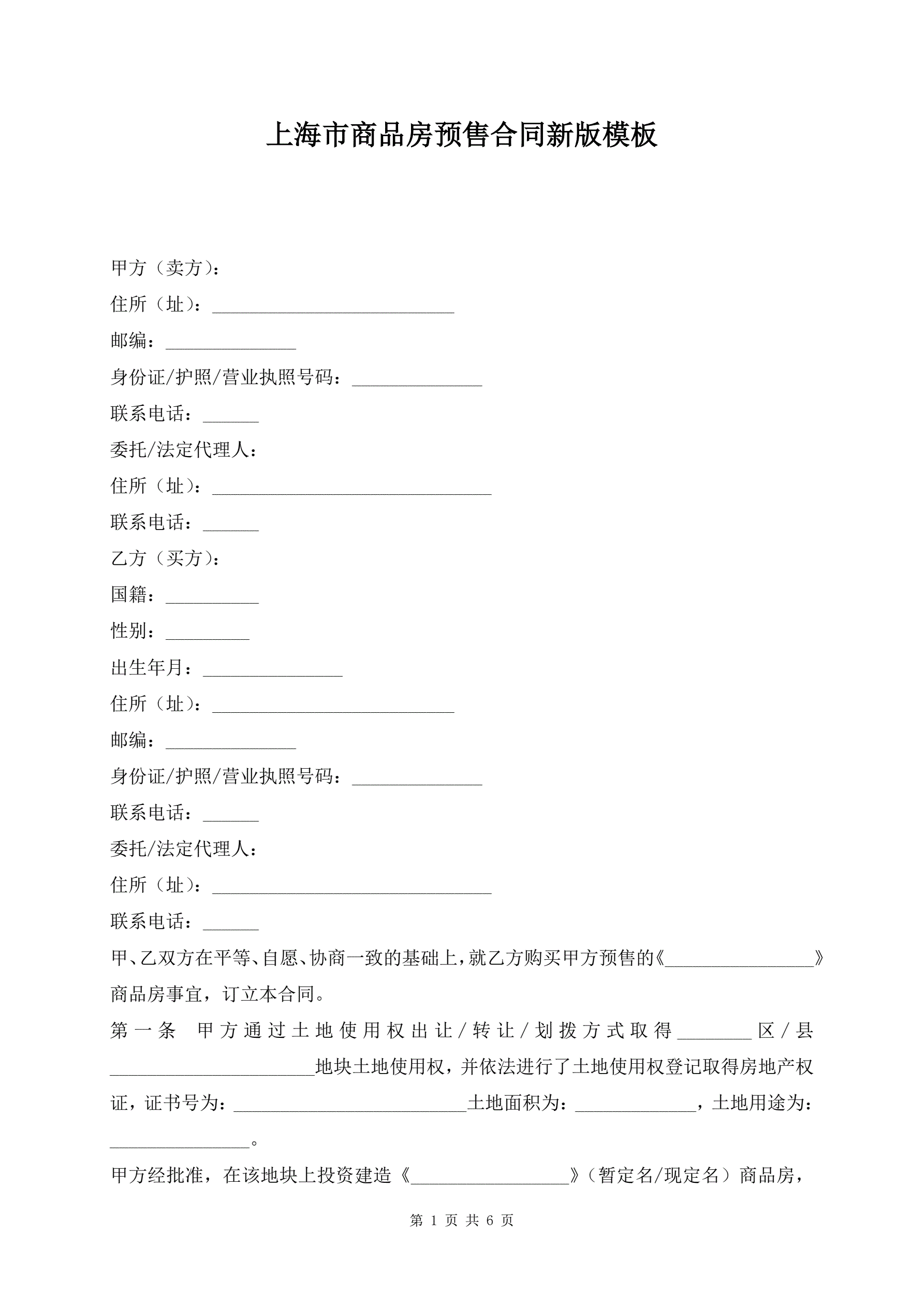 >上海市商品房预售合同新版模板