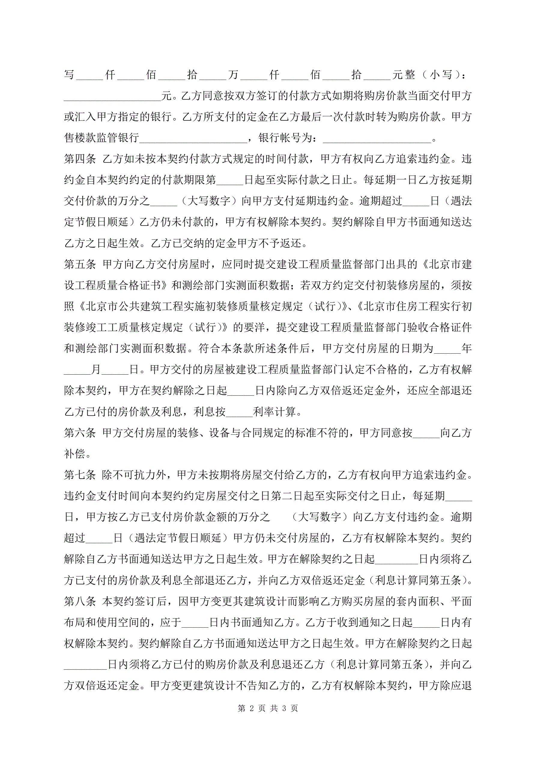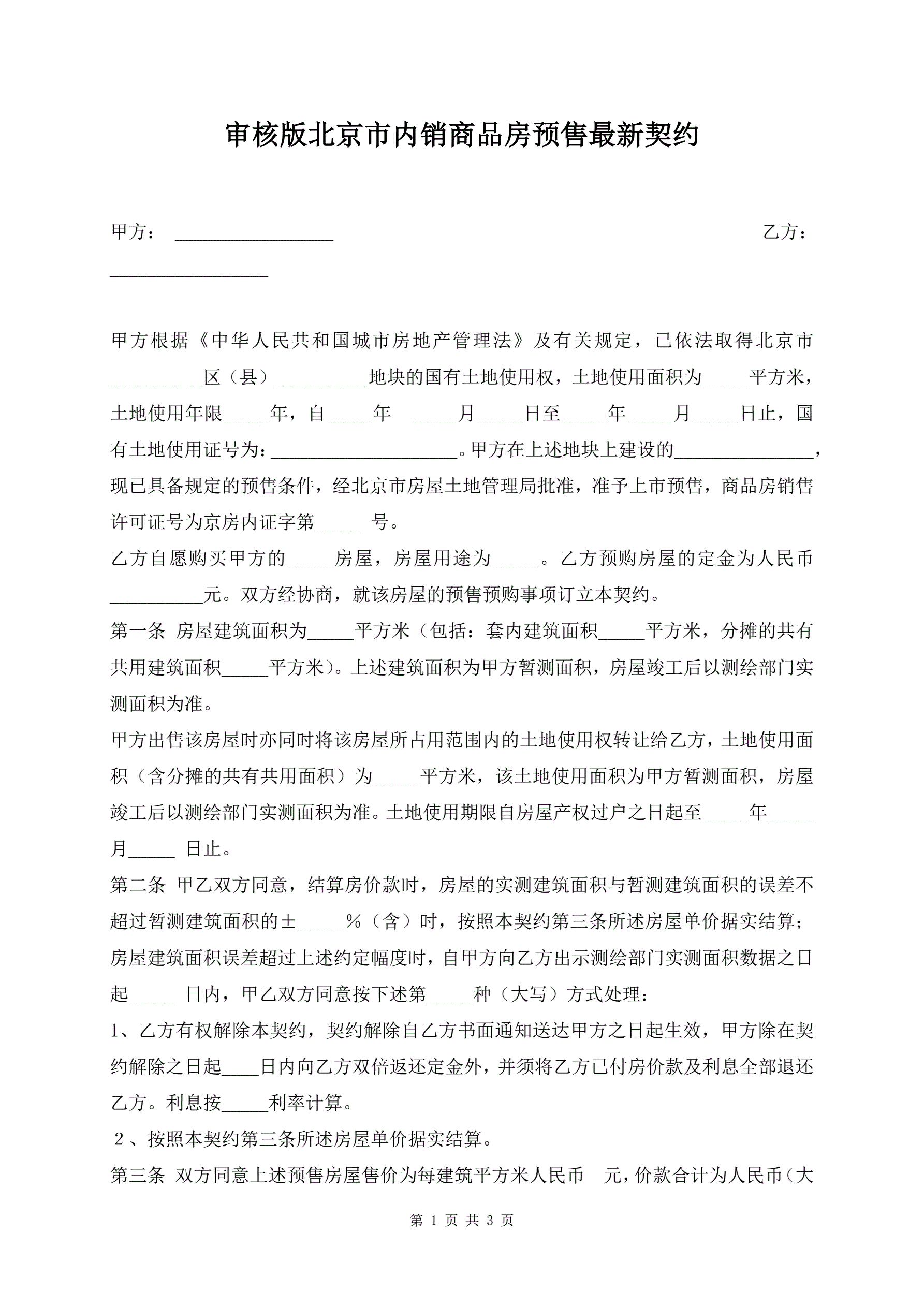 >审核版北京市内销商品房预售最新契约