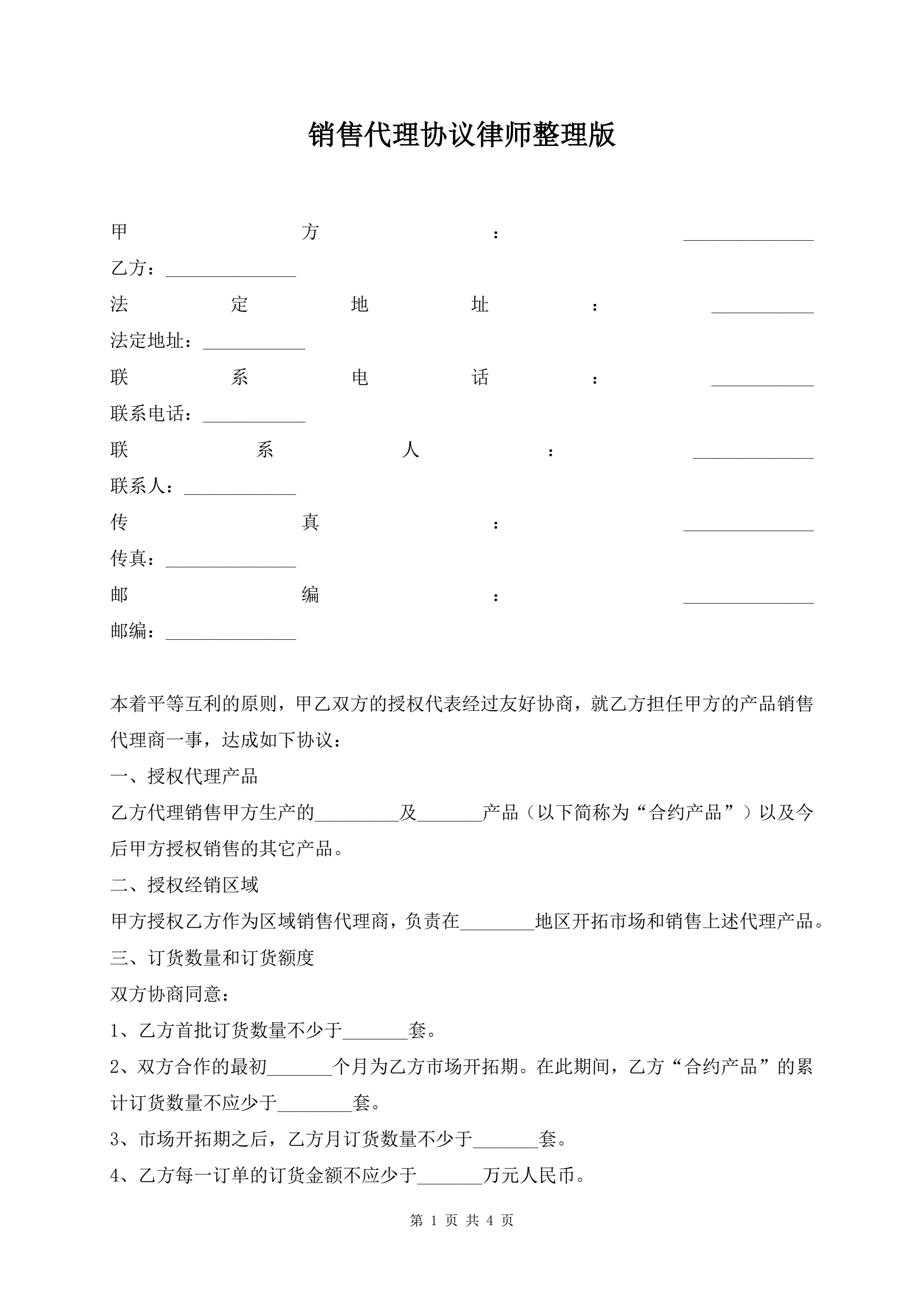 >销售代理协议律师整理版