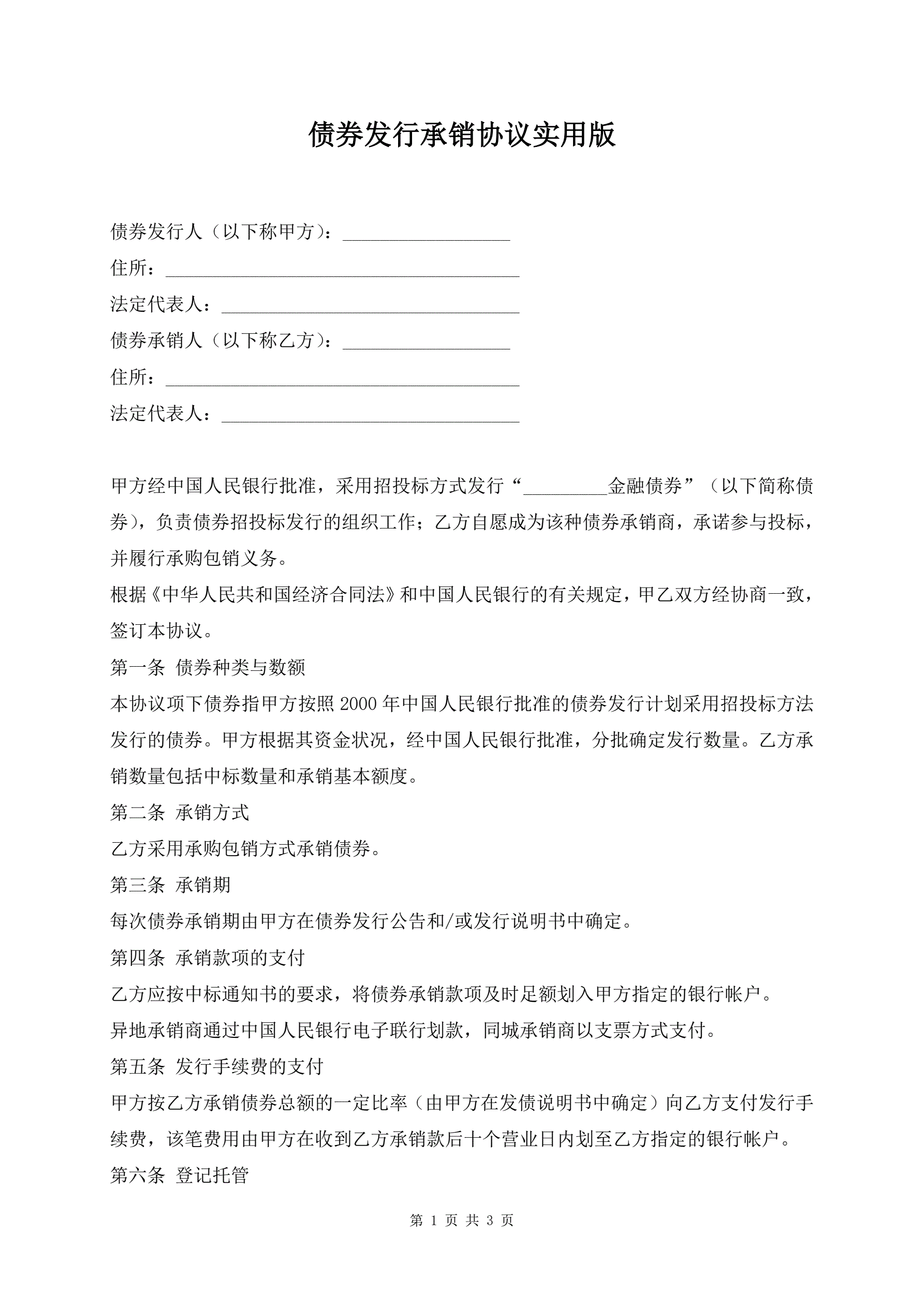>债券发行承销协议实用版