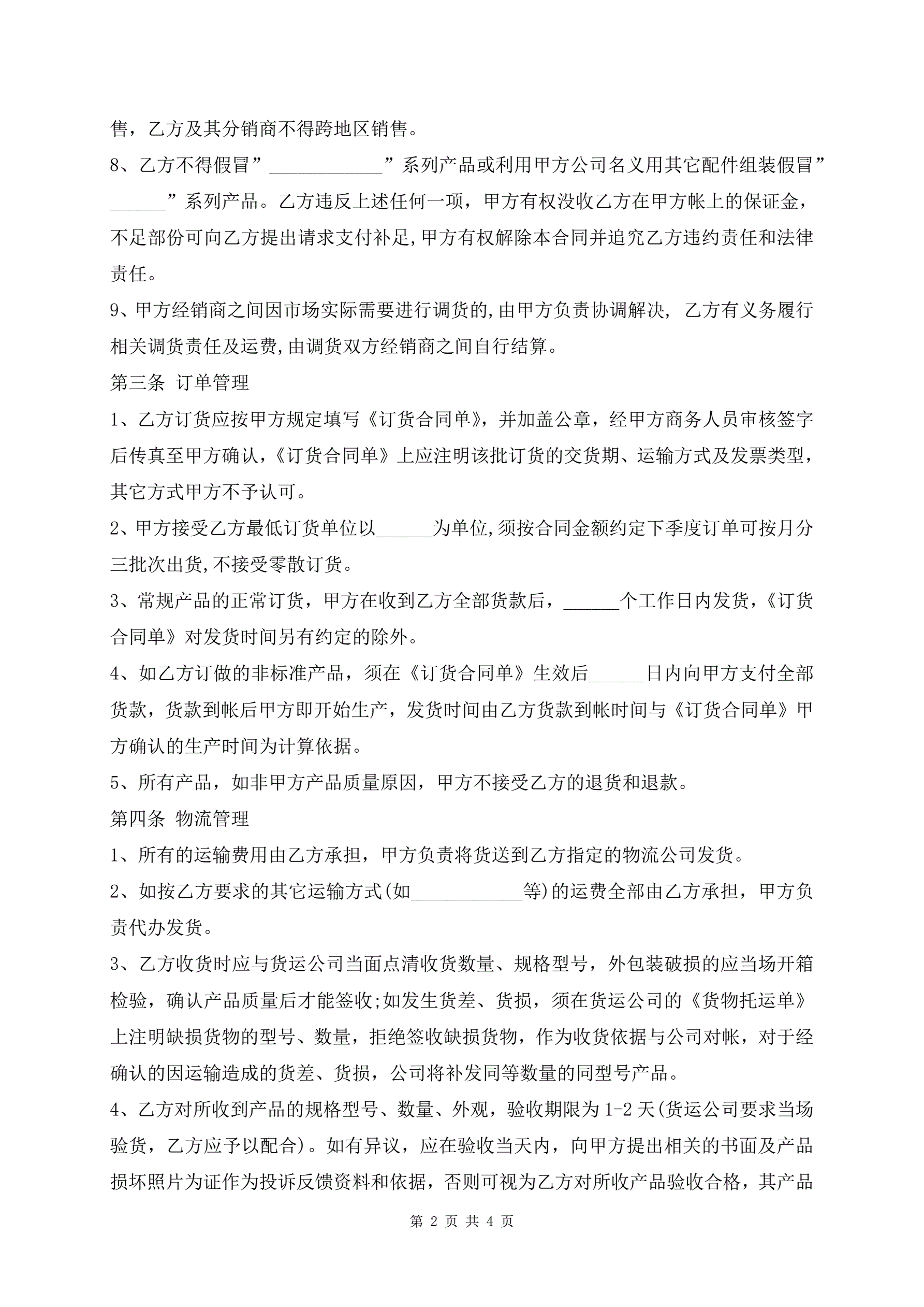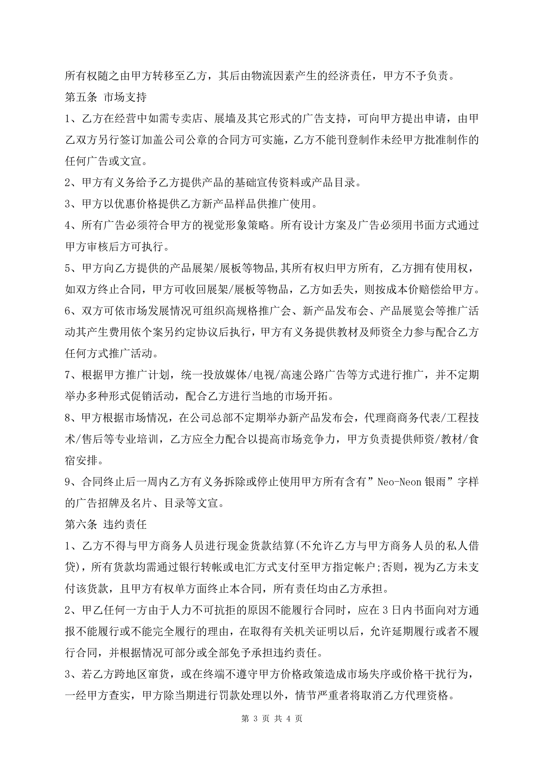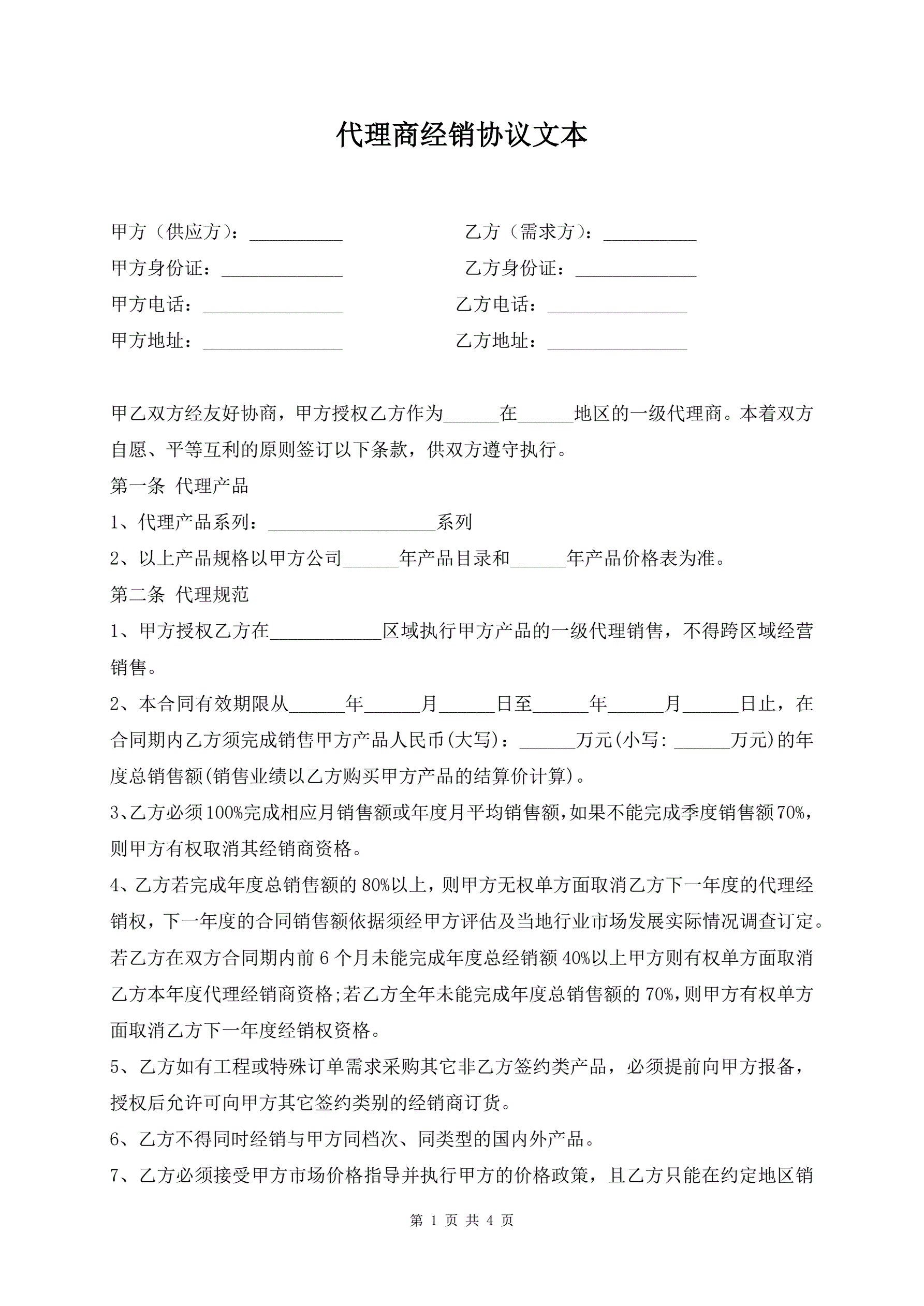 >代理商经销协议文本