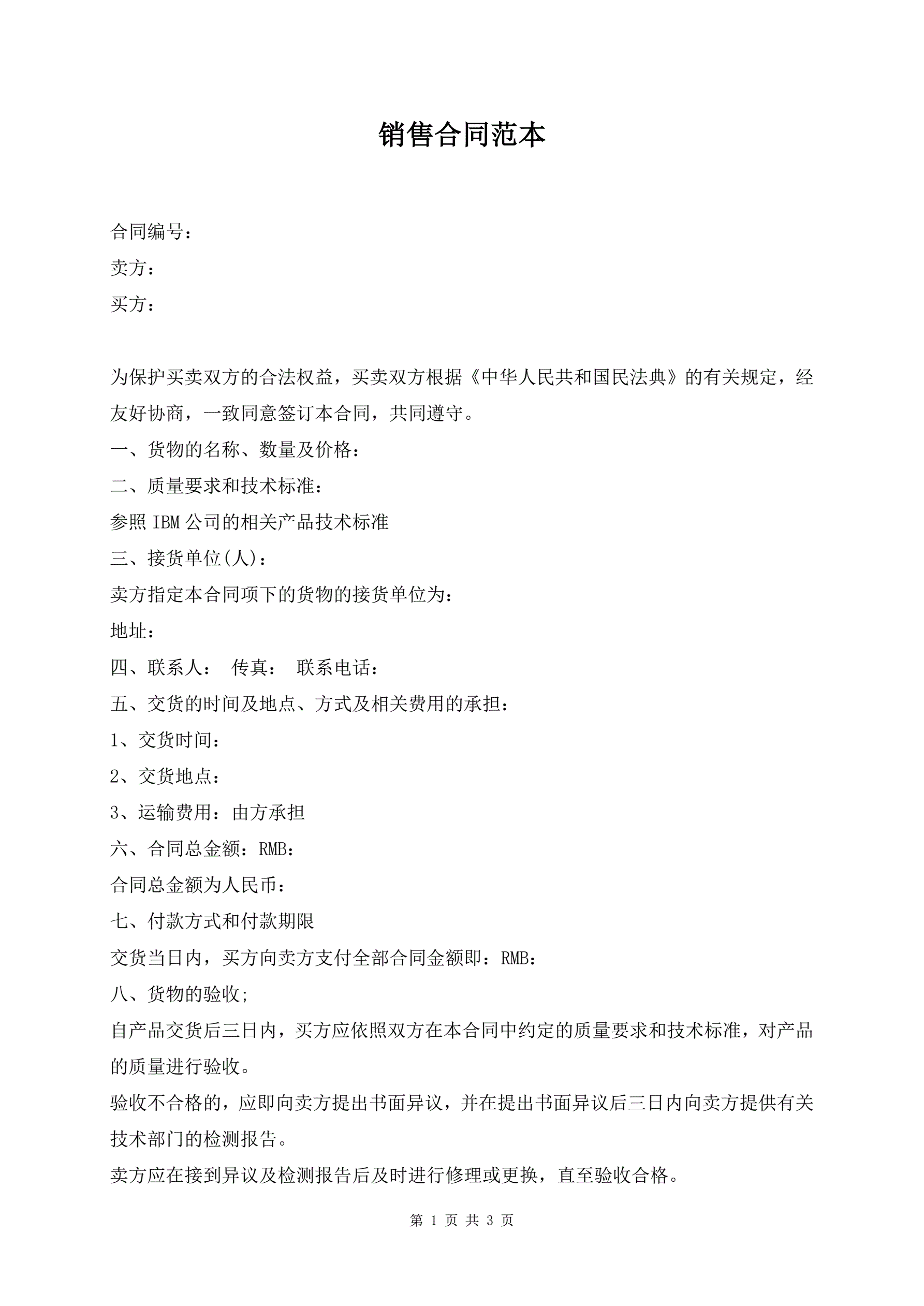 销售合同范本