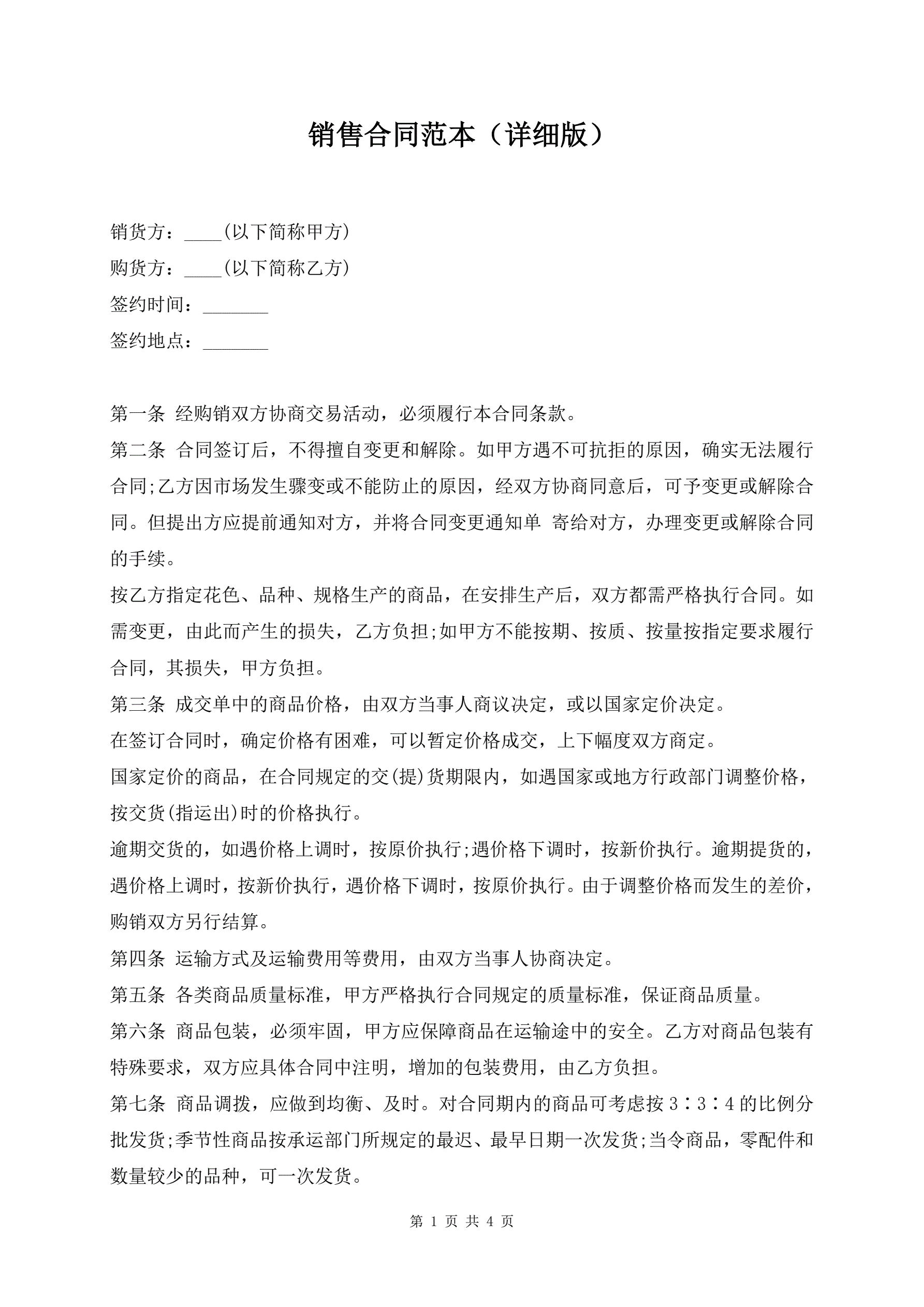 销售合同范本(详细版)