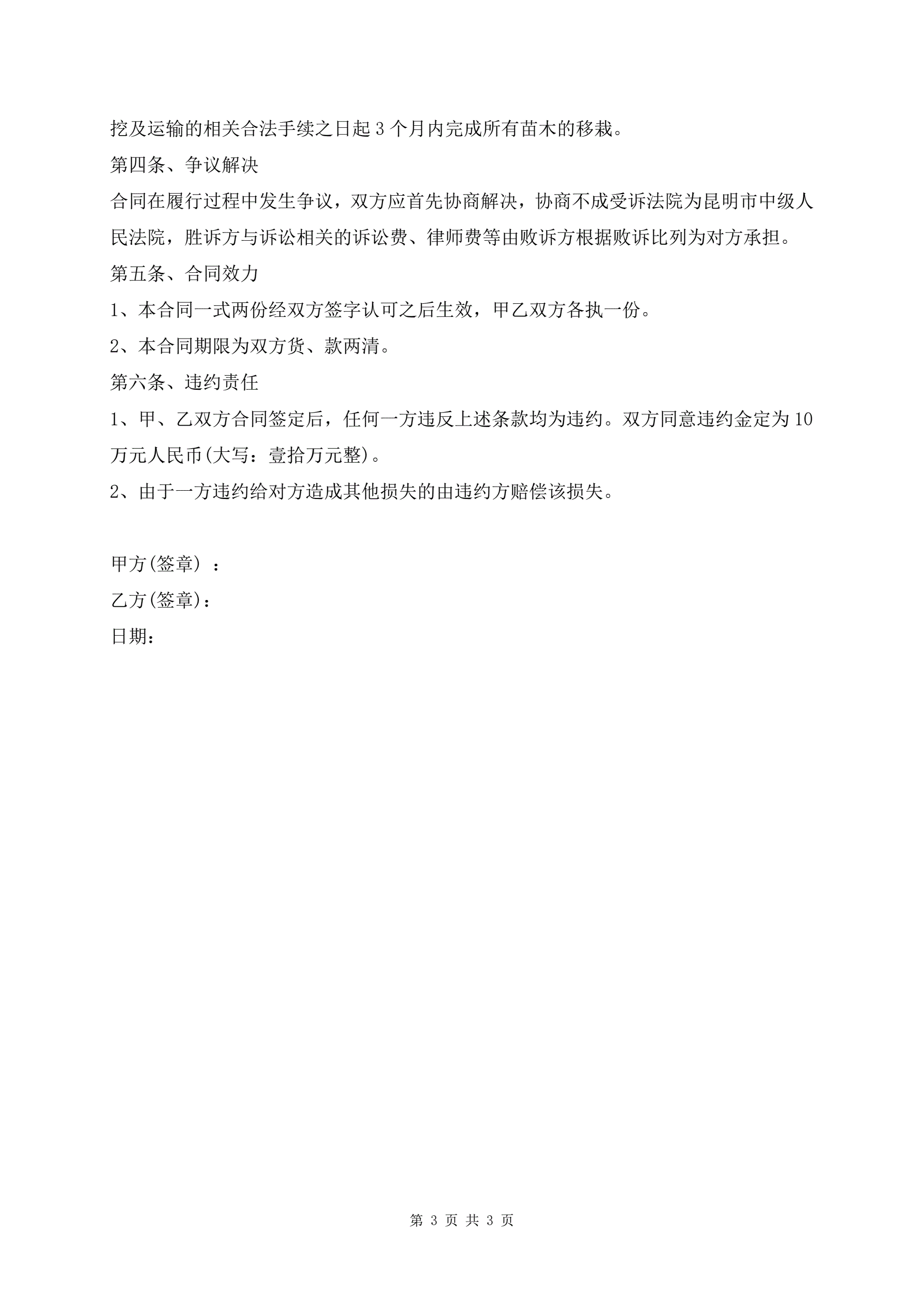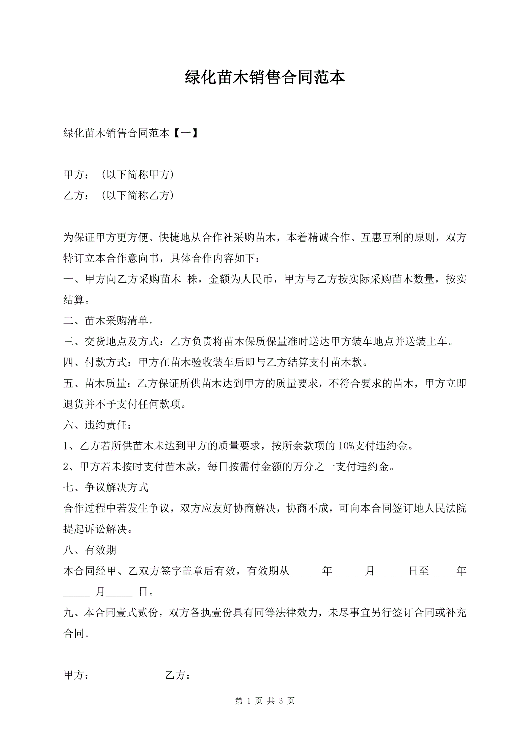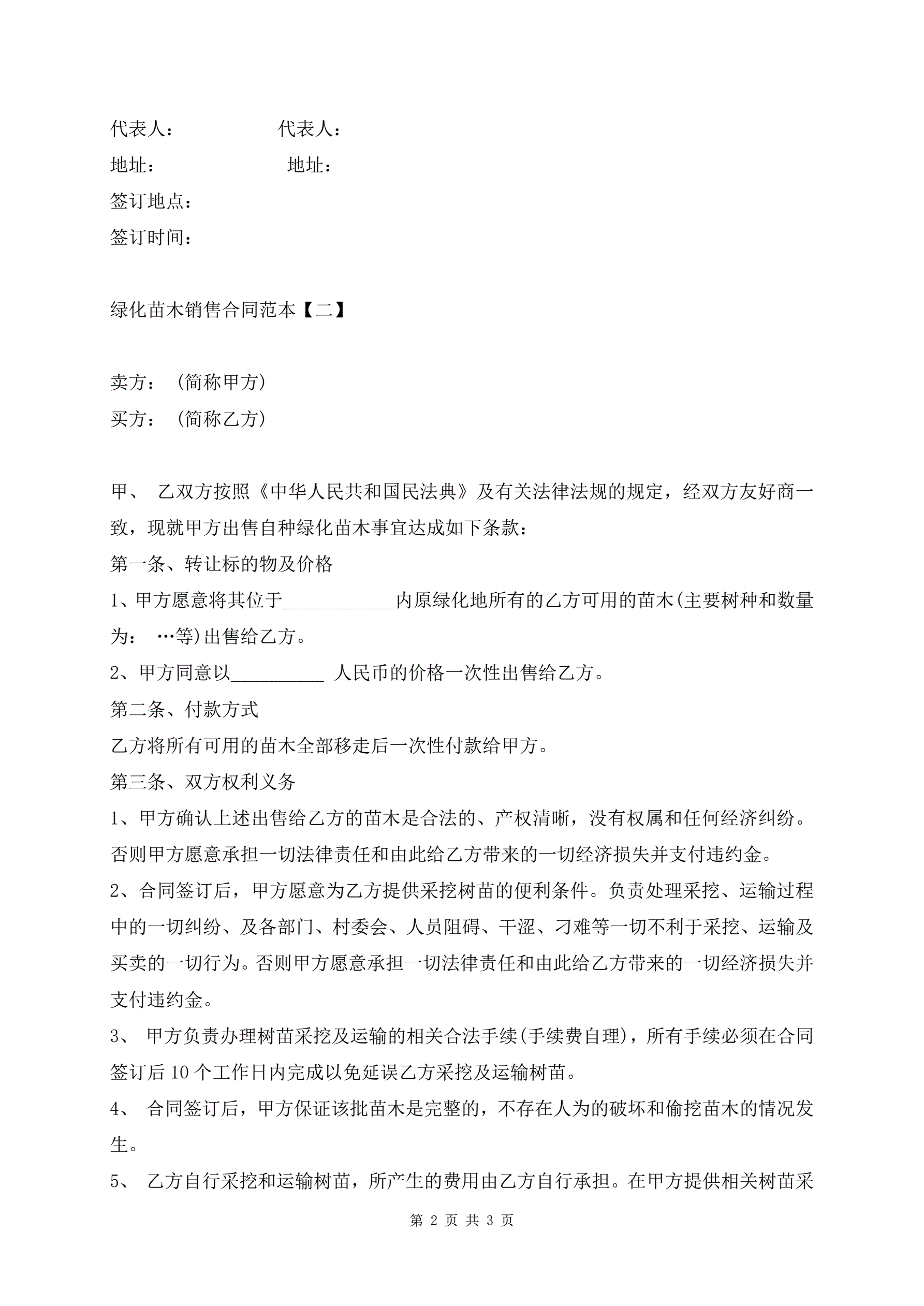 绿化苗木销售合同范本