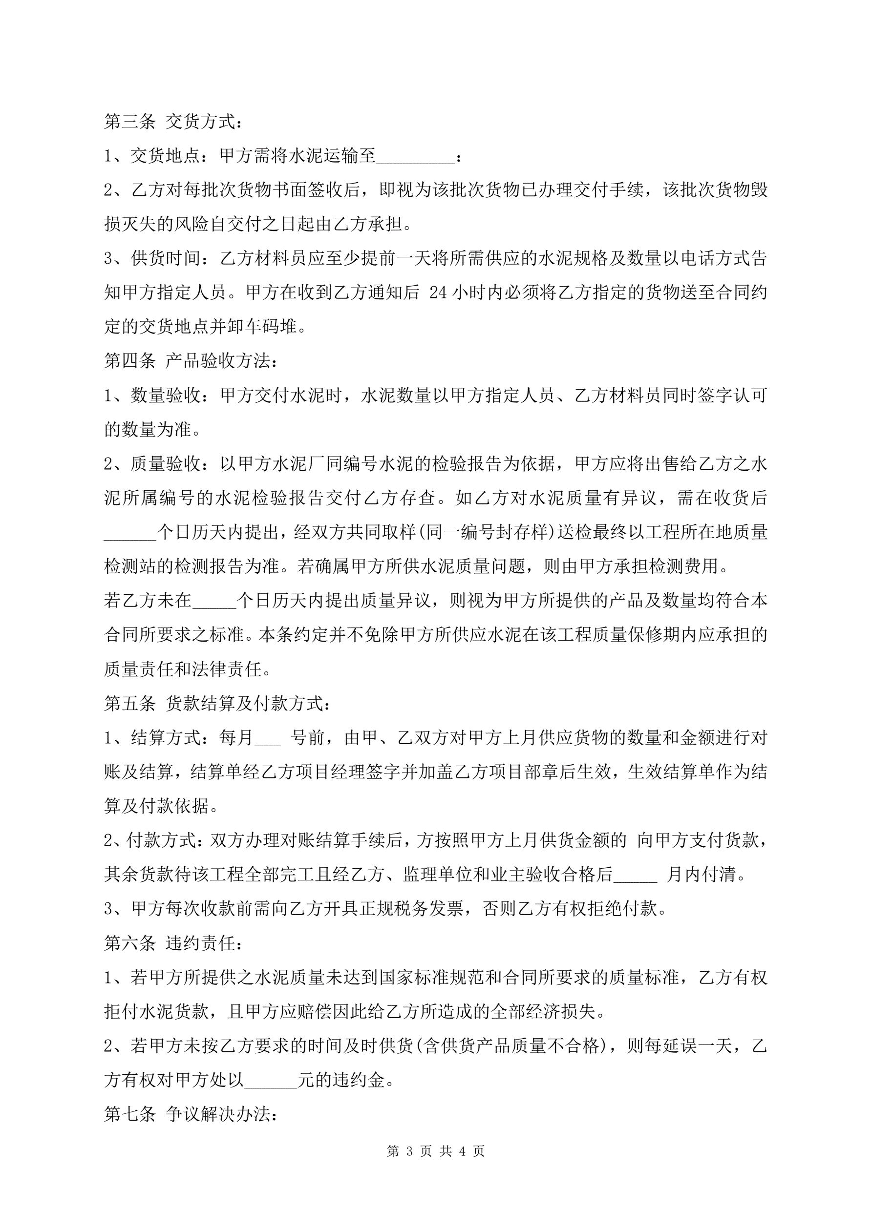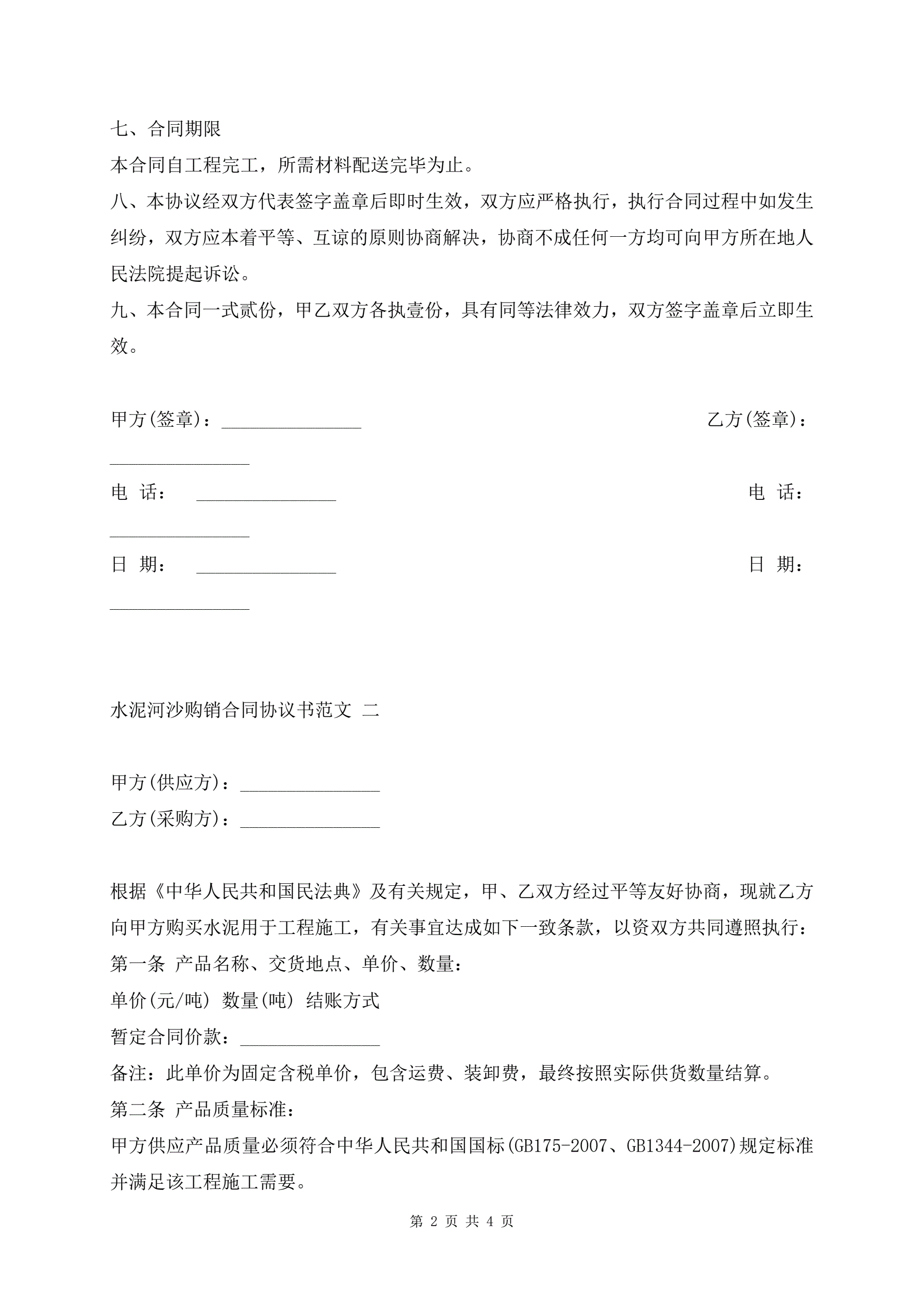 水泥河沙购销合同协议书范文