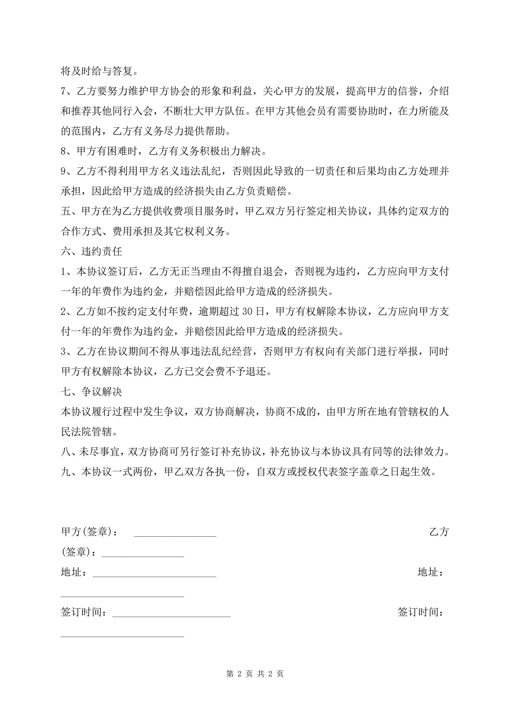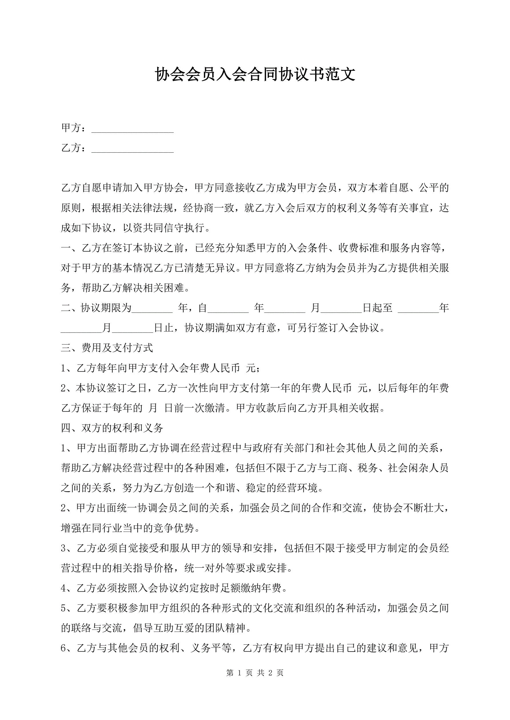 >协会会员入会合同协议书范文
