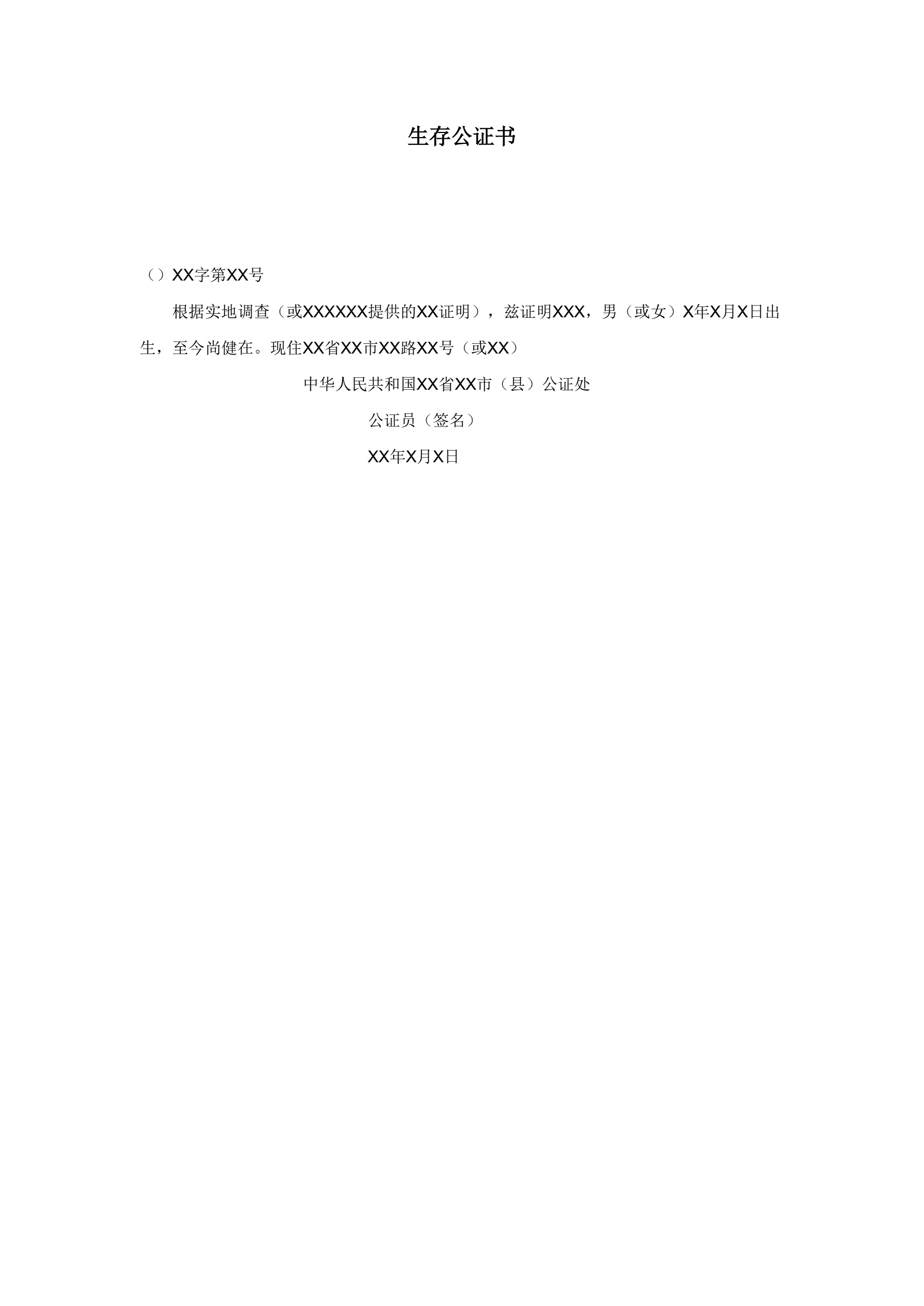 >生存公证书