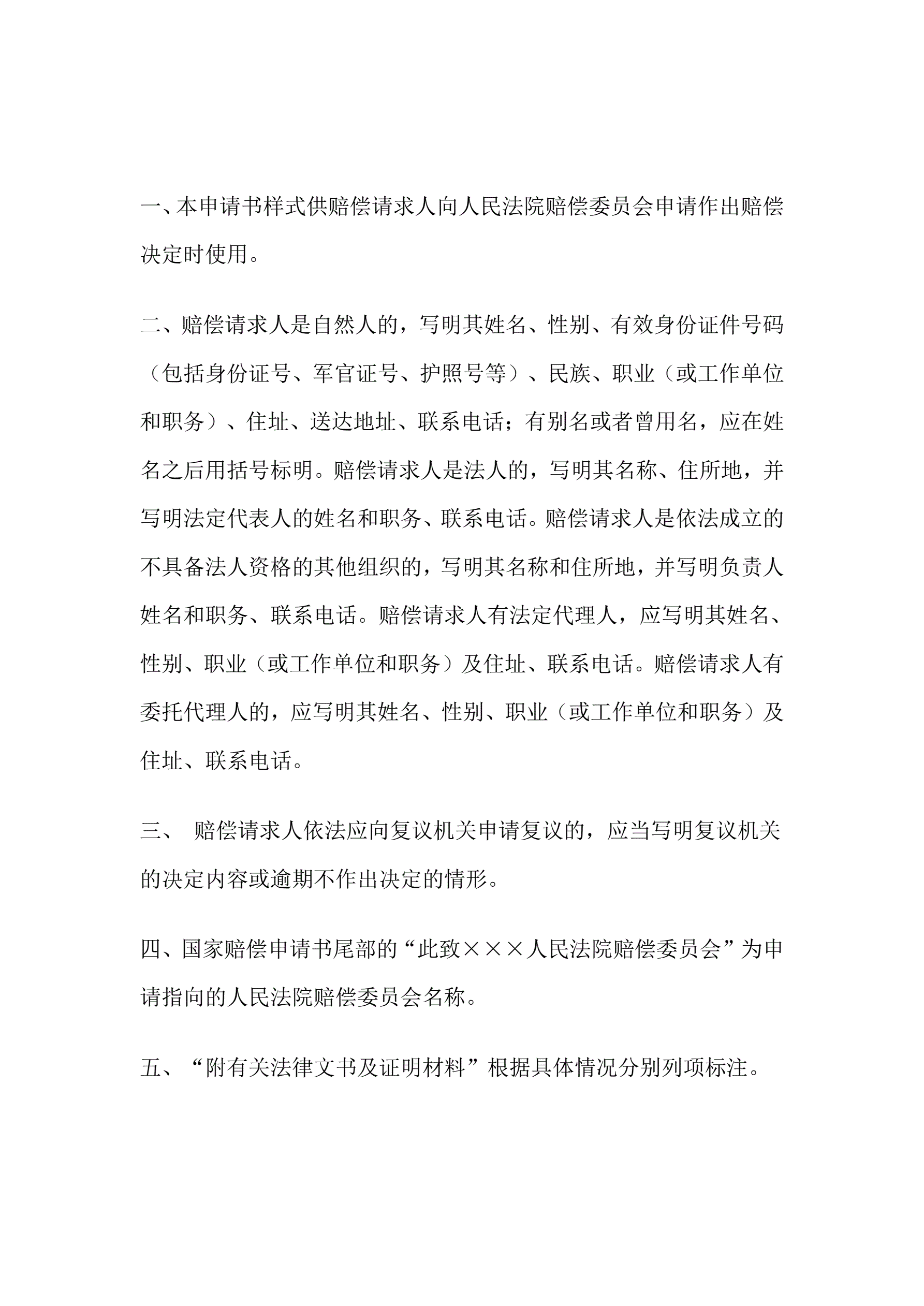 国家赔偿申请书(向人民法院赔偿委员会申请国家赔偿用)