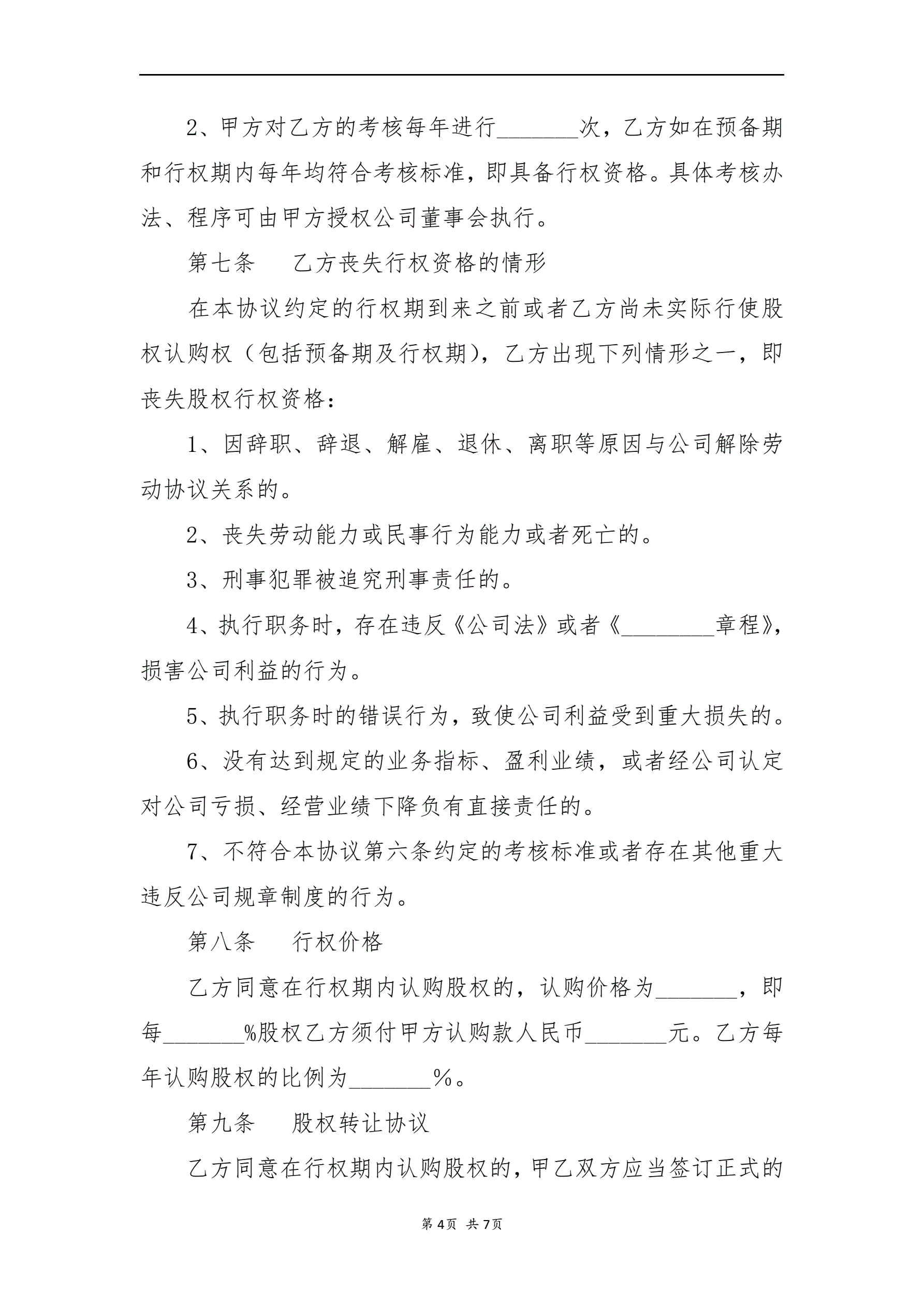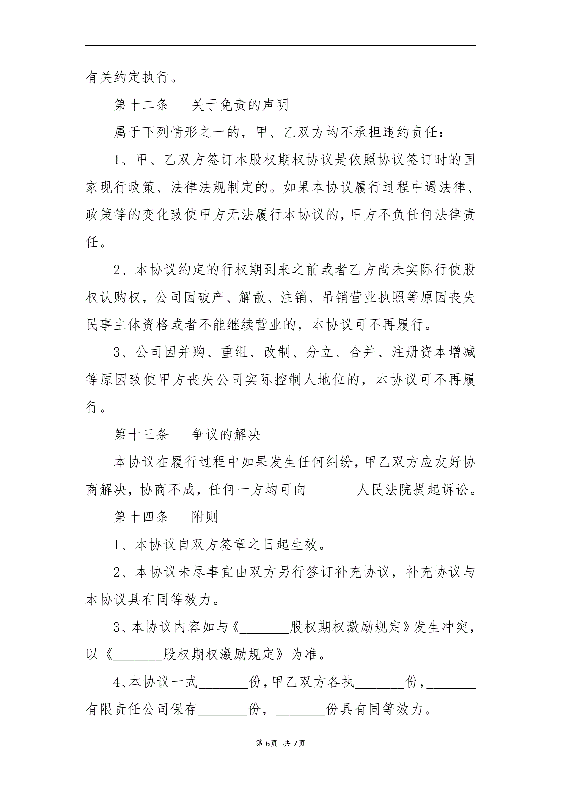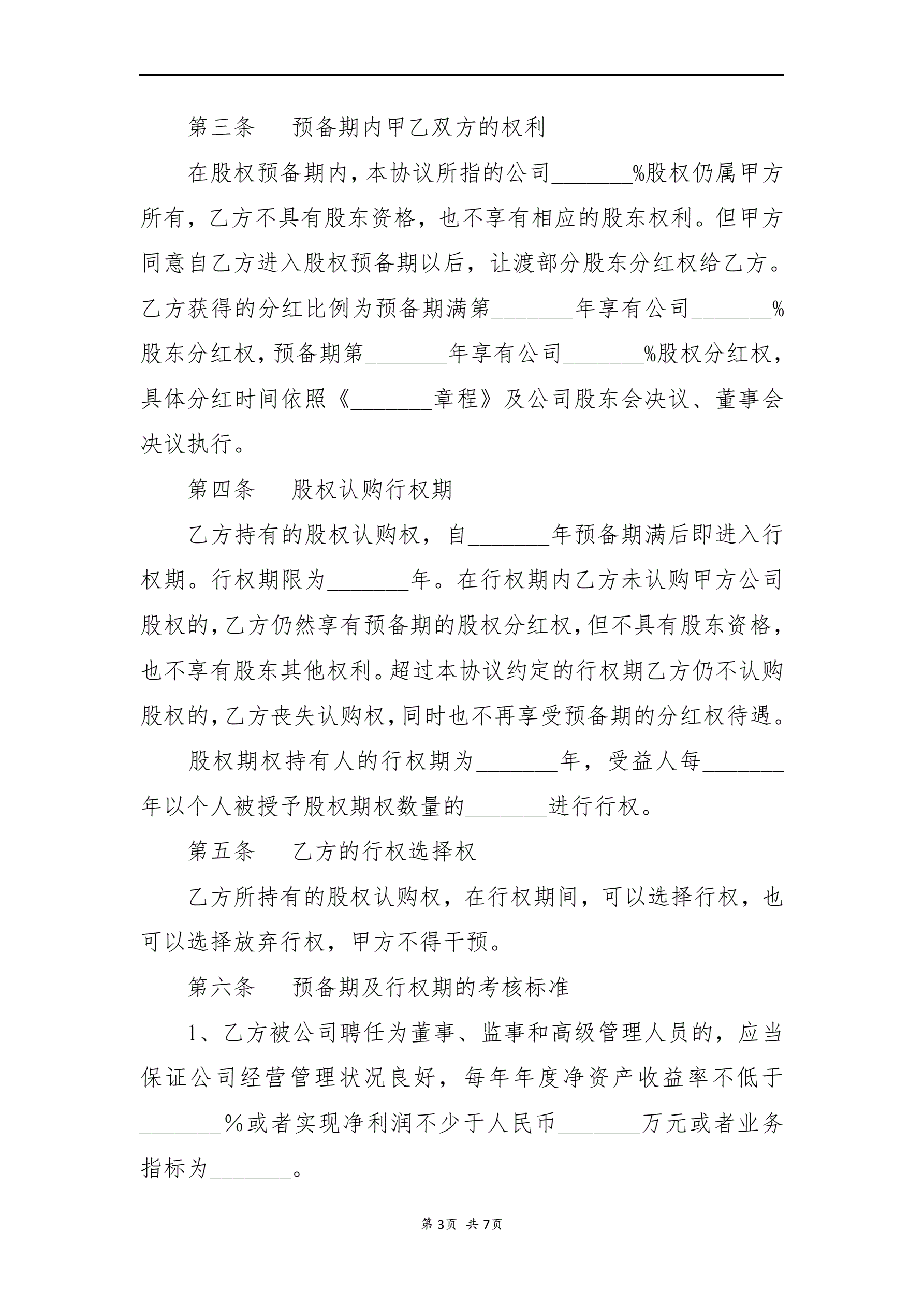 股权激励协议书(期权)(指导版)