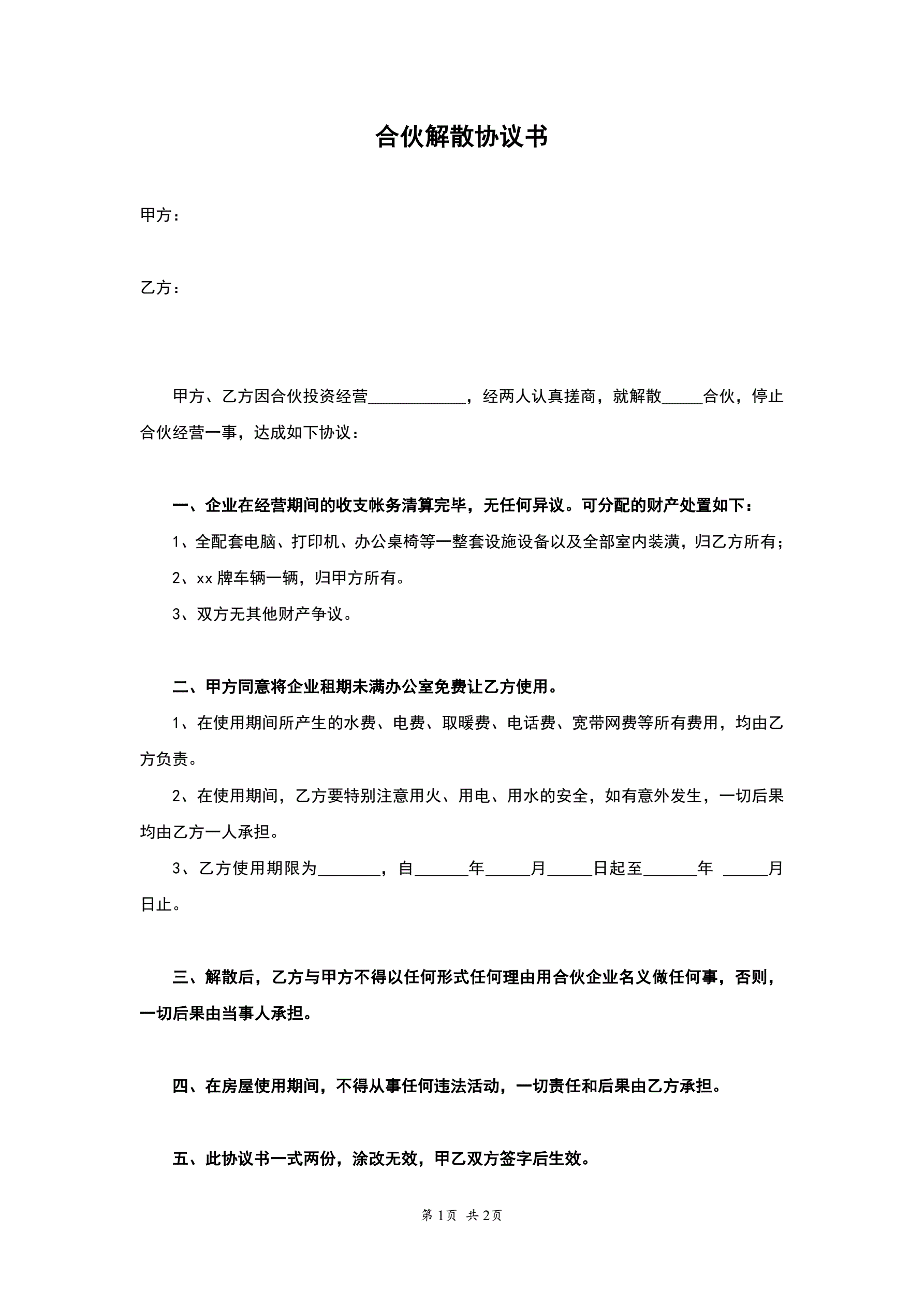 合伙解散协议书(指导版)