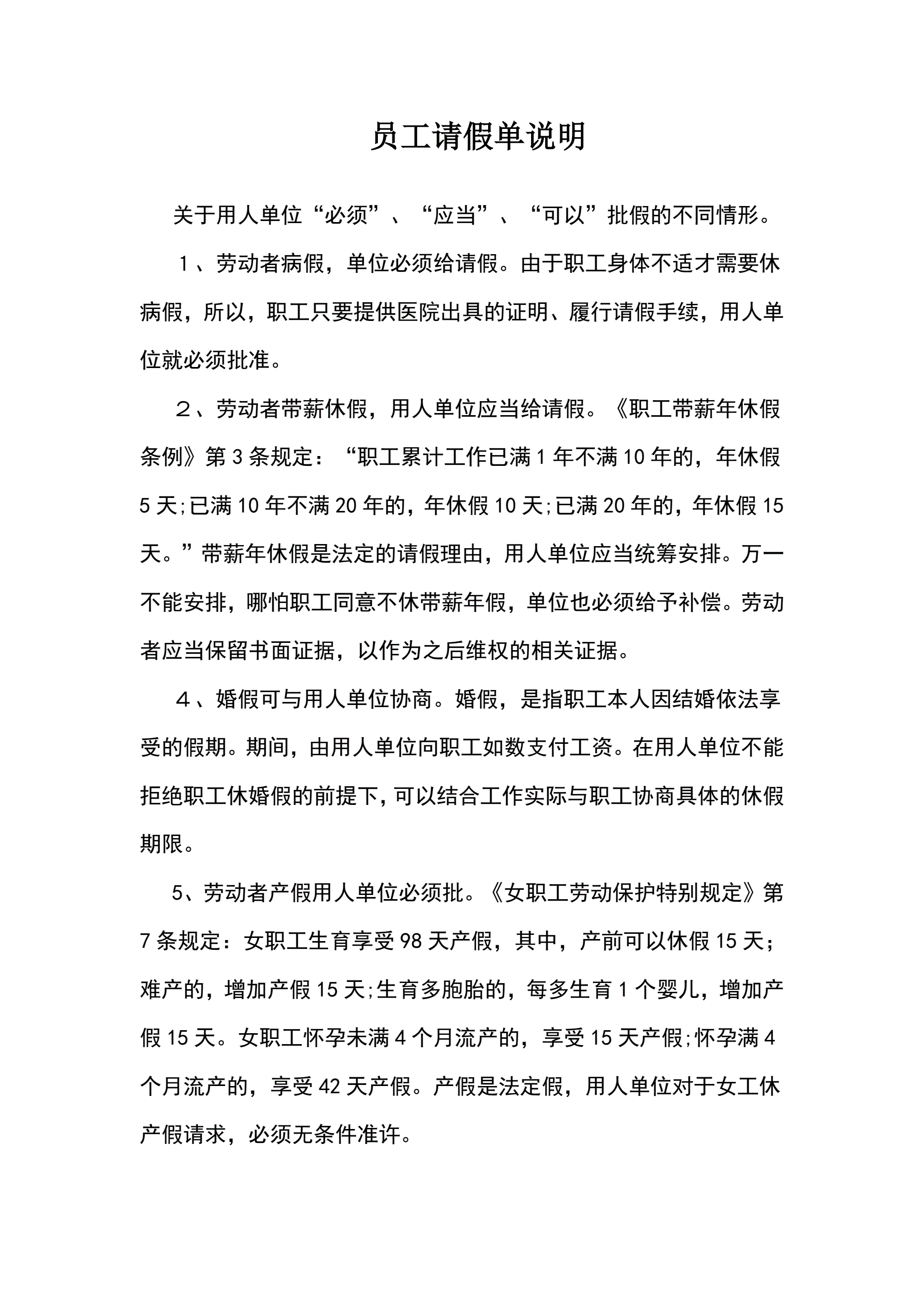 员工请假单说明(指导版)