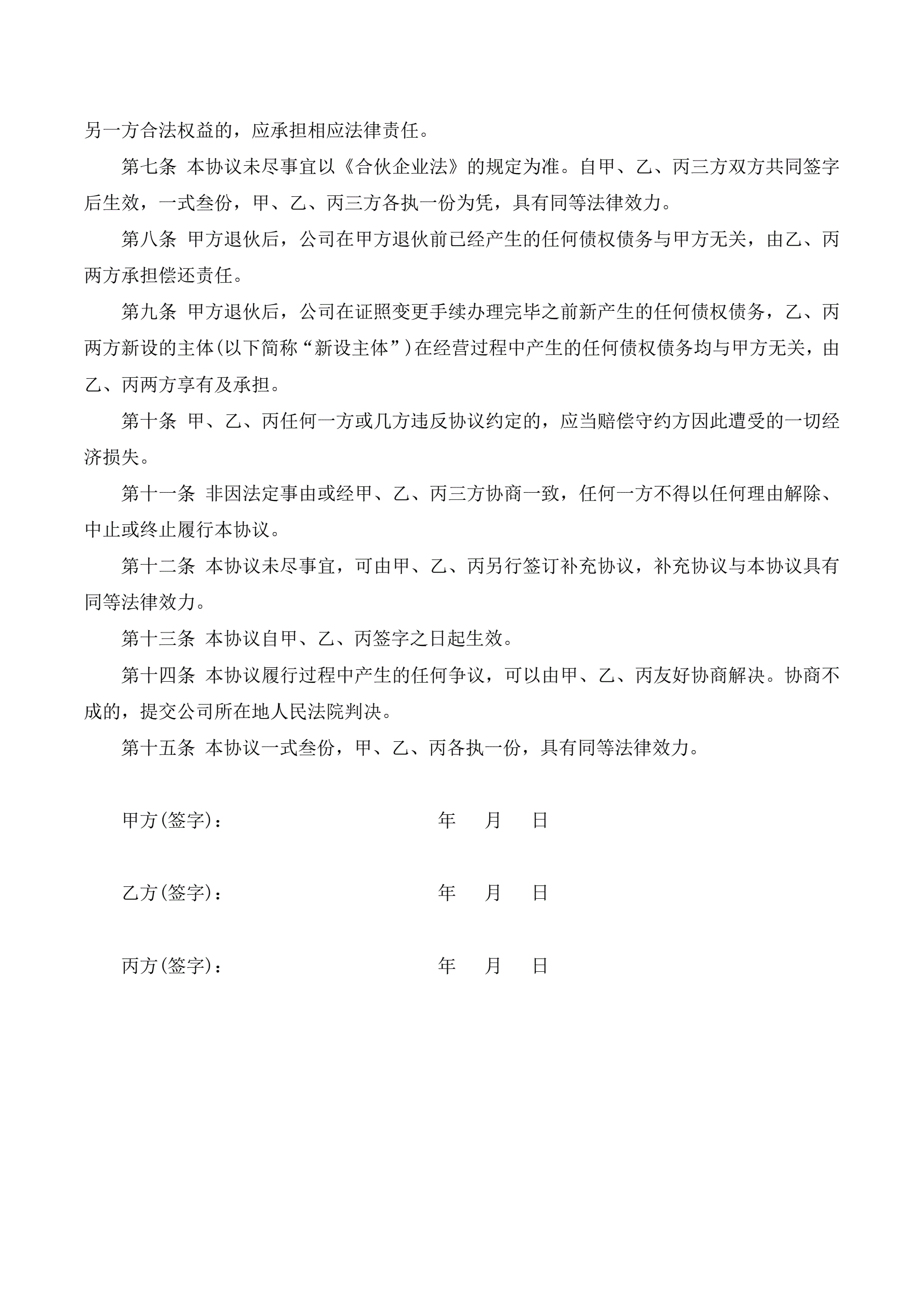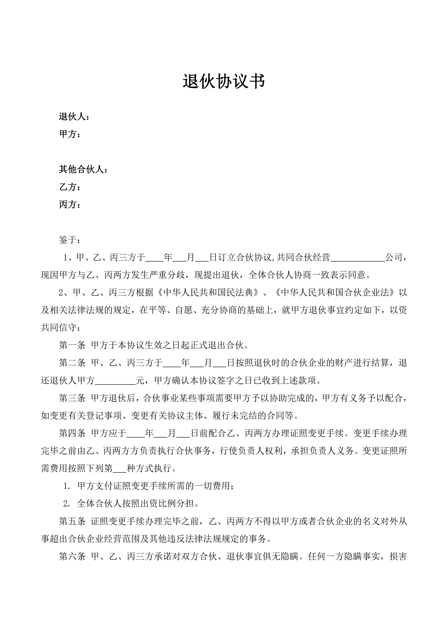 合伙人退伙协议书(指导版)