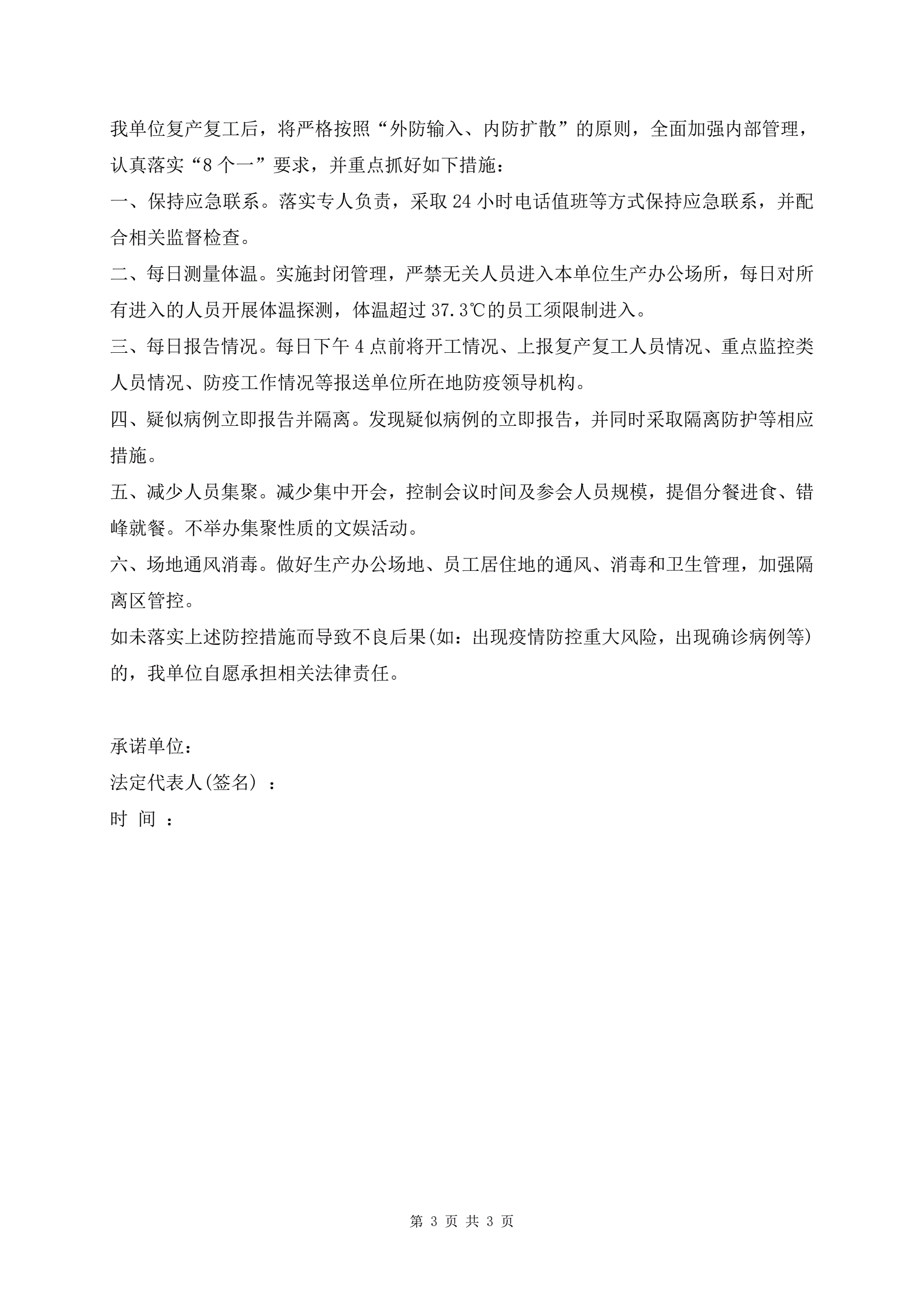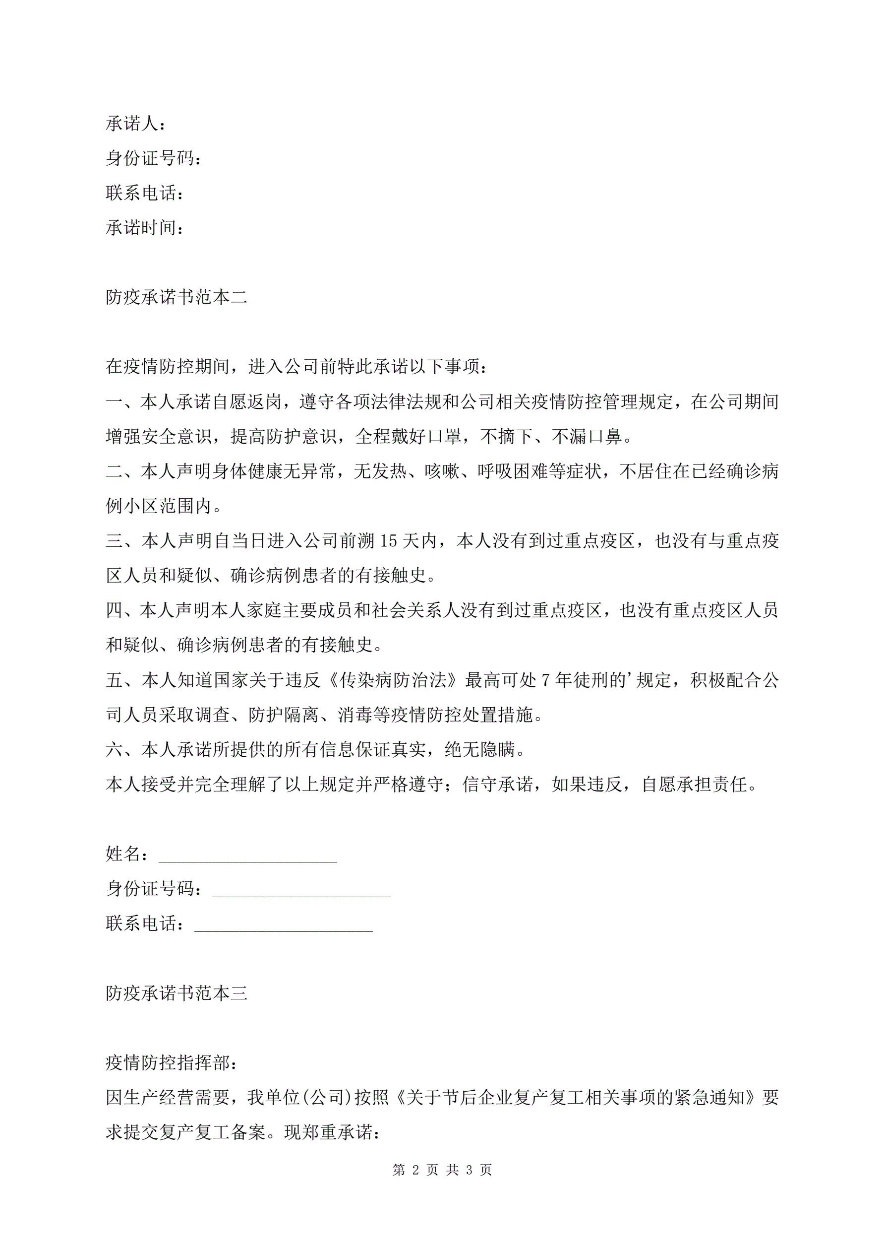 >防疫承诺书范本