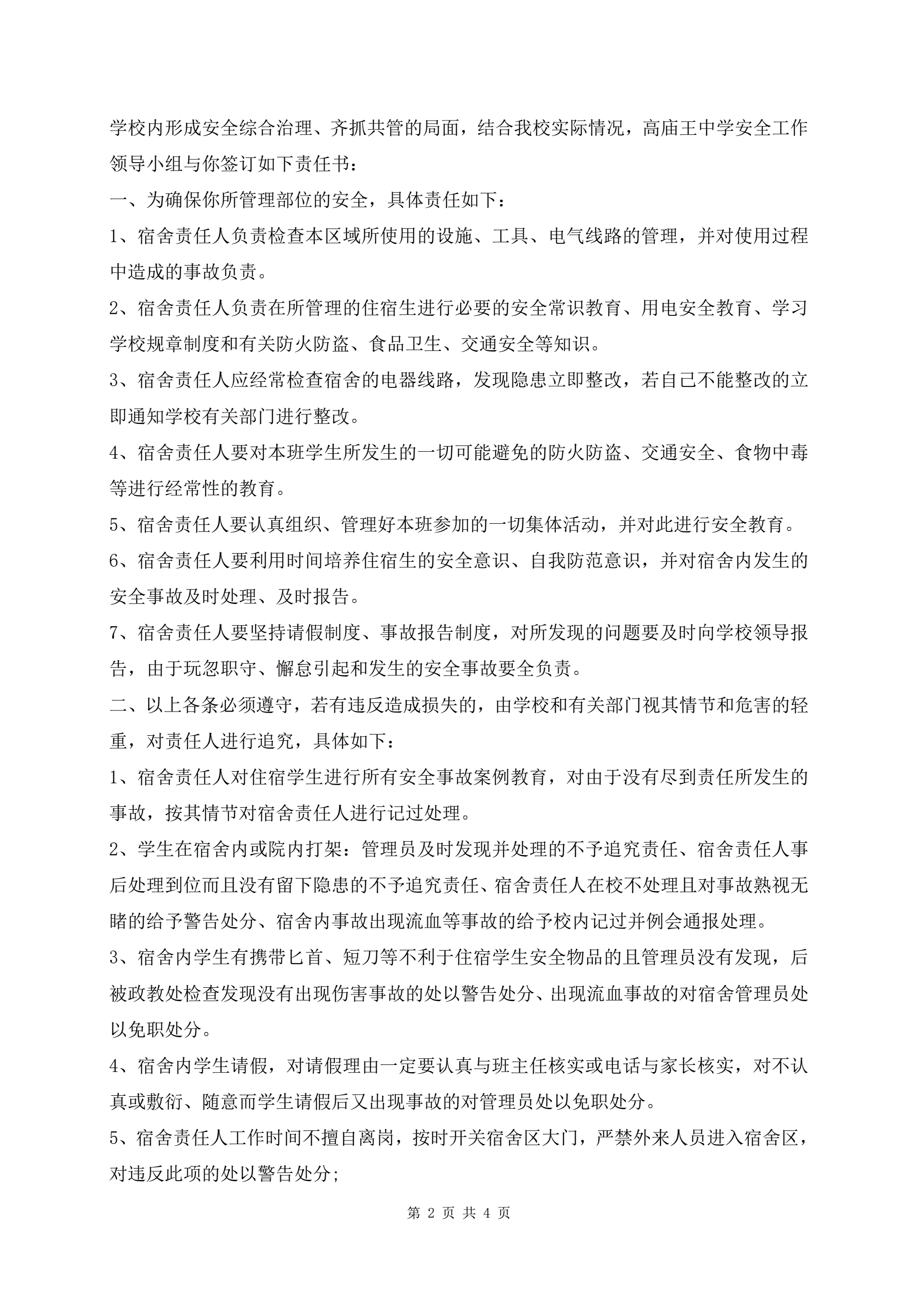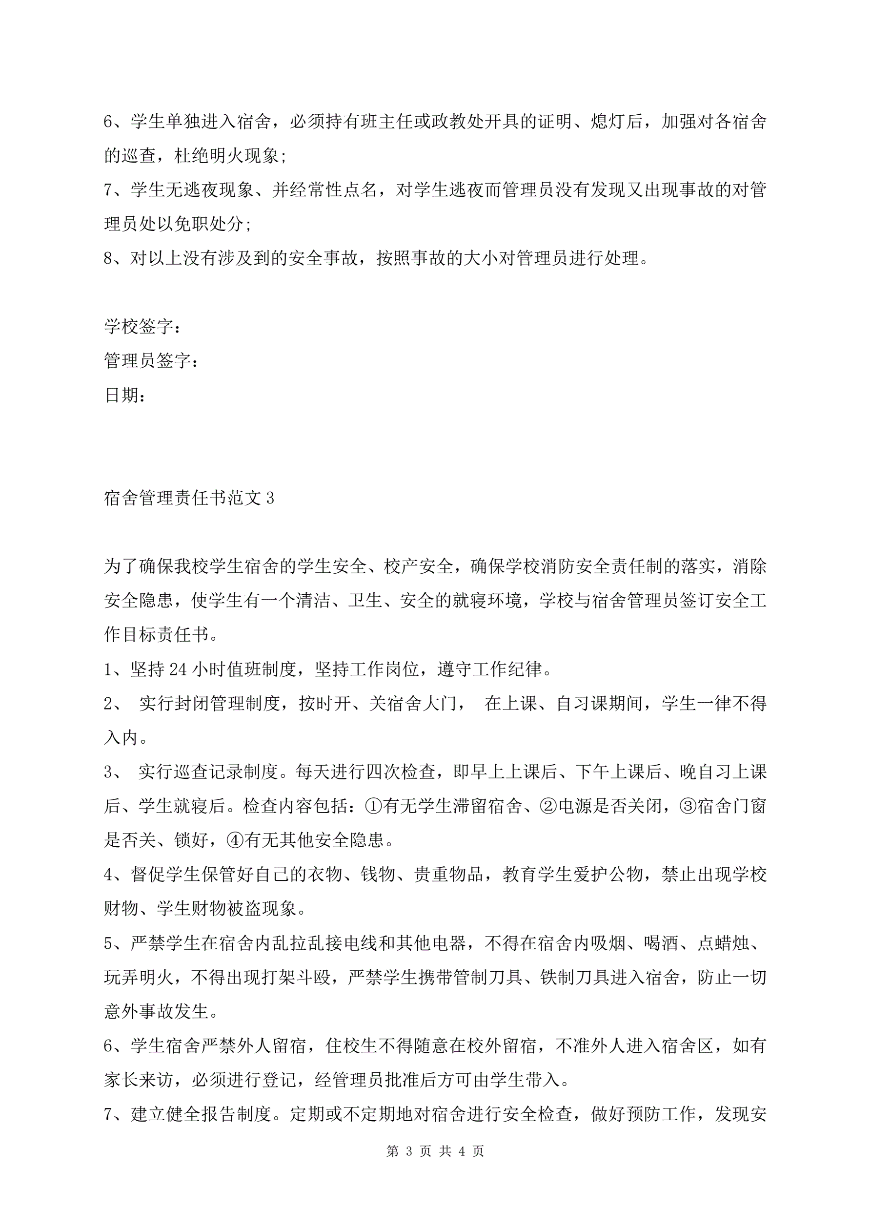 >宿舍管理责任书范文