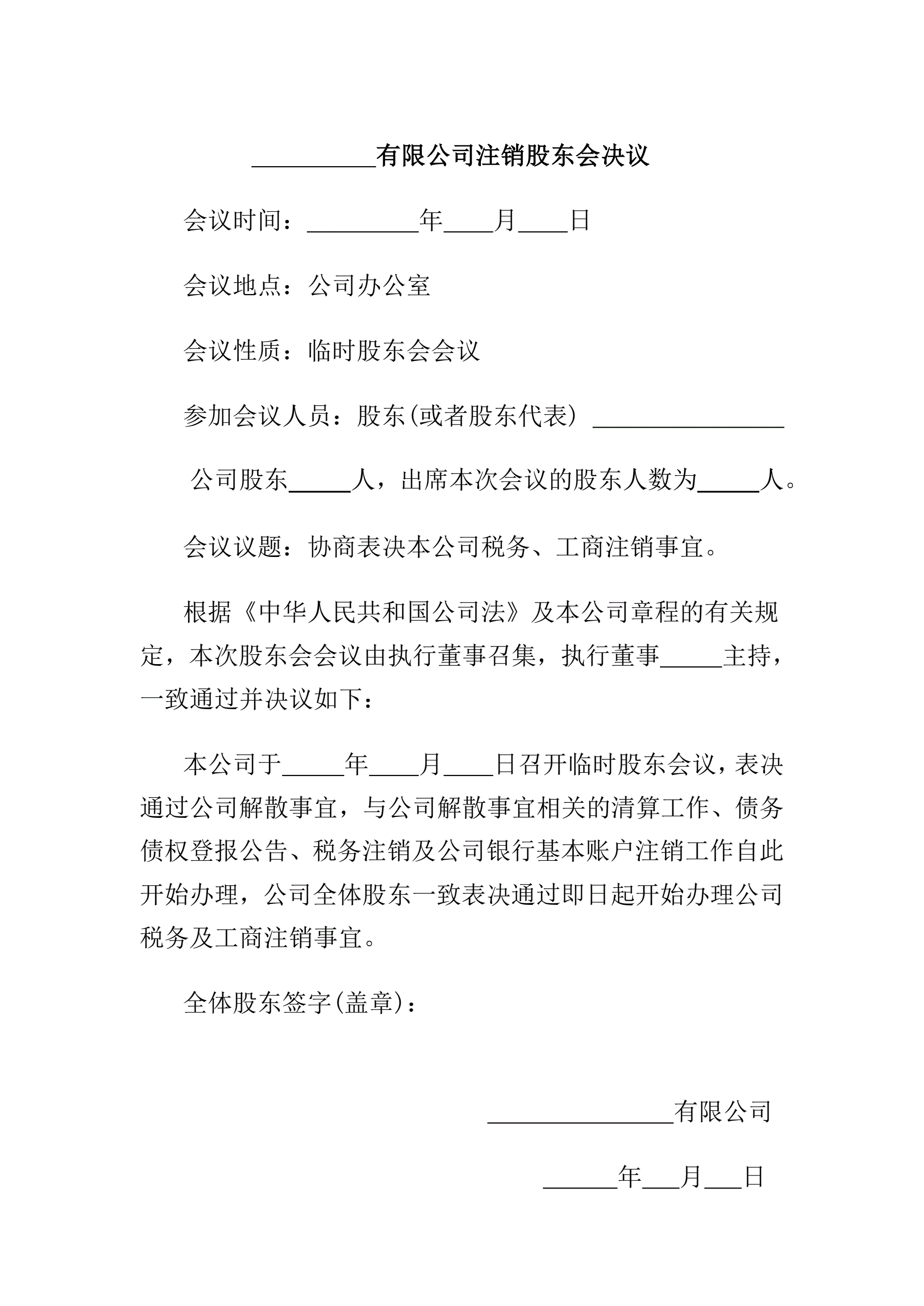 公司注销决议(指导版)