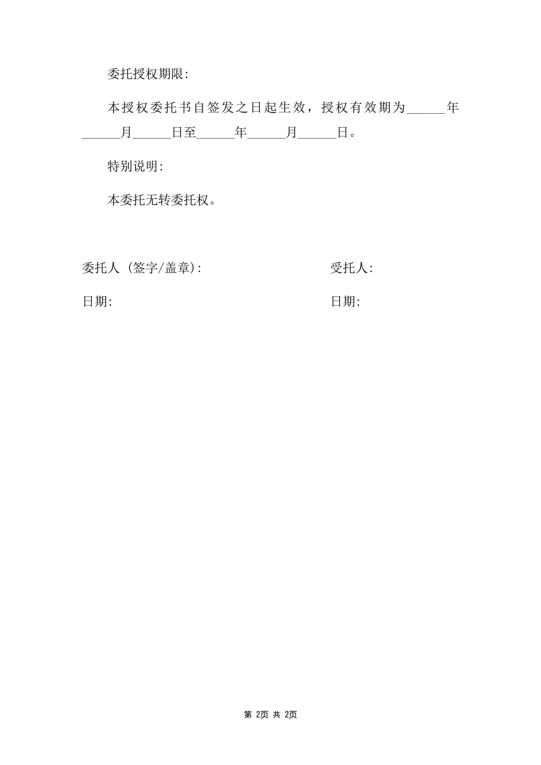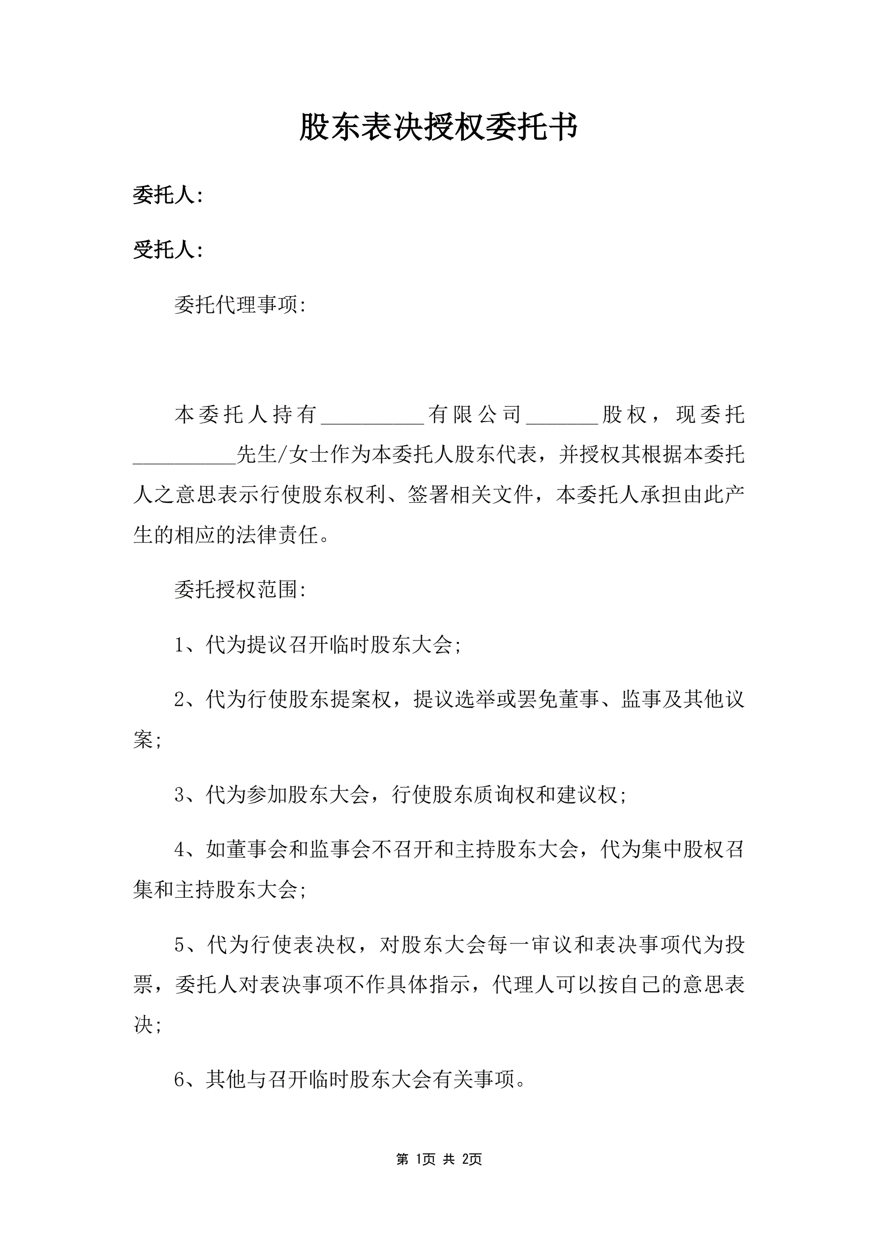 股东表决授权委托书(指导版)