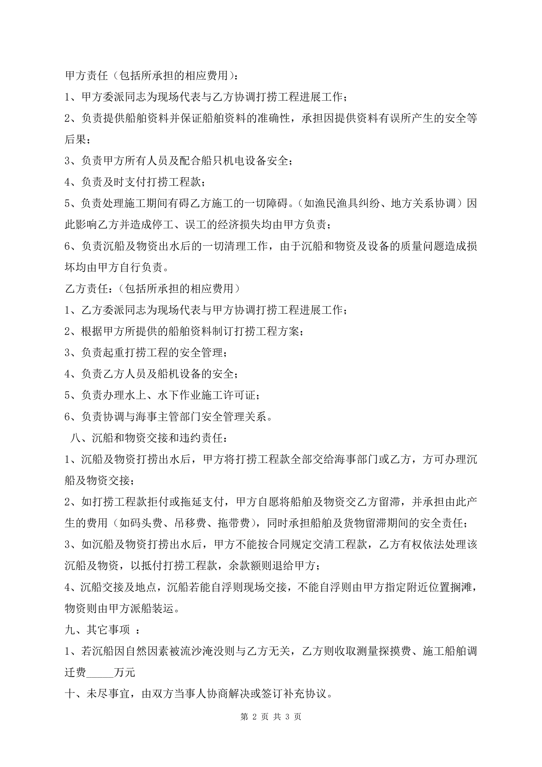 打捞合同样本