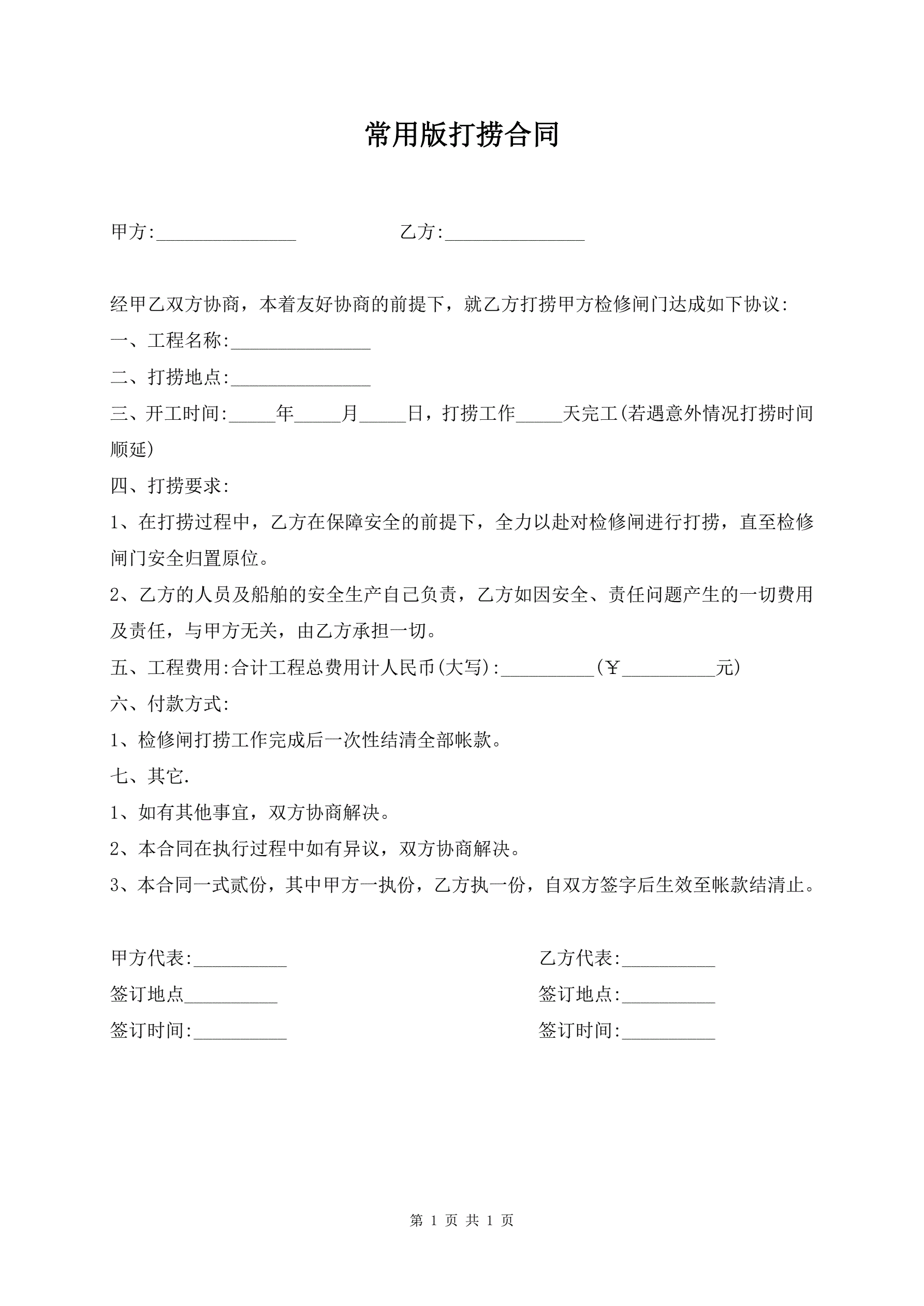 常用版打捞合同
