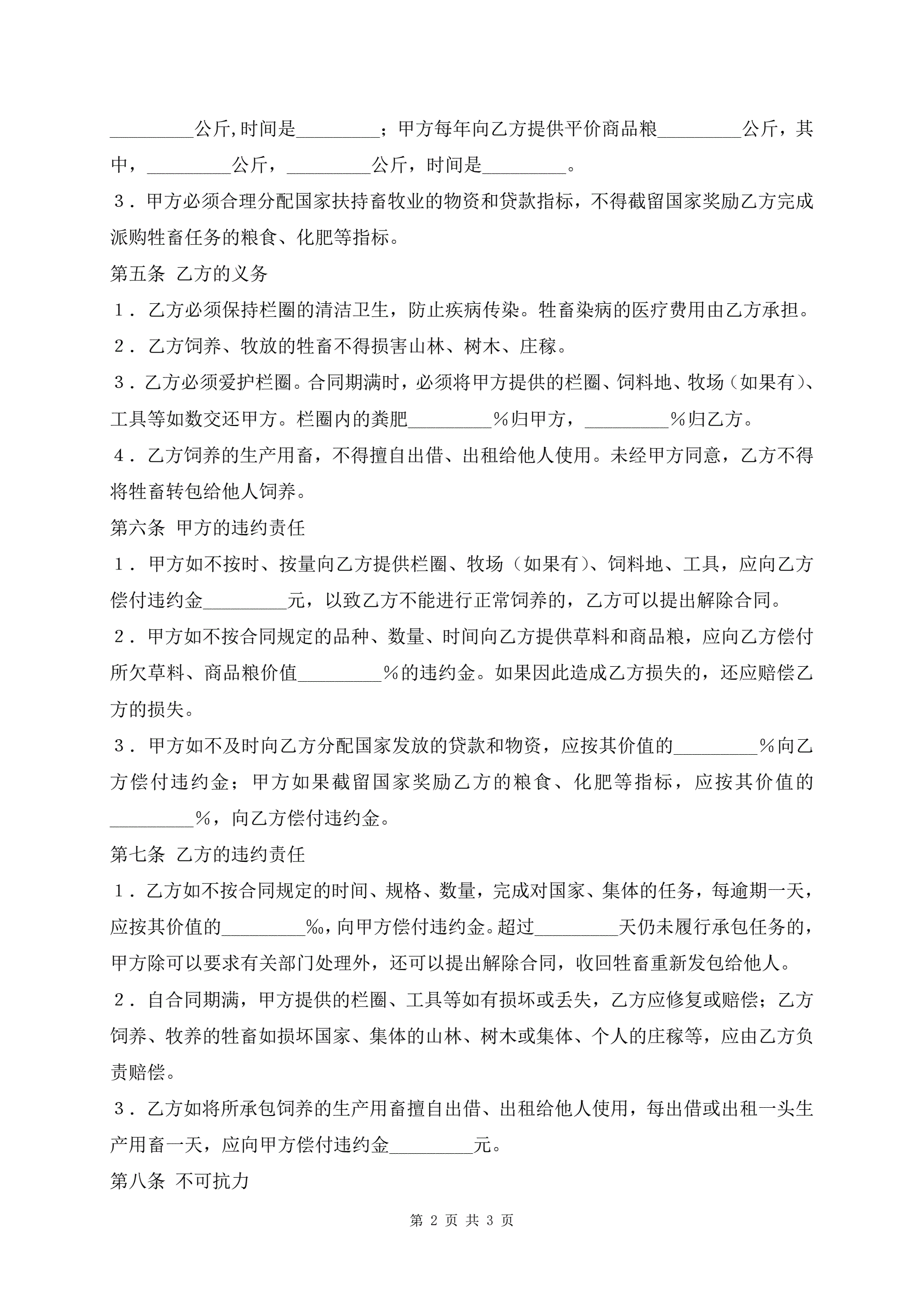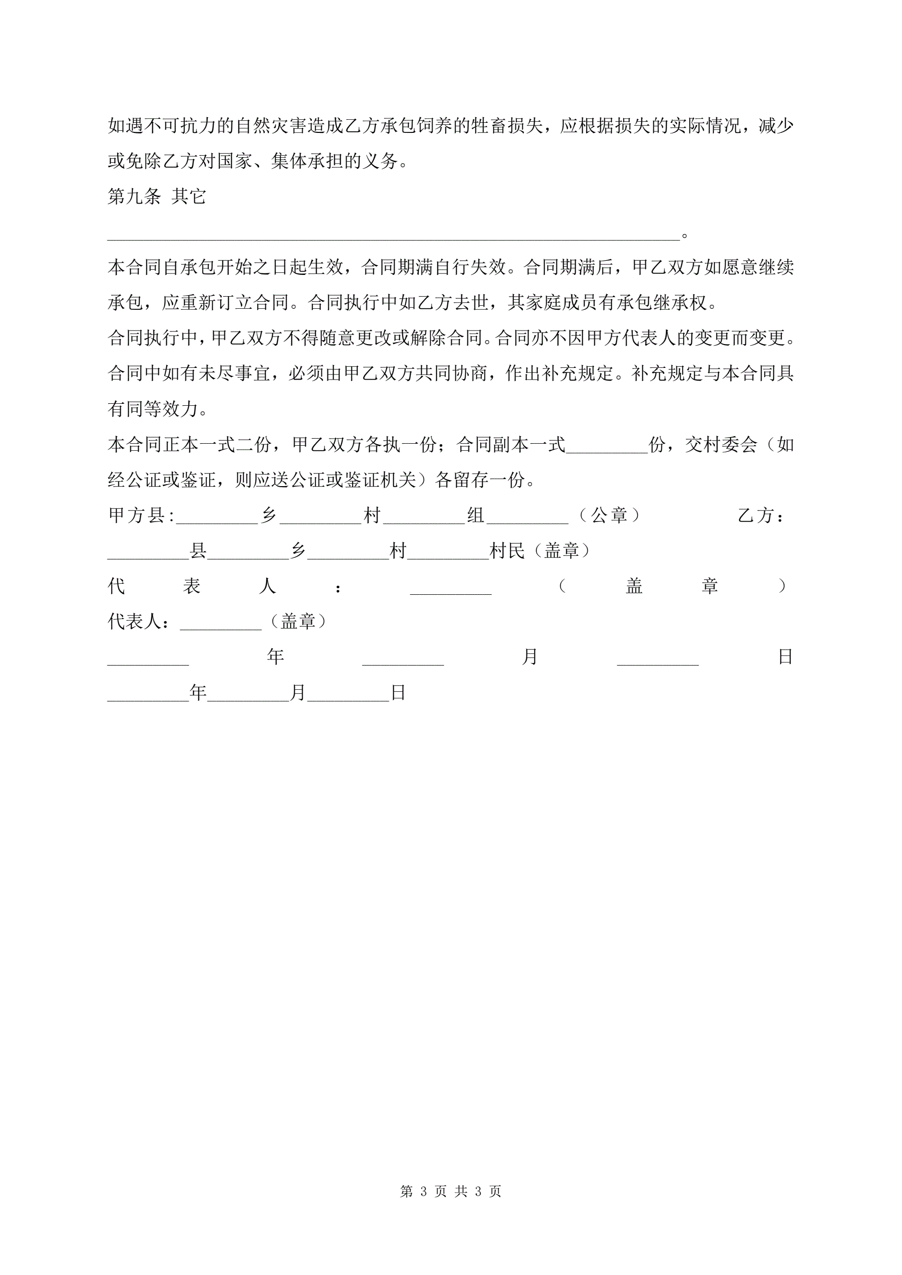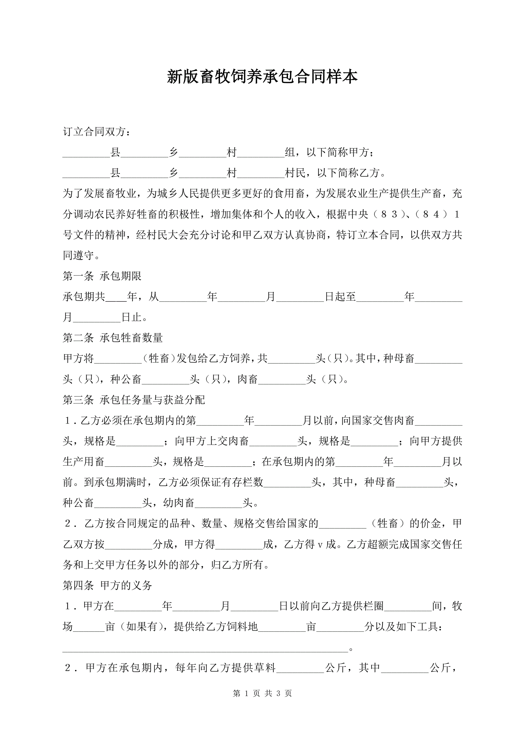 >新版畜牧饲养承包合同样本