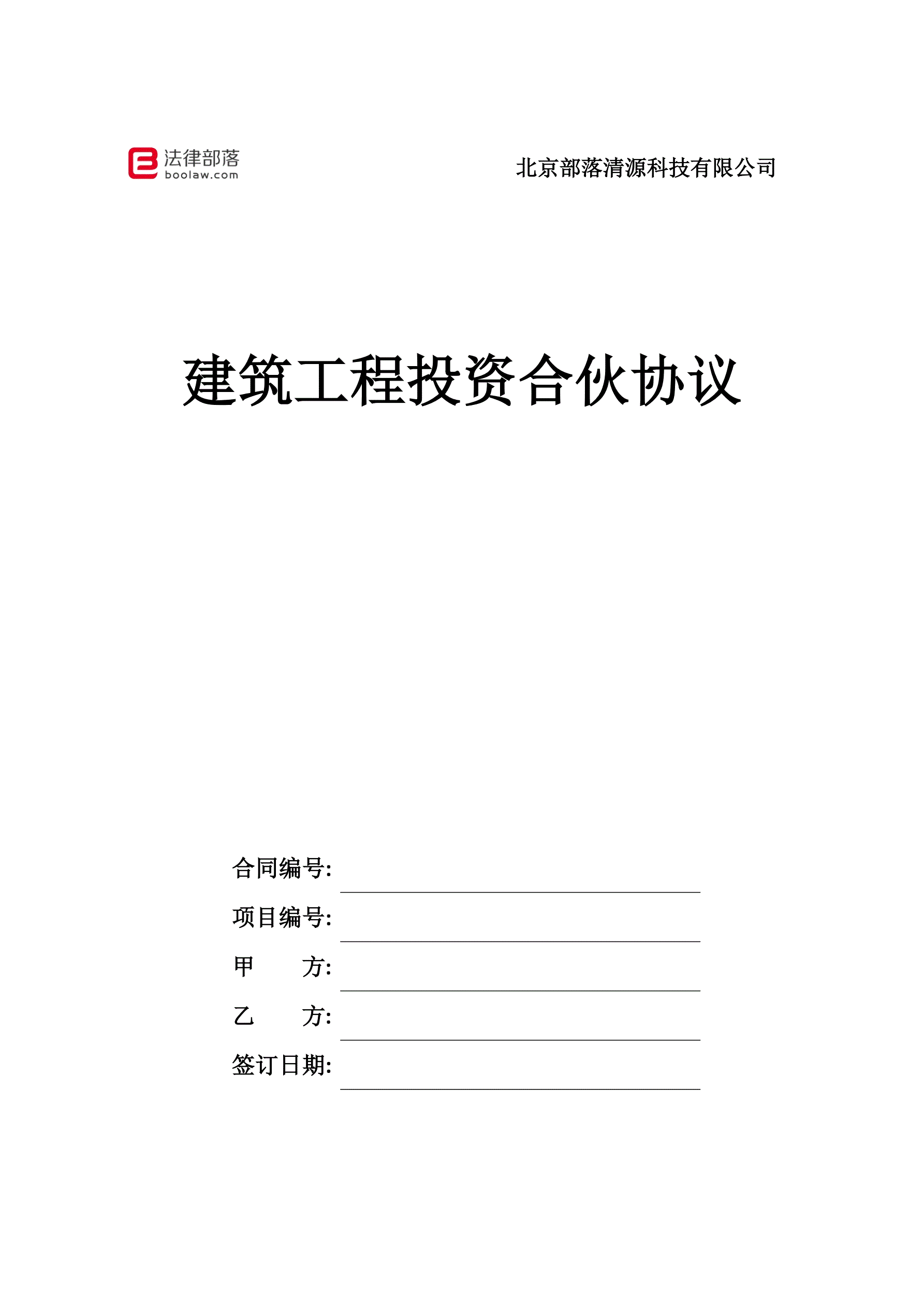 >建筑工程投资合伙协议 最新