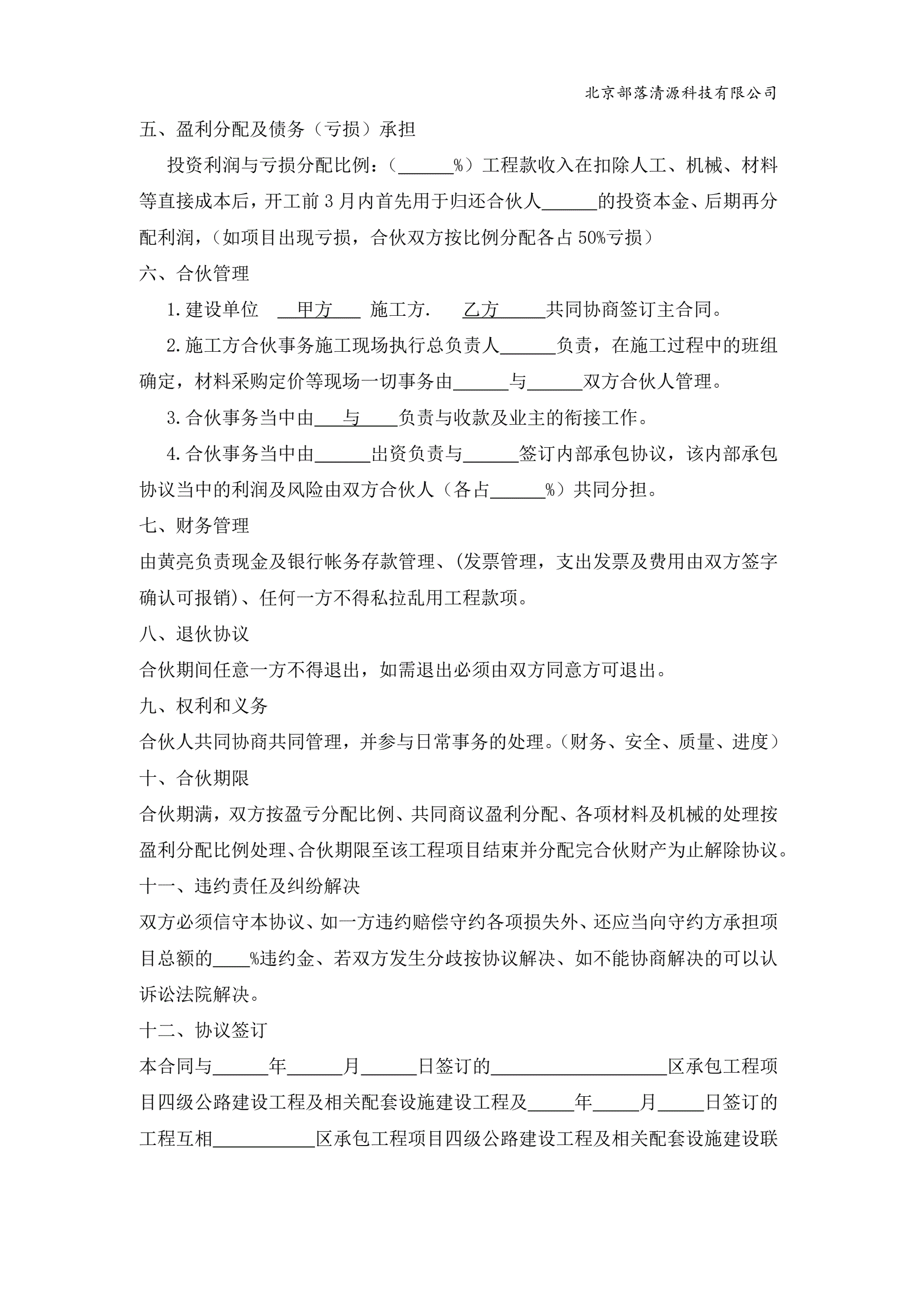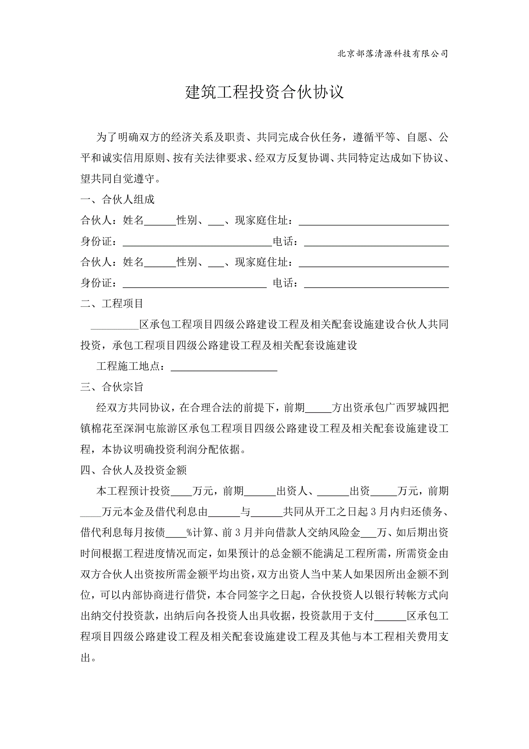 建筑工程投资合伙协议 最新