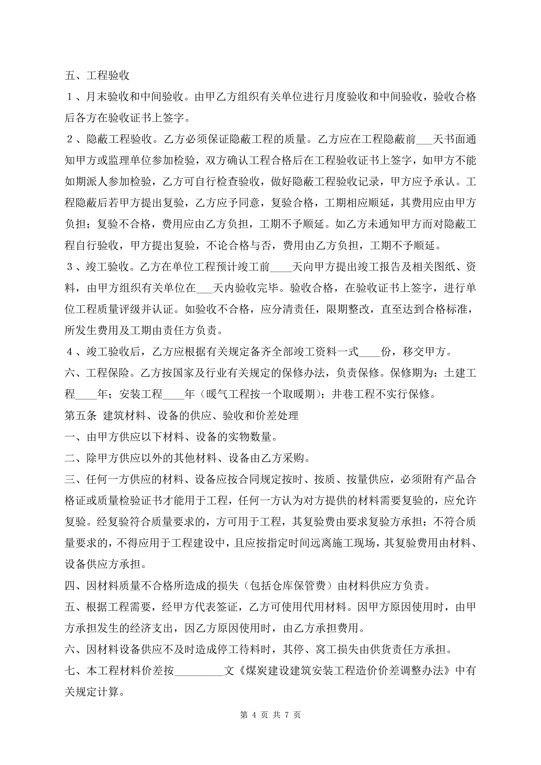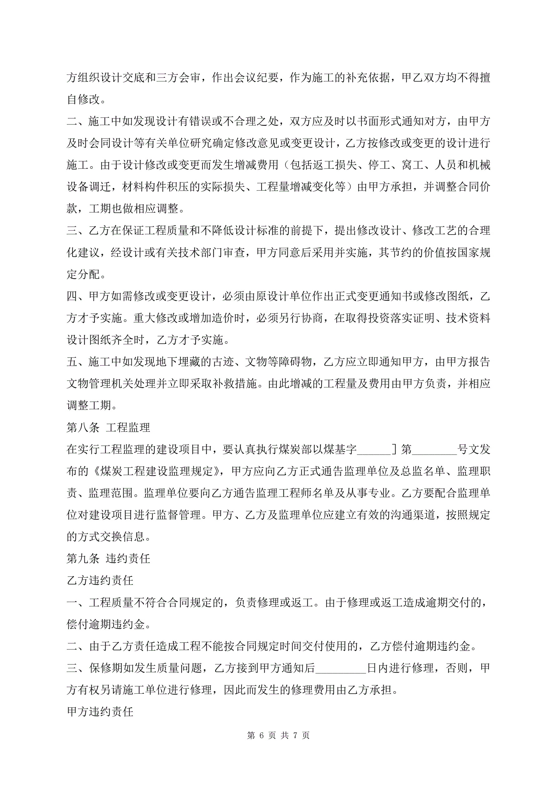 煤矿建筑安装工程承包合同样本