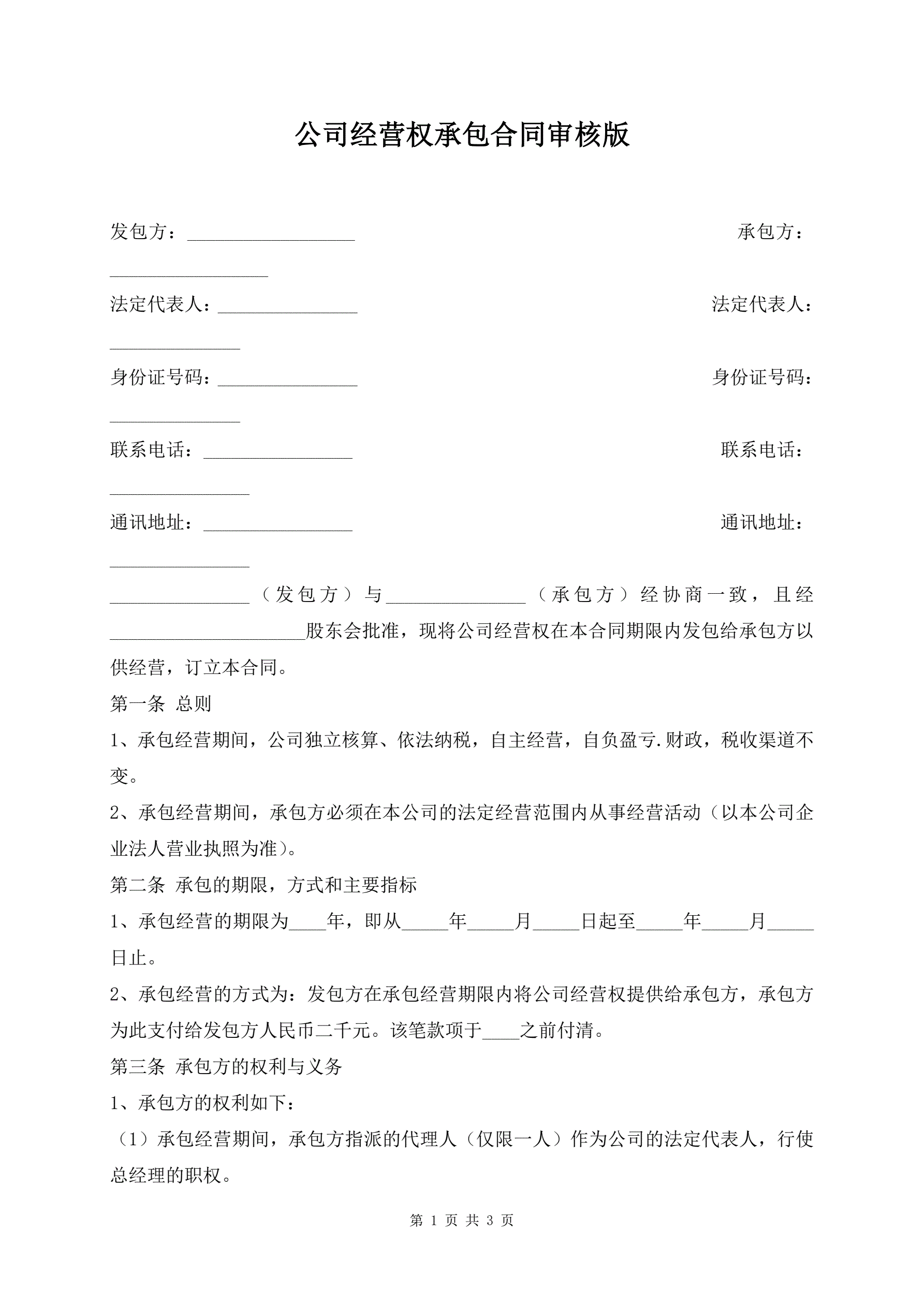 >公司经营权承包合同审核版