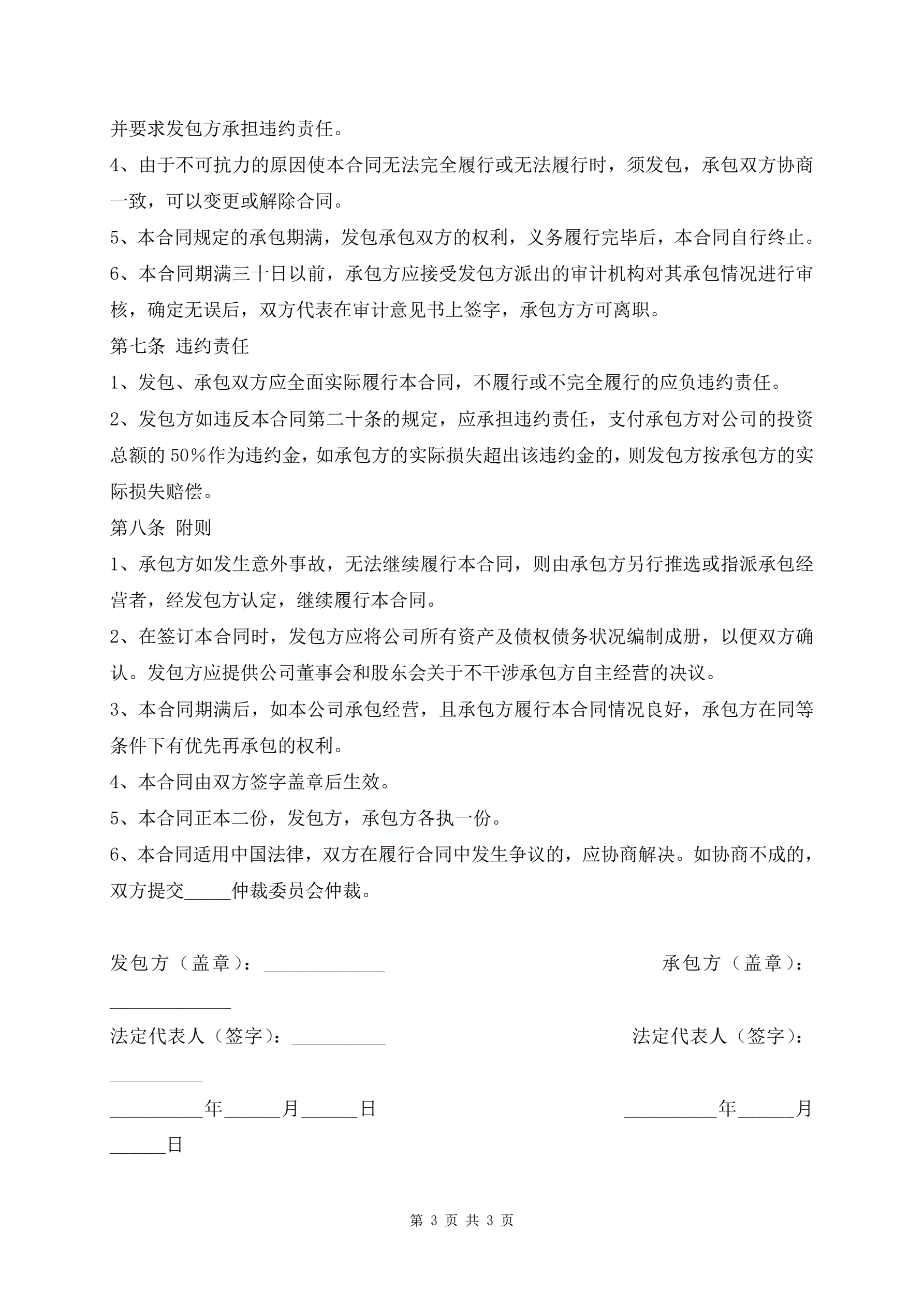 公司经营权承包合同审核版